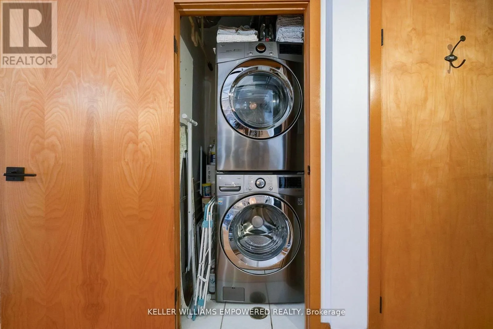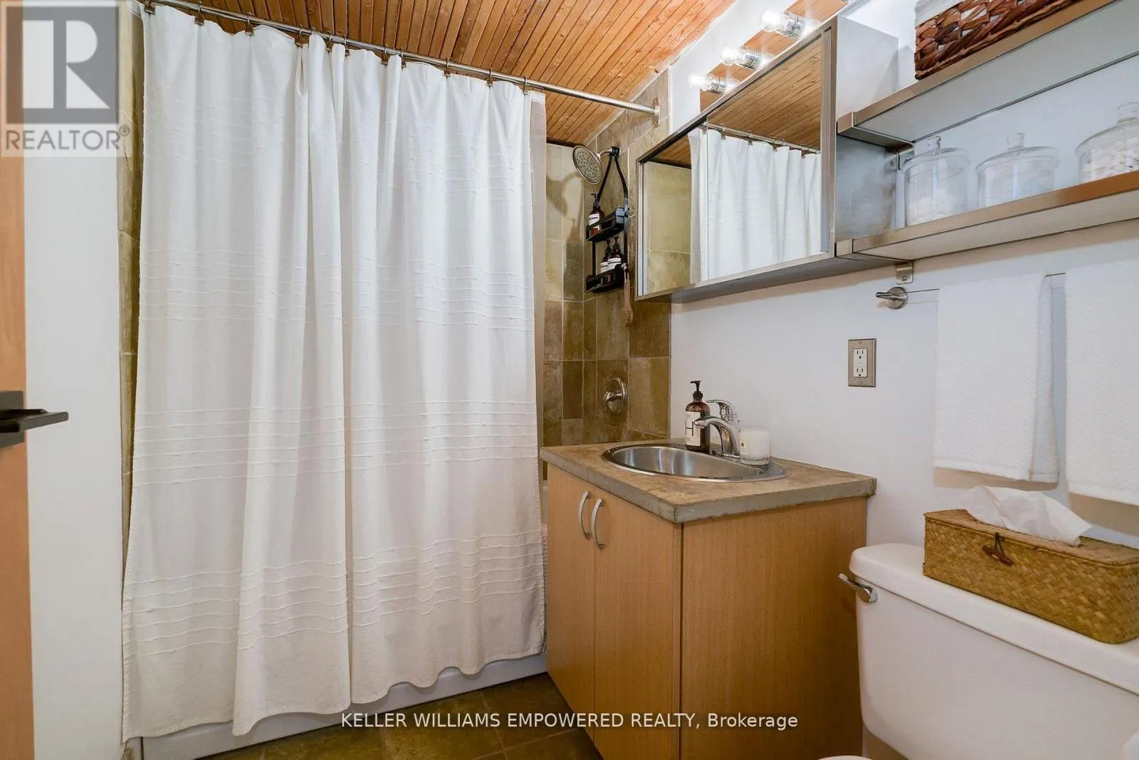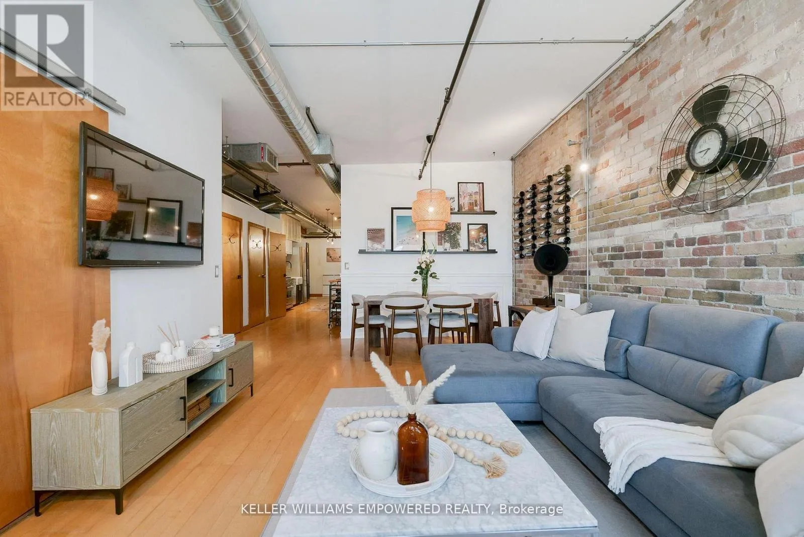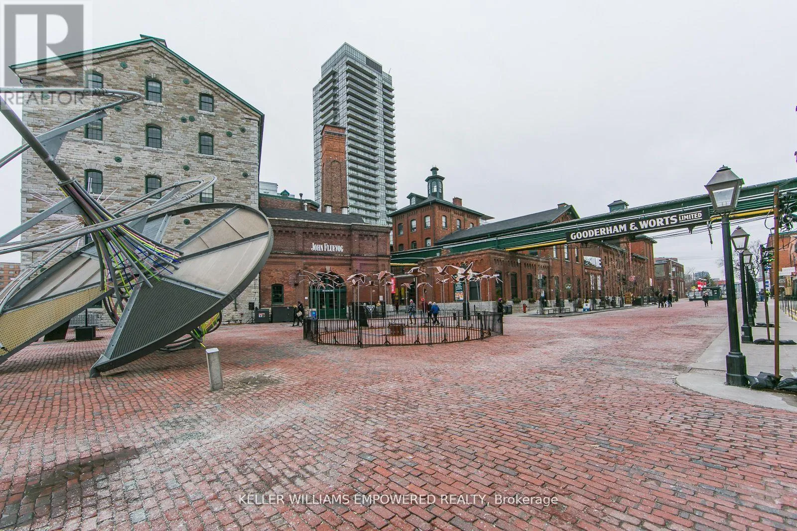 Queen St. E/George St. Welcome to Suite 5 at the iconic Boiler Factory Lofts, a boutique heritage conversion with only 11 units where authentic hard loft living meets warmth and character. This is the kind of space you usually see in movies or magazines--charming and architecturally unique--offering exceptional long-term value with the upcoming Ontario Line Subway and a redesigned park directly across the street. Approximately 900 sq.ft. of inspiring loft living features exposed brick and beams, soaring 10-ft ceilings, oversized factory-style windows filled with natural light, and a dramatic 30-ft statement chalkboard wall. The fully upgraded kitchen is built for serious cooking and entertaining, complete with ceiling-height cabinetry, a Viking professional gas range and hood, Blomberg fridge, Grohe semi-professional faucet, and Franke fireclay farmhouse sink. Thoughtful layout includes a spacious bedroom that easily fits a king-size bed, formal dining area, two closets, ensuite storage, and laundry closet. Step outside to your private 245-sq.ft. rooftop terrace-an urban oasis with striking skyline views, perfect for unforgettable evenings. Convenient parking on Britain Street with direct rear access. Walk Score of 98, just steps to St. Lawrence Market, Eaton Centre, Distillery District, Financial Core, parks, and quick access to the Gardiner and DVP. A rare offering for those who refuse to settle for cookie-cutter. (id:27476)
