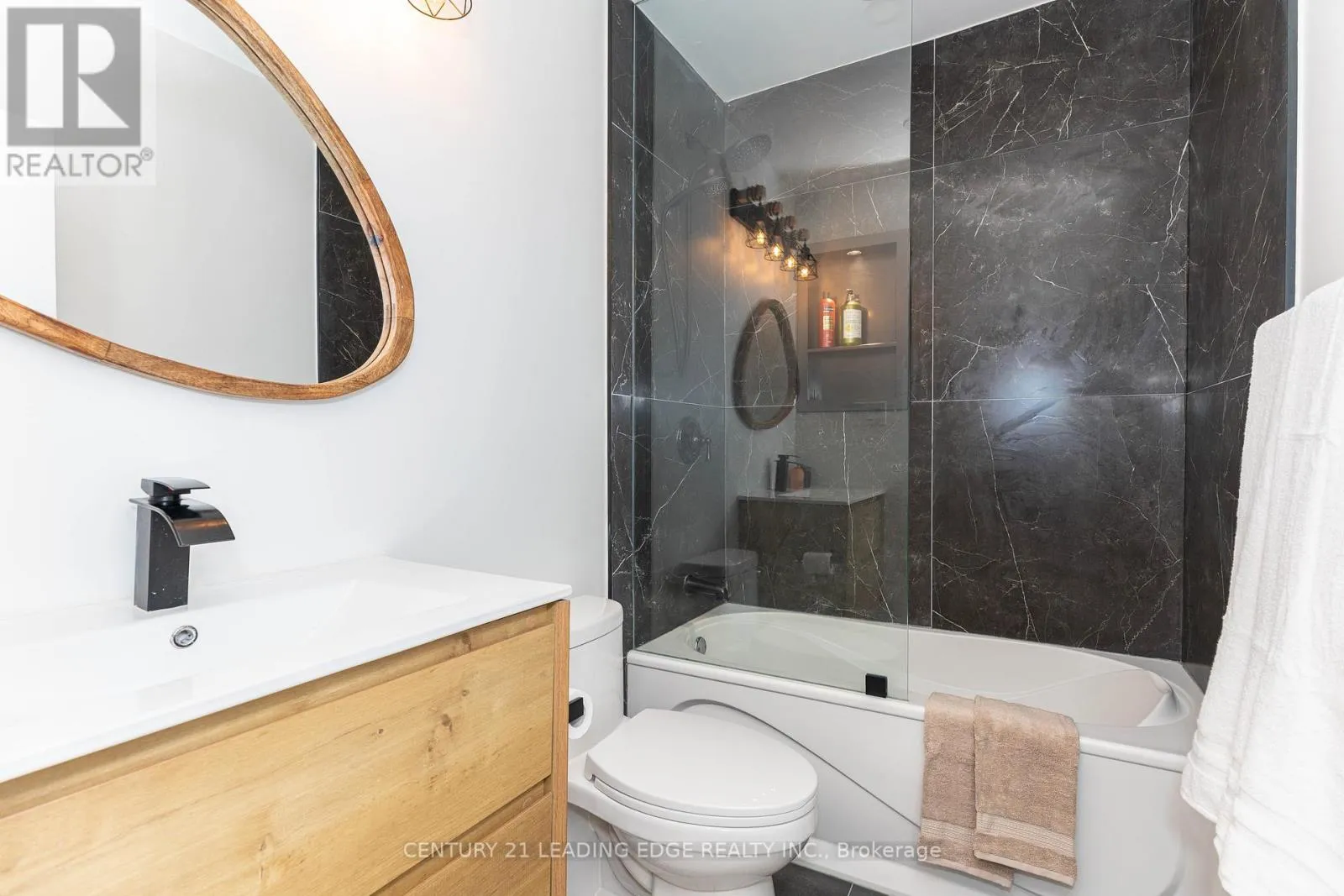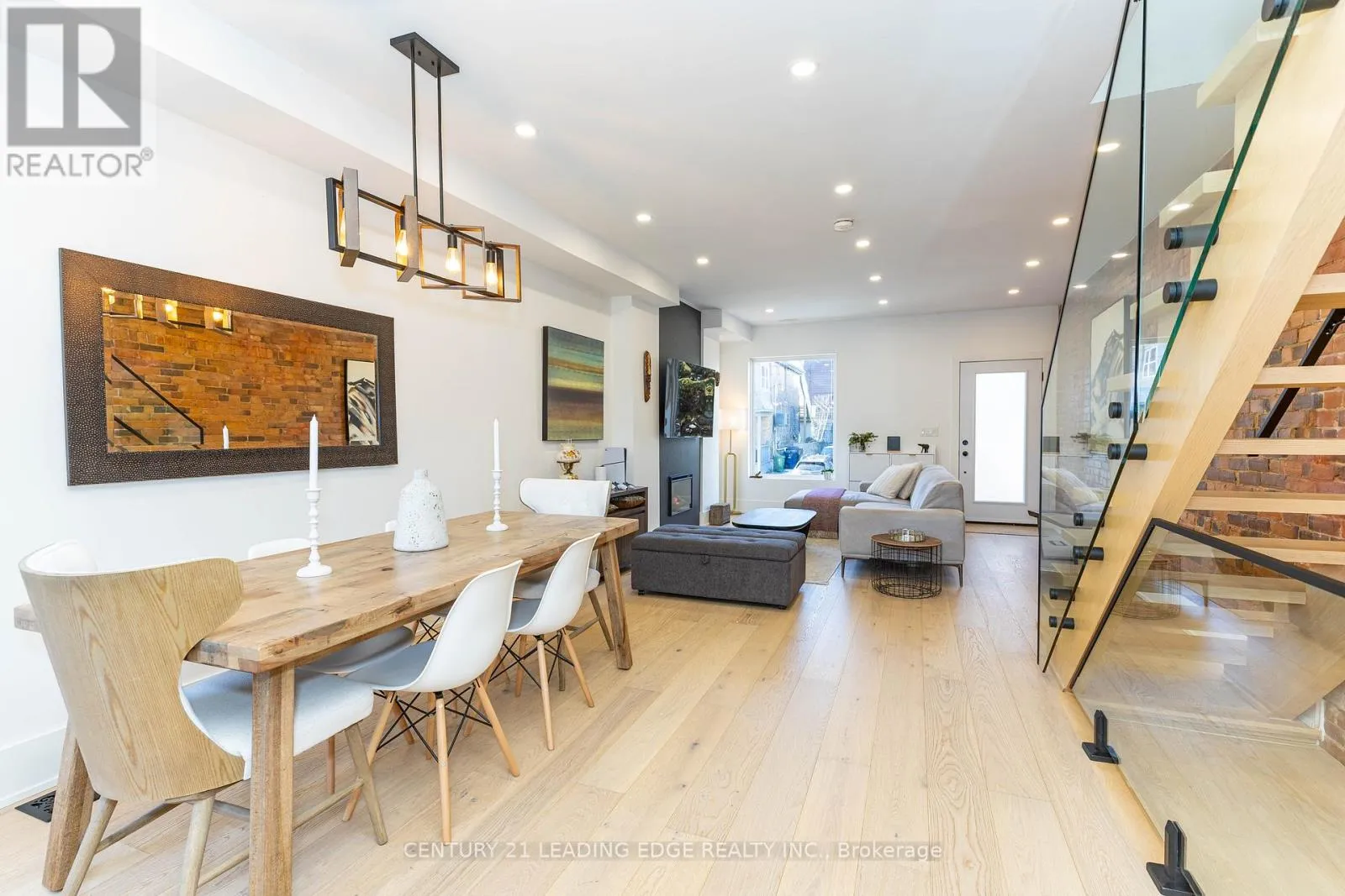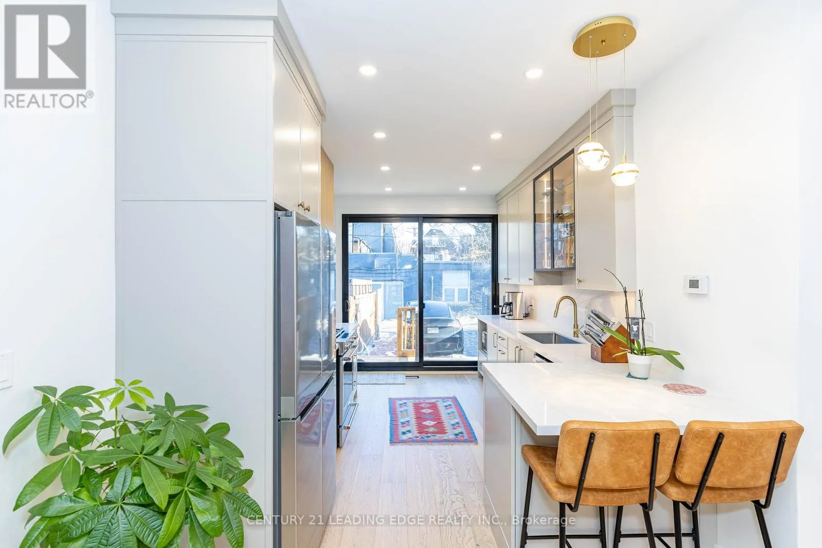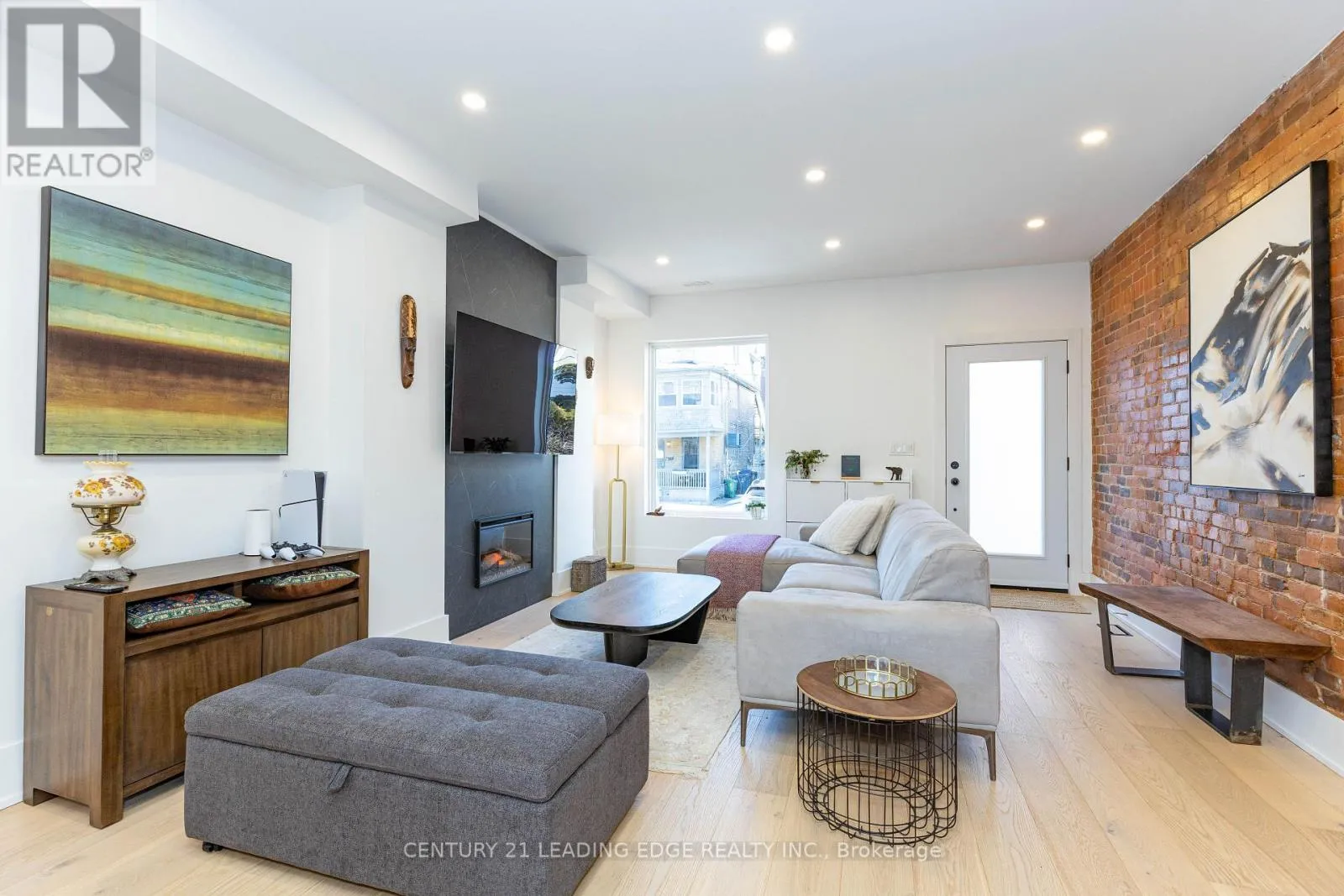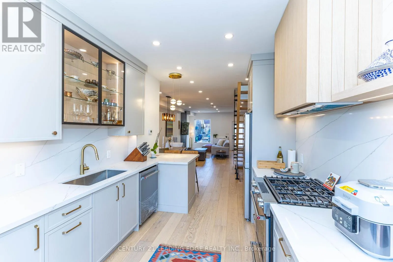 Dupont/ Spadina Welcome to 261 Howland Ave-set on one of the Annex's most coveted streets in a vibrant, family-friendly neighbourhood. This luxury modern residence with designer finishes is fully renovated and located in the heart of the highly sought-after Annex. Offering laneway access with private parking equipped with a Level 2 EV charger and exceptional downtown convenience, this sun-filled home has been thoughtfully upgraded throughout with new modern windows and a designer kitchen by Lucvaa Kitchens, featuring high-end cabinetry, a custom oak hood, and modern pewter paint finishes, along with high-end KitchenAid appliances. White oak hardwood flooring throughout is complemented by natural oak stairs, custom oak staircases extending to the basement, modern glass railings, and a skylight that enhances natural light. Additional highlights include a custom wall unit with an electric fireplace and integrated TV mount. The primary bedroom features a private ensuite and a high-end custom built-in closet. The second floor also offers an additional full bathroom with a rain shower and convenient second-floor laundry. The open-concept basement provides excellent versatility and includes a 3-piece bathroom, separate laundry area, walk-out access, and a kitchenette/bar. Located just steps to Dupont and Spadina subway stations and surrounded by cafés, dining, boutiques, and everyday amenities of the Annex. The backyard includes a gas line, ideal for summer outdoor entertaining. (id:27476)