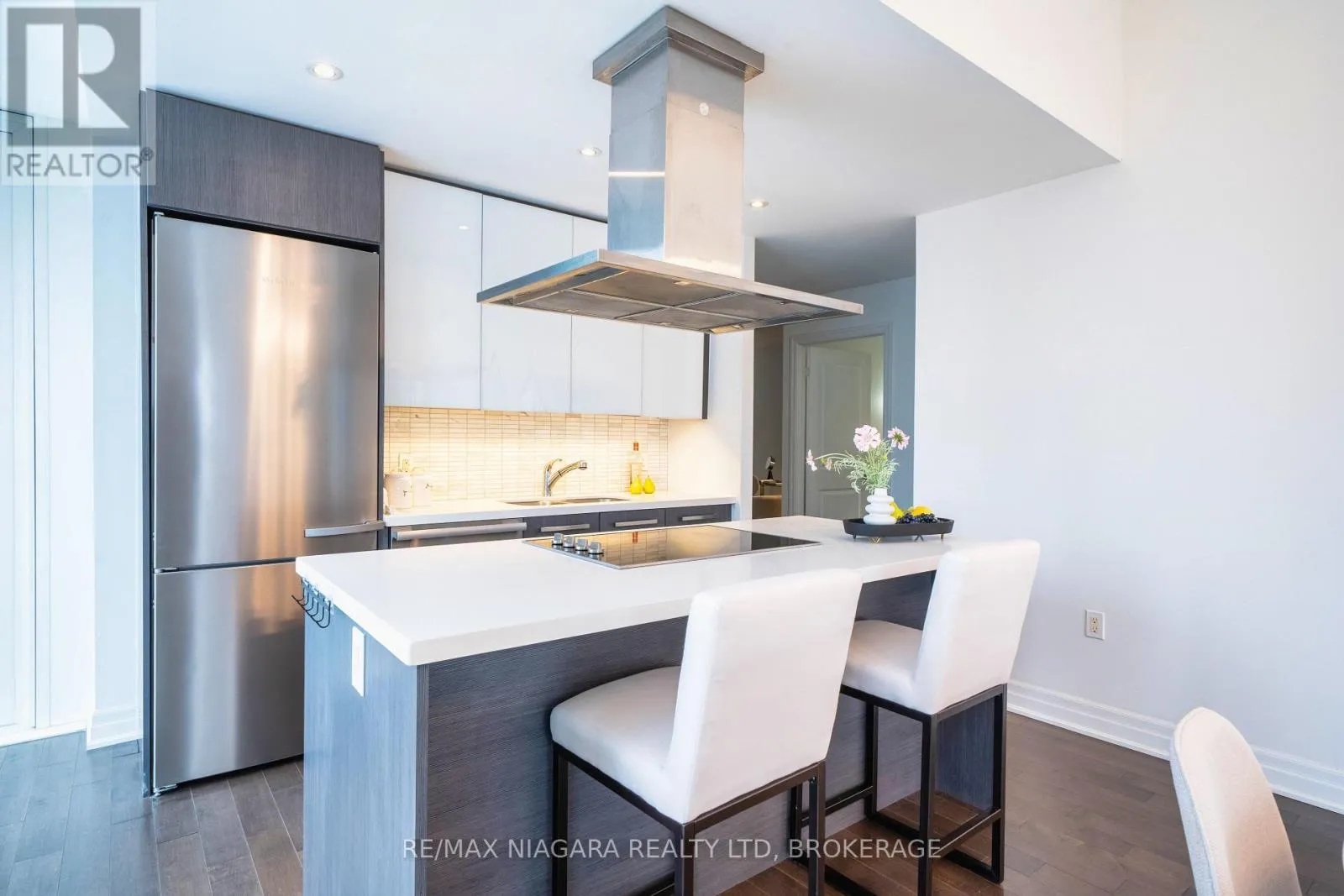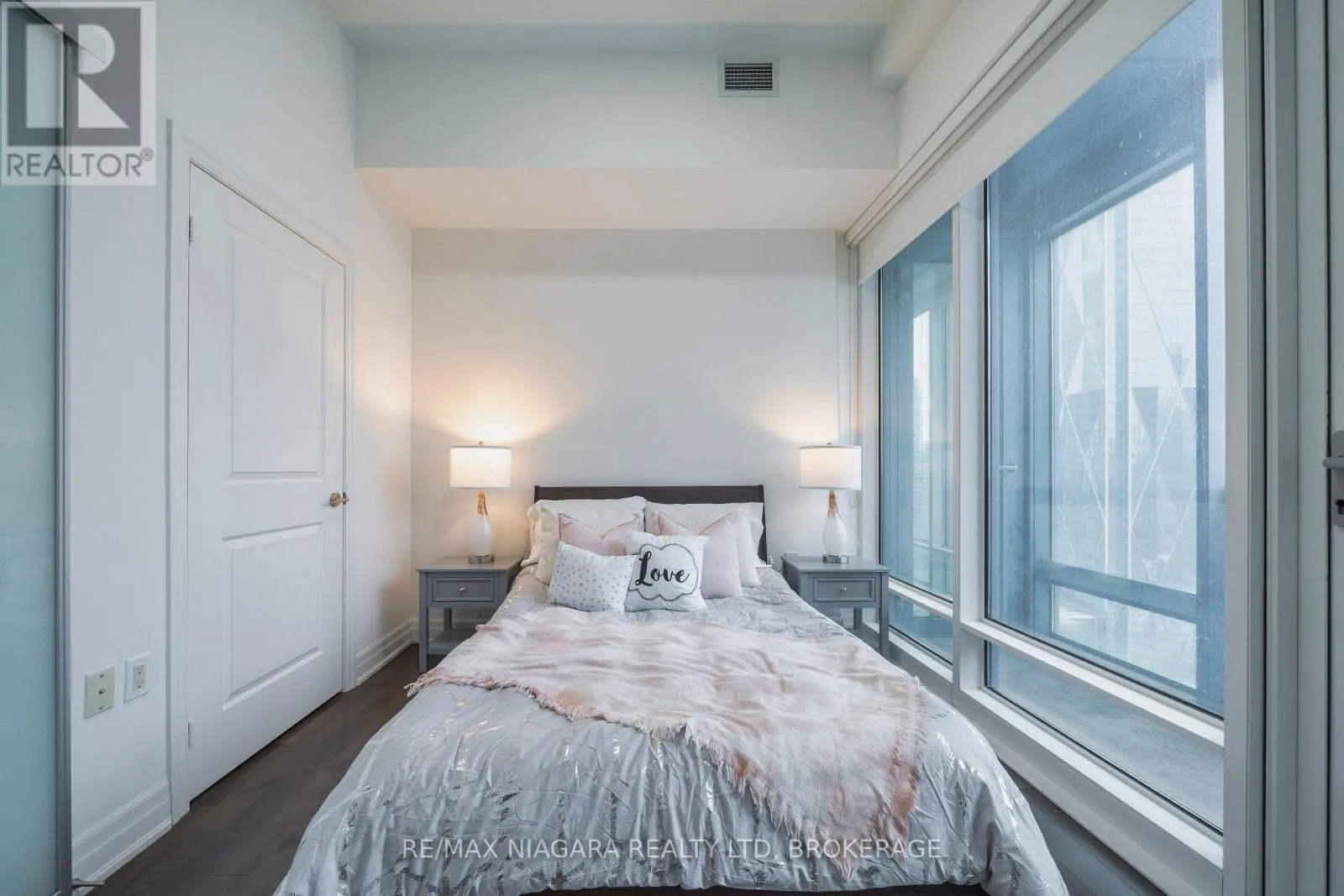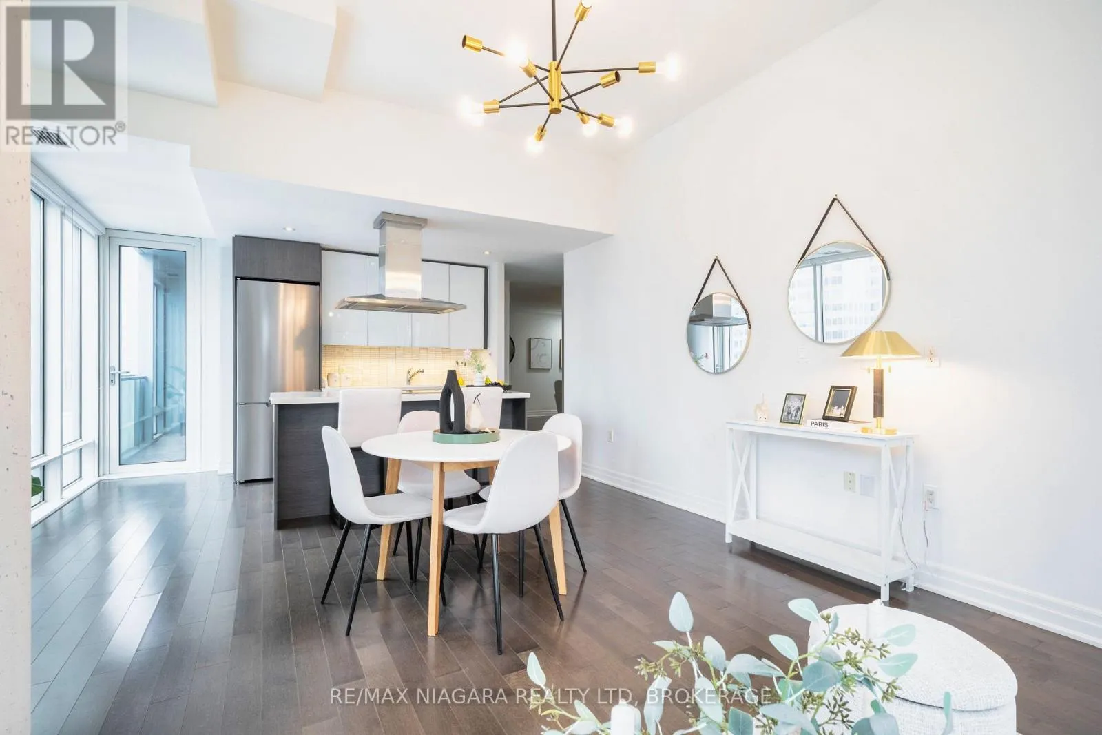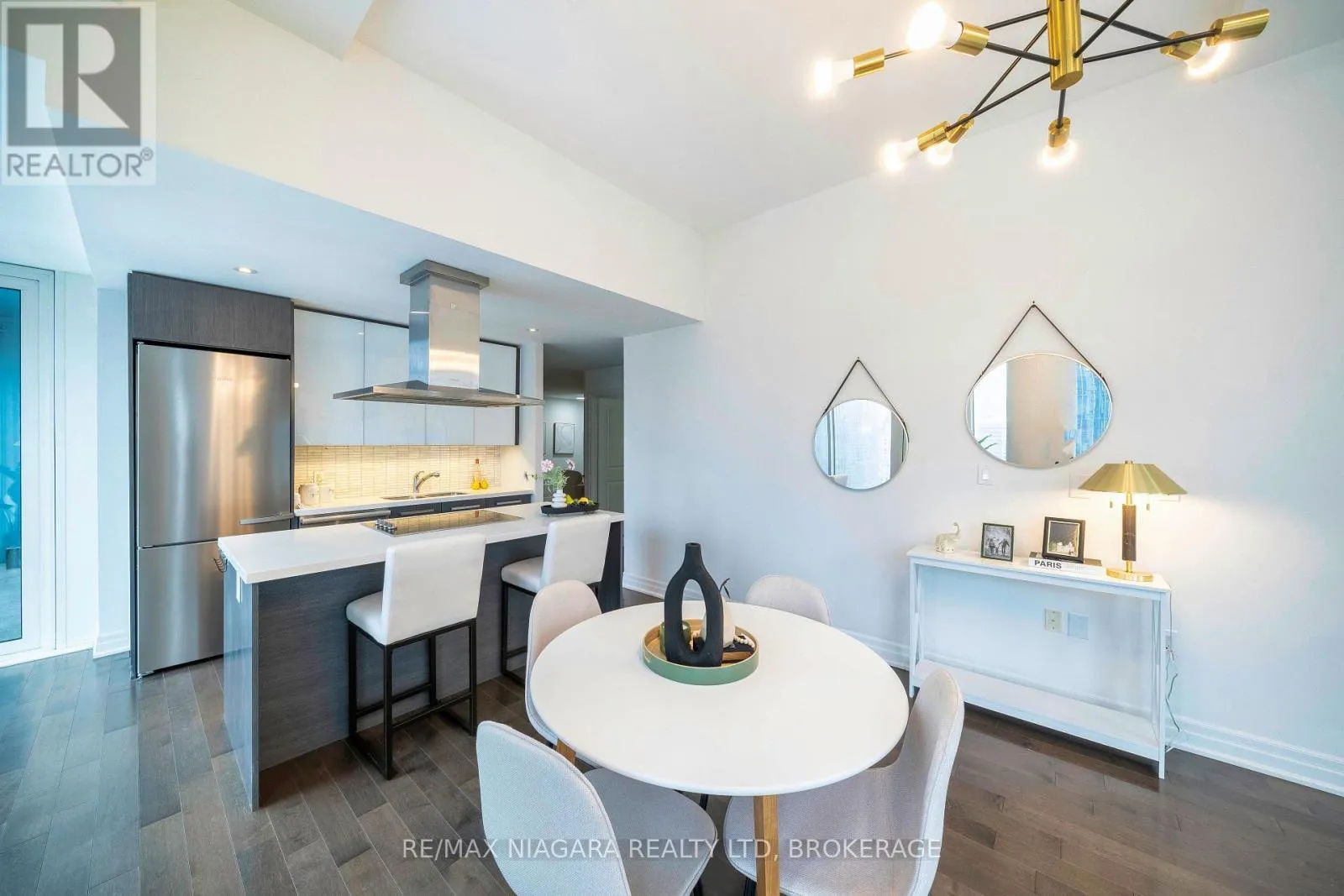 Yonge & Front Welcome to 8 The Esplanade, an iconic address offering refined urban living in the heart of downtown. This executive two-bedroom plus den residence provides over 1,000 square feet of thoughtfully designed interior living space, complemented by a private balcony. Soaring ceilings and expansive picture windows bathe the suite in natural light while framing impressive city views.Upon entry, the home reveals a bright, open-concept layout enhanced by floor-to-ceiling windows and premium finishes throughout. The residence features hardwood flooring, a contemporary kitchen equipped with high-end stainless steel appliances, an elegant backsplash, and a centre island ideal for casual dining or entertaining. Additional enhancements include custom closet organizers and recessed pot lighting.The well-appointed layout includes two generously sized bedrooms with ample storage, as well as a spacious den perfectly suited for a home office or professional workspace. Residents enjoy access to an exceptional collection of amenities, including 24-hour concierge service, an indoor pool, a fully equipped fitness centre, a party room, guest suites, and more.Surrounded by world-class dining, shopping, transit, and entertainment, this residence offers unparalleled convenience. Ideally situated steps from Union Station, the PATH, the Waterfront, St. Lawrence Market, and numerous downtown attractions, this is sophisticated city living at its finest. ***One indoor parking spot and one locker are included*** (id:27476)