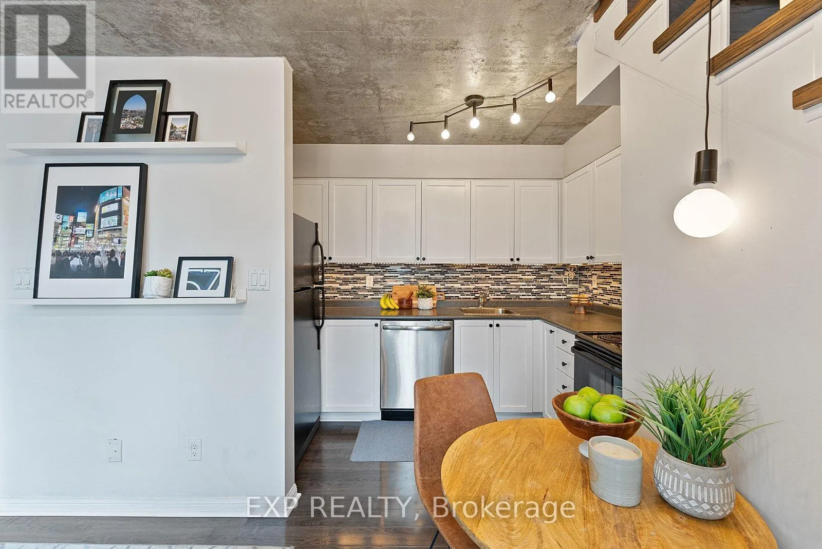 Cross Streets: King St W / Shaw St. ** Directions: King St W / Shaw StKing St W / Shaw St. The Ultimate First-Time Buyer Loft In Toronto. Welcome To Electra Lofts-Where Owning A Two-Storey Loft Is More Than Just Owning A Condo. It's Owning A Rare And Architecturally Distinctive Piece Of Toronto Real Estate That Stands Apart And Holds Long-Term Value. This Move-In-Ready, South-Facing Two-Storey One-Bedroom Loft Is Located In A Highly Sought-After Boutique Building In The Heart Of King West. Thoughtfully Designed And Flooded With Natural Light, The Space Showcases Soaring 18-Foot Ceilings, Exposed Concrete Walls And Ceilings, And Dramatic Floor-To-Ceiling Windows That Define True Urban Loft Living.The Open-Concept Main Level Is Ideal For Entertaining, While The Upper-Level Bedroom Offers Privacy Along With Generous Storage. Step Out Onto Your Large South-Facing Balcony-Perfect For Morning Coffee Or Unwinding In The Evening. One Owned Parking Space And One Owned Locker Complete The Offering.Enjoy Unbeatable Convenience With TTC Transit At Your Doorstep And Some Of Toronto's Top Restaurants, Cafés, And Lifestyle Amenities Just Steps Away. Low Maintenance Fees Include Hydro, Heat, And Water, Making This An Exceptional Opportunity For First-Time Buyers, End-Users, And Investors Alike. (id:27476)