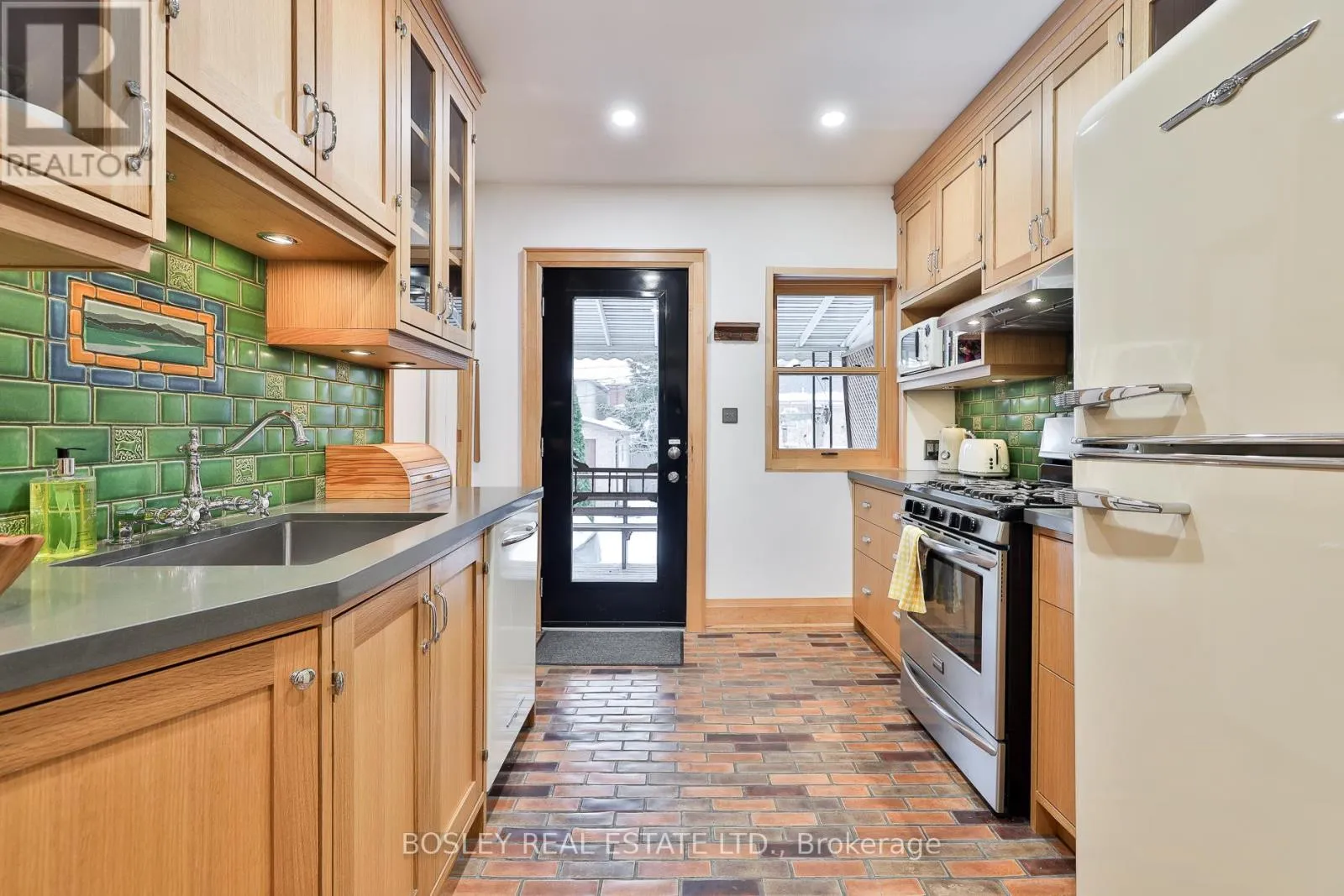 Caledonia & Rogers Built In 1928, This 3-Bedroom, 1.5-Storey Home Is Move-In Ready, Backed By An Above-Average Home Inspection For Peace Of Mind. All The Expensive Grunt Work Is Done; Newer Roof, Updated Electrical, Navien Tankless Water Heater, Extra Insulation, New Windows, And New High- Efficiency Furnace And AC-So You Can Move Right In And Exhale! The Original Woodwork Has Been Lovingly Sanded And Refinished, With Revamped Spanish Style Light Fixtures Throughout. The Kitchen Dazzles With Custom Oak Cabinetry, Imported Hardware, Stone Tile floor, Undermount Sink, Quartz Counters, Under Cabinet Lights, New Vintage-Inspired Appliances, And Striking Motawi Designer Tiles. While The Renovated Bathroom Continues The Razzle With Custom B&W Motawi Tile, A Classic Clawfoot Tub, A Separate Glass Shower, And Marble Heated Floors- Small Luxuries That Make A Big Difference. (See Feature Sheet For Full Details) Deliberately Preserved 70s Powder Room Complete With Time Machine Vibes, Kapow Wallpaper & A Wink! A Solid Long-Term Investment, This Is A Cozy Home Filled With Warm Sunset And Golden-Hour Light, In A Neighbourhood Attracting Young Families And 1st Time Buyers, With The Eglinton LRT Opening Imminently For Easy Access To Subway And Airport. Walking Distance To Bakeries, Cafés, Grocery Stores, Rotisserie chicken, Dental And Medical Clinics, Pharmacies And TTC. The Yard Has Also Been Lovingly Tended With: Oak And Apple Trees, Mature Raspberries, Strawberries And Blueberries, Roses , Rhubarb And Wisteria! (id:27476)
