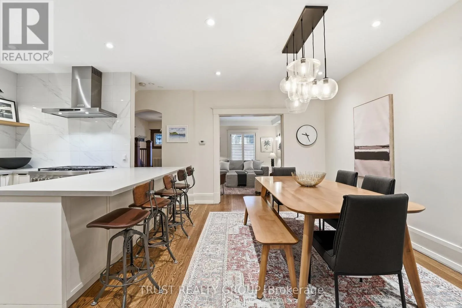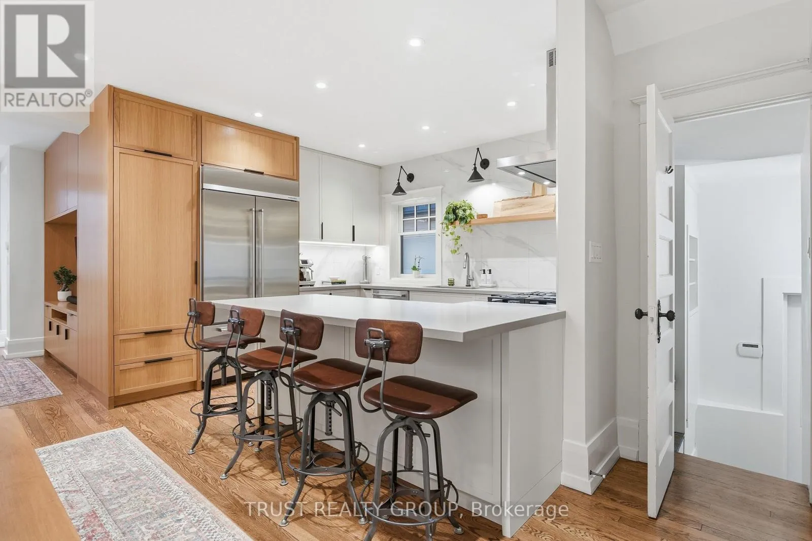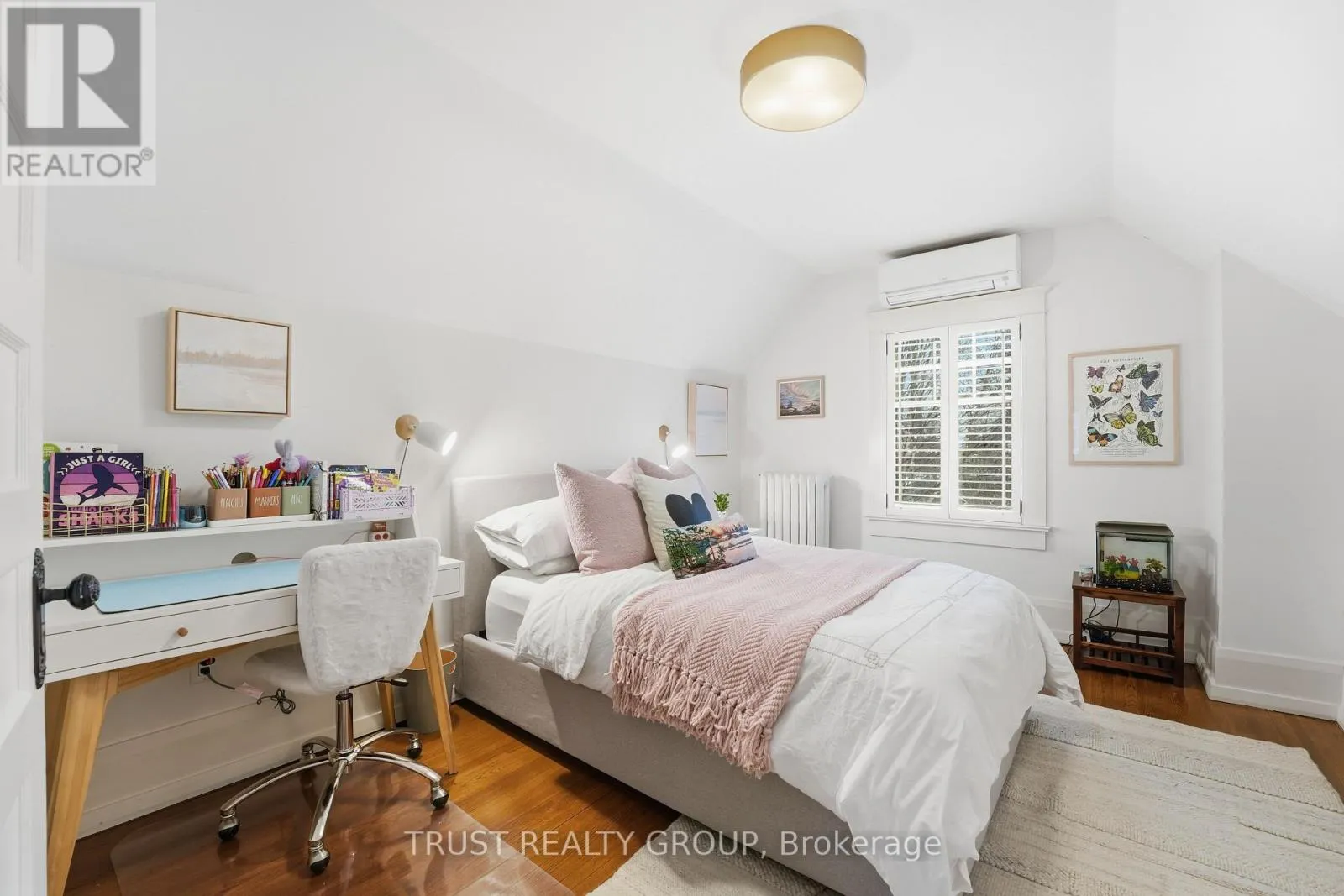 Cross Streets: Parkside Drive/High Park. ** Directions: Parkside Dr & High Park. Beautifully updated Roncesvalles home offering space, comfort, and versatility across four finished levels. An enclosed front porch welcomes you into a charming foyer. California shutters and hardwood floors throughout. The main level features a formal living room with wood-burning fireplace, a separate dining room and a large eat-in designer kitchen with stainless steel appliances. At the rear of the home, a bright open-concept family room with custom built-ins provides walkout access to a private, professionally landscaped backyard. The second floor offers three bedrooms, including a spacious primary retreat with two bay windows, wall-to-wall closet, air unit above the bed, and a 3-piece ensuite. A separate office and a deluxe 5-piece main bathroom complete this level, which can easily be converted to a Jack & Jill. The third floor includes two additional bedrooms, each with hardwood floors, built-in storage cabinetry, and their own air conditioning units, plus a full bathroom with heated floors. The basement was renovated in the summer of 2025 and features a euro-style 3-piece bathroom, large living/TV area with wet bar, engineered hardwood floors, abundant storage, laundry room with LG washer and dryer, workout/utility room, and a separate entrance. Heated floors in the basement and all bathrooms. (id:27476)
