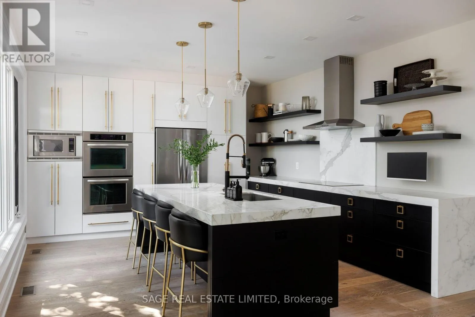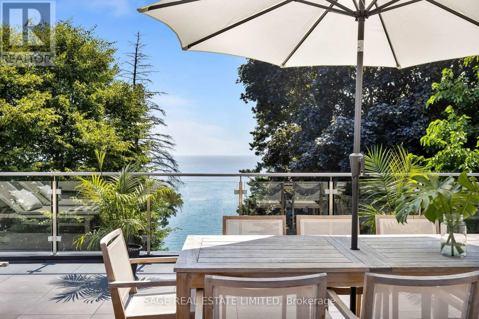 Cross Streets: Midland Ave & Kingston Rd. ** Directions: Head east on Kingston Rd., make a right on Glen Everest then another right to Fishleigh Dr. Perched on the Scarborough Bluffs with sweeping, year-round lake views, this sophisticated family home was built in 2011 and offers over 5,000 sq. ft. across four levels. From multiple vantage points you are treated to lakeside vistas, most notably from the show-stopping 875 sq. ft. rooftop terrace with a full outdoor custom kitchen (B/I fridge & BBQ) and gas fireplace. Additional outdoor spaces include a main floor composite deck, a fully fenced and extensively landscaped yard and a new glass-fenced cliffside patio. Inside, a custom chef's kitchen anchors the main floor with an open living/dining area plus a family room perfectly appointed for cozy movie nights. A private office is tucked away behind the kitchen. Upstairs, the primary suite offers two ensuite bathrooms and walk-in closets. A renovated second-floor bath features a new skylight and curbless shower, while the laundry room has new cabinetry, marble counters, and Miele appliances. The lower level features extra-high ceilings, a gym, renovated bath, partial kitchen, and garage access that's ideal for a nanny/in-law suite. The 2-car garage includes new epoxy flooring, slat wall storage and fastback hanging Kayak storage. Recent upgrades extend outdoors with a sprinkler system, upgraded landscaping, built-in BBQ & fridge and a custom front door. Security is top-tier with Ring cameras, hardwired AI cameras, DVR monitoring, Metalex screens, reinforced locks, and monitored alarm. Set within a close-knit community and near top-rated Chine Drive Public School, you'll also enjoy quick access to the Great Lakes Waterfront Trail plus hidden neighbourhood trails at the base of the Bluffs that provide direct lakeside access few know about. Birchmount Stadium, parks, and tennis courts are within walking distance, with shops and restaurants like City Cottage Market and The Birchcliff nearby. Just minutes from the Beaches but without the congestion; this is where waterfront luxury meets everyday comfort. (id:27476)