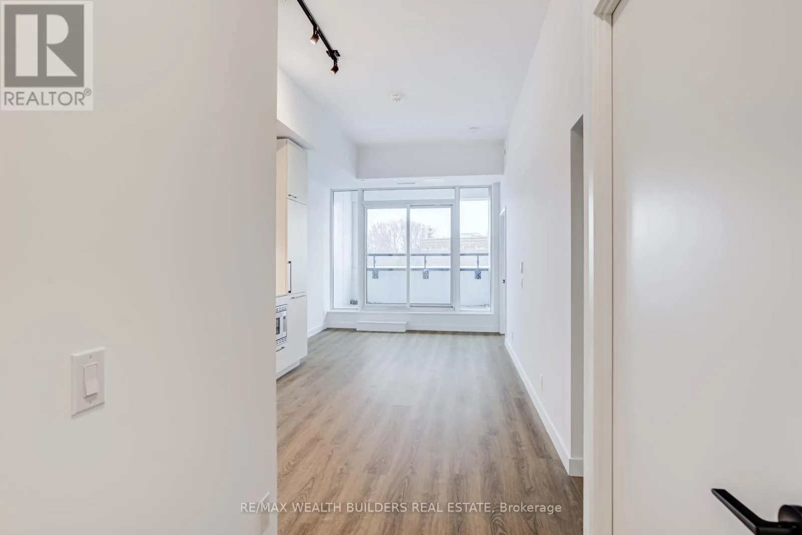 Queen & Coxwell Be the first to live in this stunning, never-lived-in one bedroom plus den suite offering a functional layout and modern coastal living. Features include a sleek contemporary kitchen with B/I appliances, wide-plank laminate flooring throughout, ensuite laundry, upgraded primary washroom w/ shelving storage. The versatile den is perfect for a home office or guest space. Enjoy abundant natural light throughout the unit. Steps to the beach, parks, and the vibrant shops, cafés, and restaurants along Queen Street East, with TTC streetcar access right at your doorstep. Additional conveniences include secure bike storage, parcel lockers, tri-sort waste disposal, an urban forest, and an 8th-floor dog run. Don't miss this opportunity to live in one of Toronto's most exciting new communities where modern comfort meets coastal charm. (id:27476)