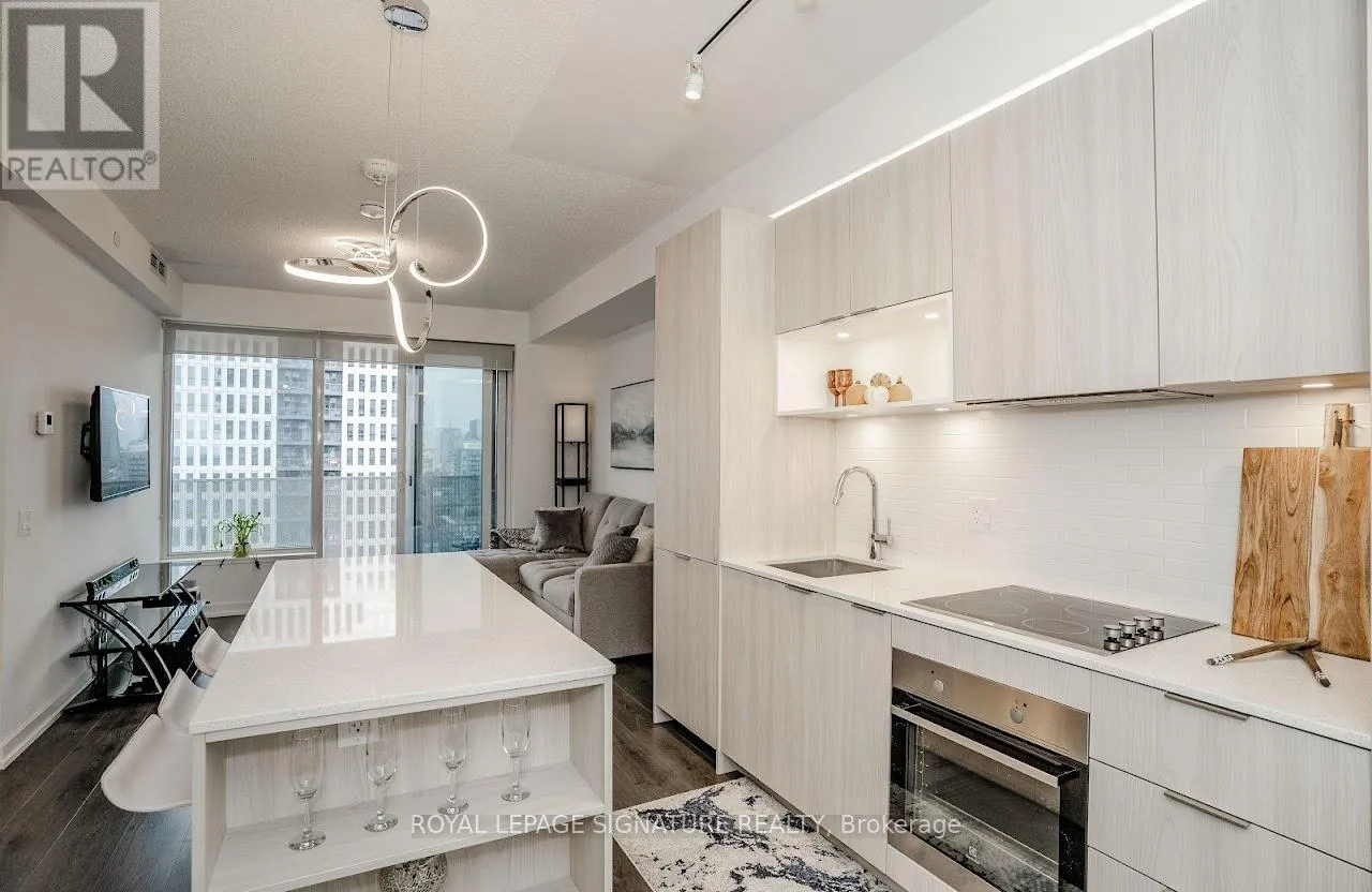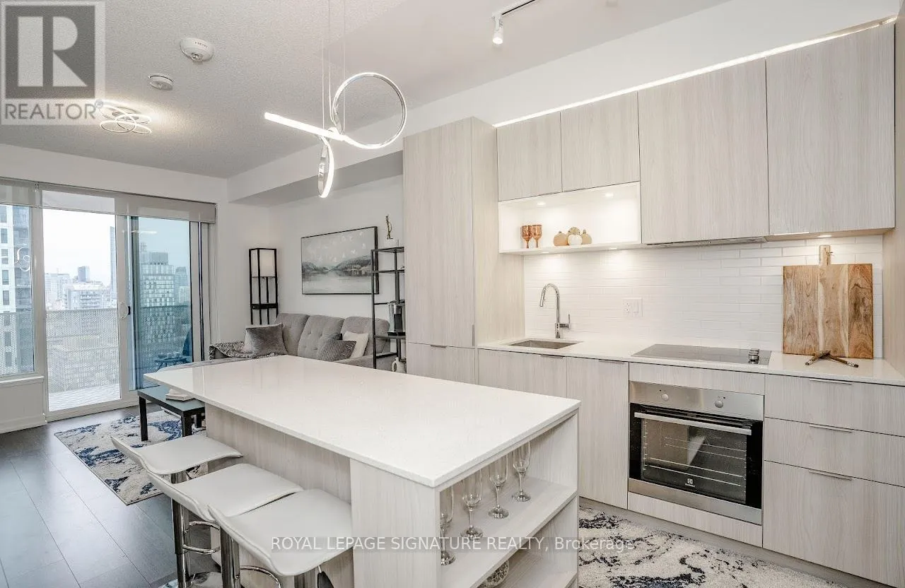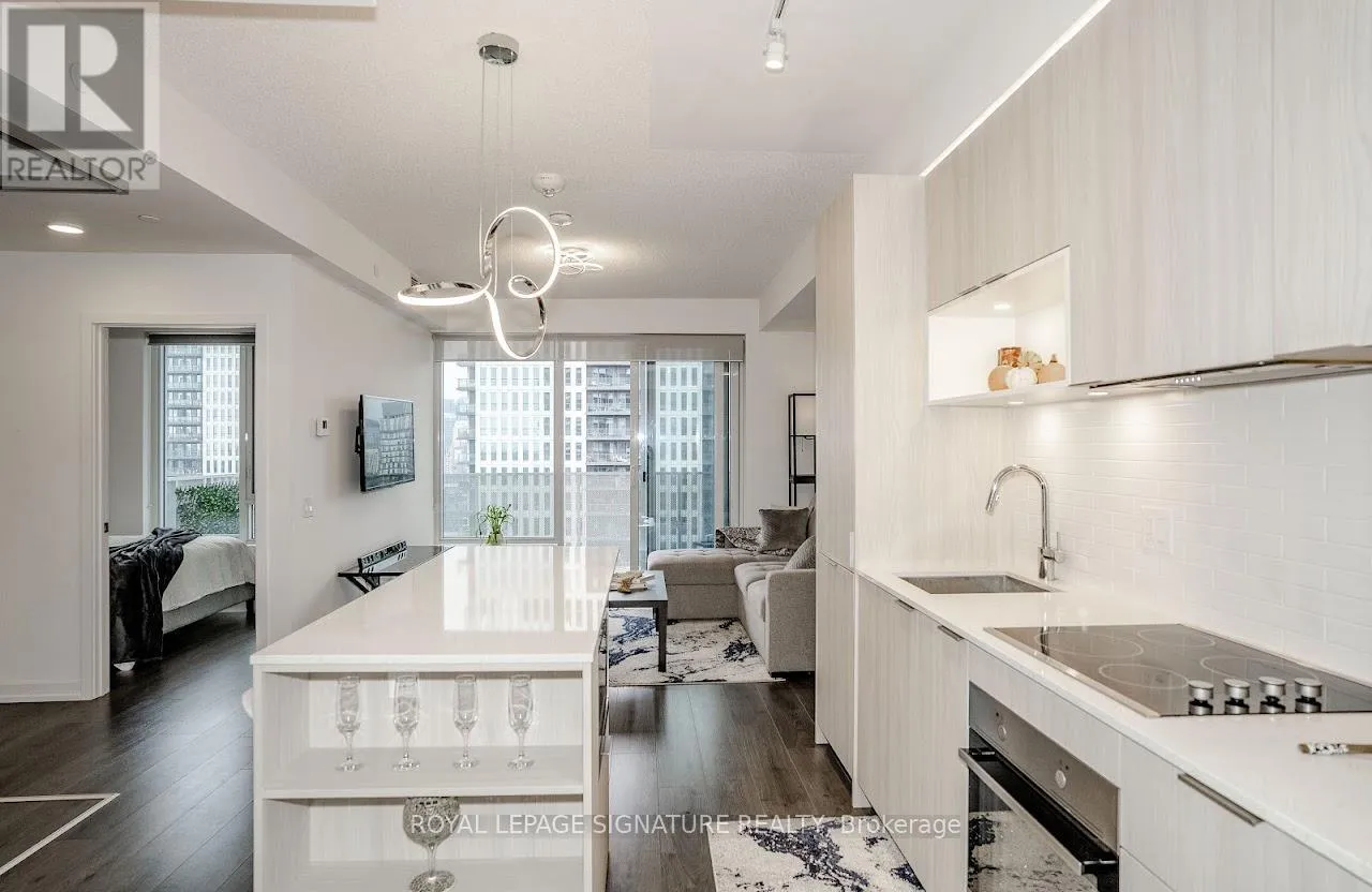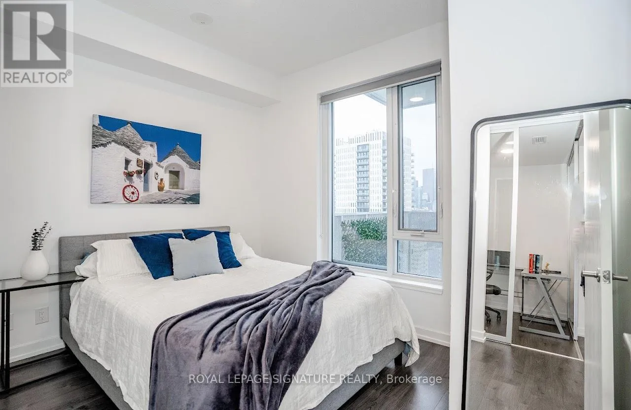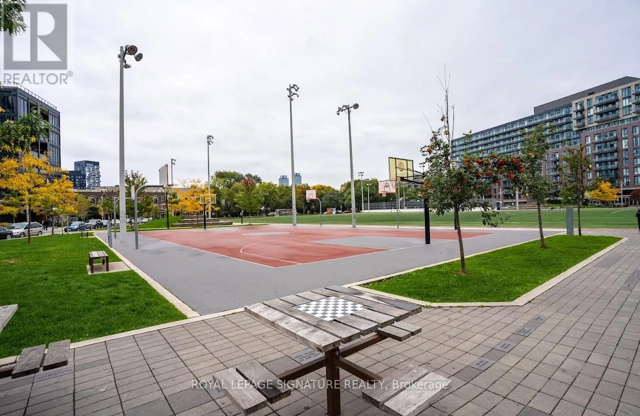 Dundas St. E / Sumach St Welcome to "The Wyatt" by Daniel Corp. Modern, Bright and Sleek 1+ Den/Office Unit With 1 Parking Space and 1 Storage. Functional and Well Designed Layout With 9 foot Ceiling, Laminate Flooring Throughout, Huge Windows Flood The Space With Natural Light. Freshly Updated Unit Presents Like New, Featuring Professional Repainting And Detailed Touch-Ups. Modern Upgraded Kitchen With Centre Island, Quartz Countertops, Cabinet Lighting, and Built-In Stainless Appliances. The Unit Boasts a Massive Balcony Overlooking Clear South-West City And Park Views. Amazing Amenities Include Gym, Party Room, Roof Top Terrace, BBQ's, Rock Climbing Room and Lounge. Steps From TTC Streetcars, Easy Access To DVP, Community Centre, Soccer Field, Basketball Court, Aquatic Centre and Parks all in Walking Distance. Great Opportunity To Live Or Invest In Great Community In Regent Park. (id:27476)