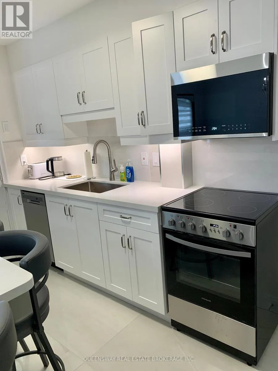 Jane/Baby Point Beautifully updated 3+1-bedroom home nestled in the heart of desirable Baby Point Village. This bright, spacious residence features an open dining area, spacious living room w/ electric fireplace, and stylishly renovated bathrooms. Elegant hardwood flooring on the main and second level. The customized modern eat-in kitchen includes a large kitchen island with white caesarstone countertops, large porcelain floor tiles, backsplash and sleek stainless steel appliances. Fully finished basement provides additional living space. Owned boiler system and tankless water heater (2024). All electrical wiring has been updated throughout the home with a new panel. Step outside to a private backyard with a detached garage at the rear of the property. Steps to trendy shops, restaurants, parks, and walkable to Jane subway station. (id:27476)