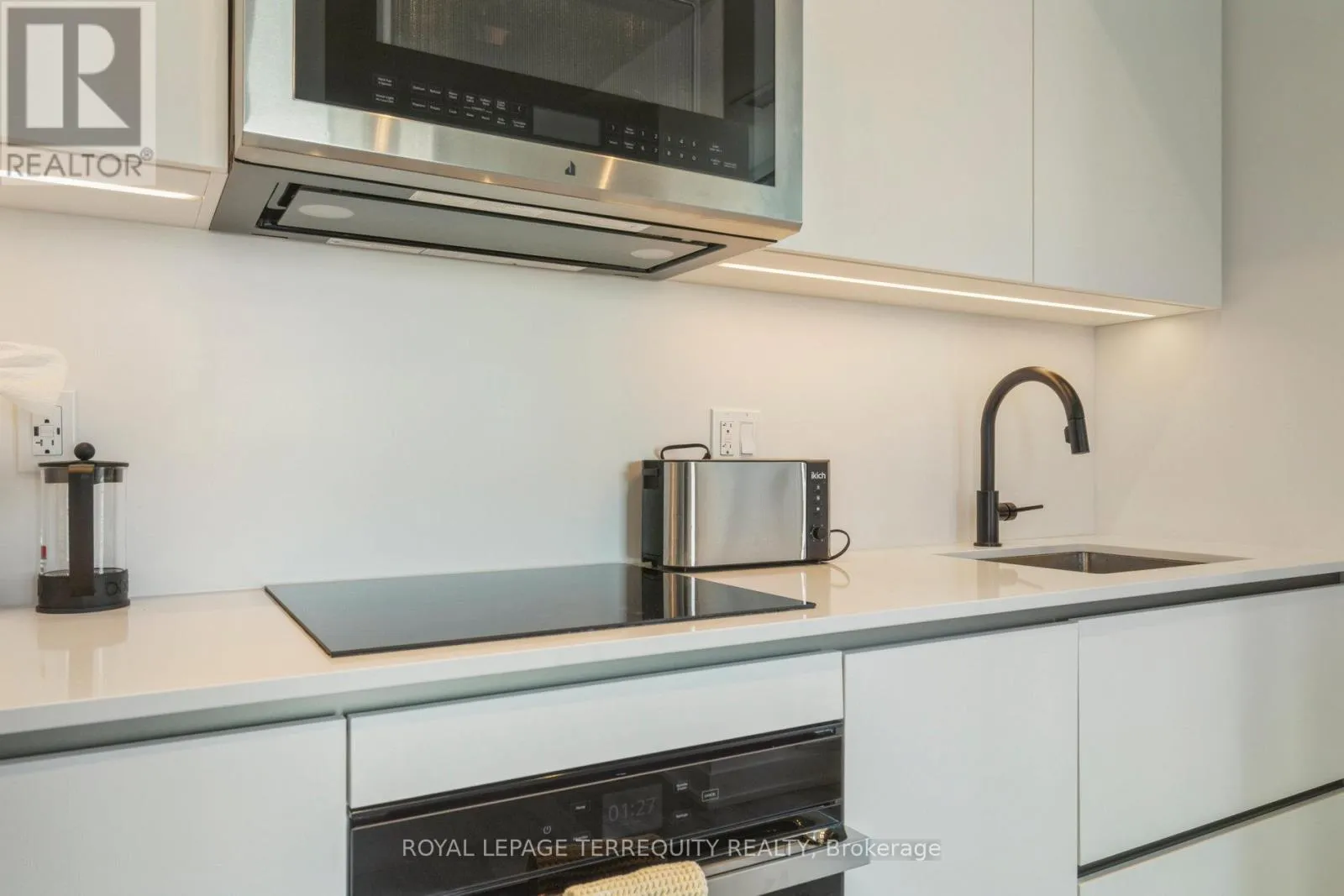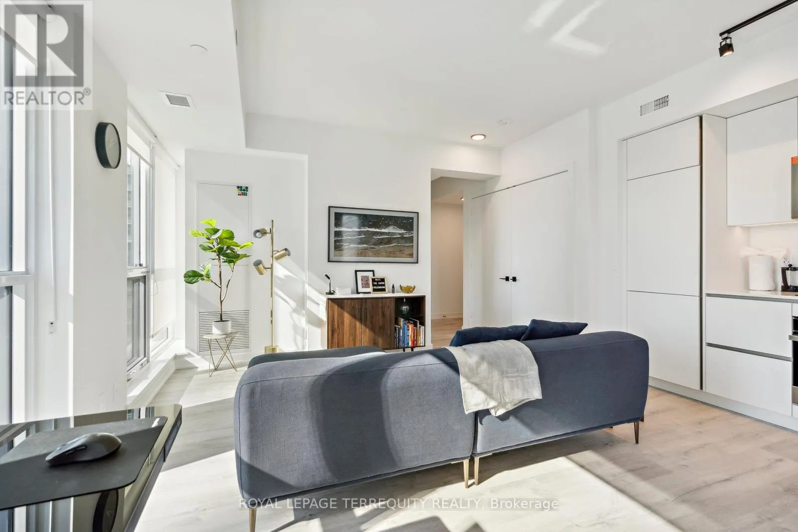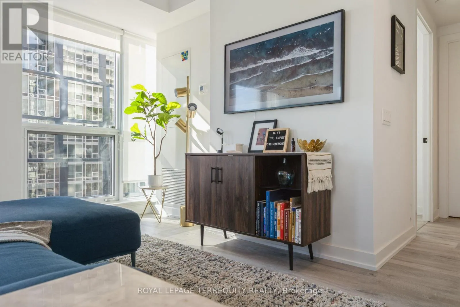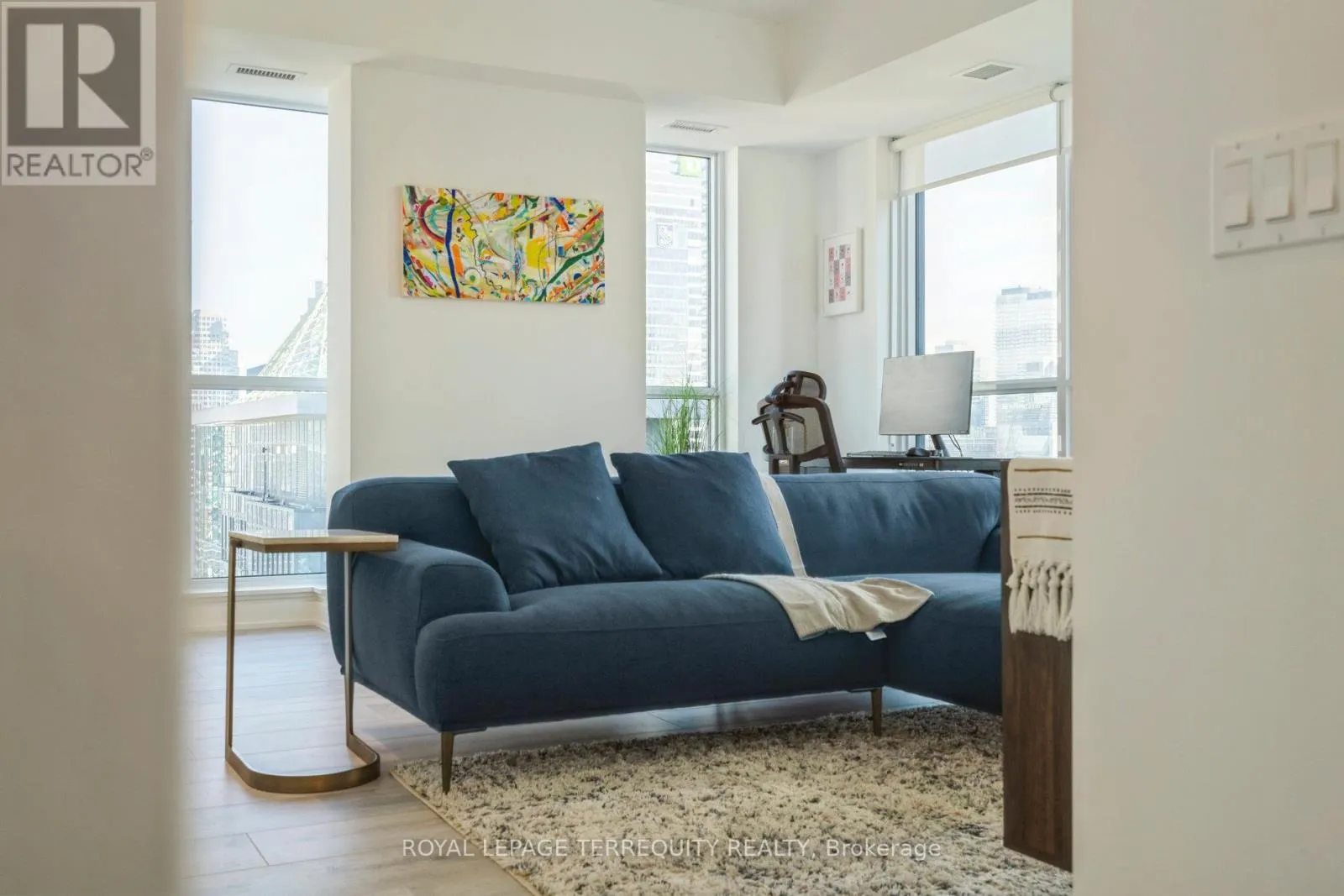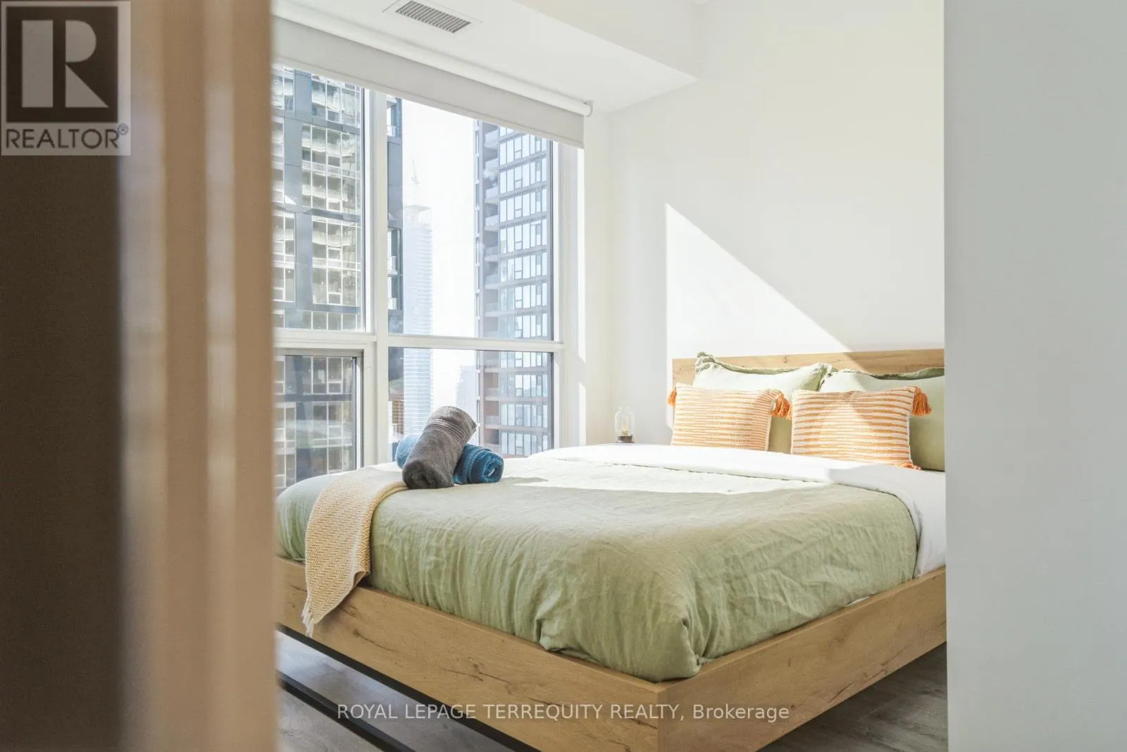 King St West / Blue Jays Way Empire Maverick Model | 1 Bedroom | 35th Floor | South & East Exposure Sophisticated and Bright 1-bedroom residence perched on the 35th floor. Featuring south and east exposure with good views. The suite offers soft, yet elevated city views with decent views of the Rogers Centre and Lake Ontario, complemented by excellent natural light through large windows on this corner unit. The interior showcases a refined open-concept design with a sleek modern kitchen with hidden drawers and good storage, plus stone counter and backsplash, undercabinet lighting and undermount sink, integrated appliances (built in oven, counter top stove, paneled fridge & dishwasher), contemporary finishes, a well-proportioned bedroom with large mirrored closet, ensuite laundry and large closet. Thoughtfully designed for urban living. This just-over-a-year-old building offers premium amenities including 24-hour concierge, an elegant rooftop social lounge and bar, outdoor kitchen, BBQs, excellent gym and exercise areas, yoga studio, and stylish co-working spaces plus boardroom. Set in the cultural heart of King Street West, steps to Mirvish Theatres, Roy Thomson Hall, acclaimed dining, and directly across from the TIFF building. An exceptional address for those who value lifestyle, convenience, and understated luxury. Showings by appointment. Can be rented fully furnished also, contact for details today. (id:27476)
