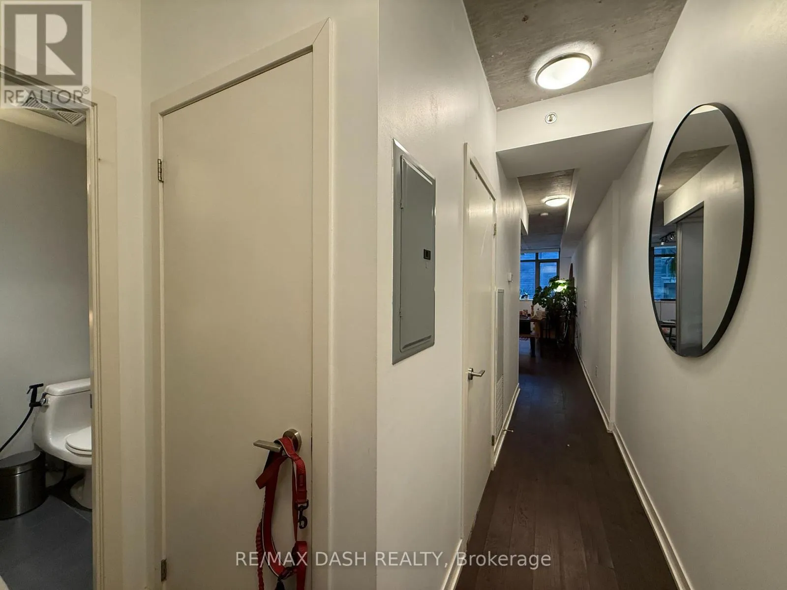 Queen/Dufferin Stylish Loft Living In The Midst Of Queen St.W. This Suite Features 9 Ft Exposed Concrete Ceilings, Hardwood Throughout. Open Concept Kitchen W/ Upgraded Cabinetry W/ Caesarstone Countertop & Backsplash. Sundrenched Living Room Hosts Large Windows. The Master Retreat Has A Large Closet W/ Sliding Glass Doors. Bath Has Granite Counter And Large Frameless Glass & Rain Shower. Ensuite Laundry Front Load Washer & Dryer. Locker Incl. (id:27476)