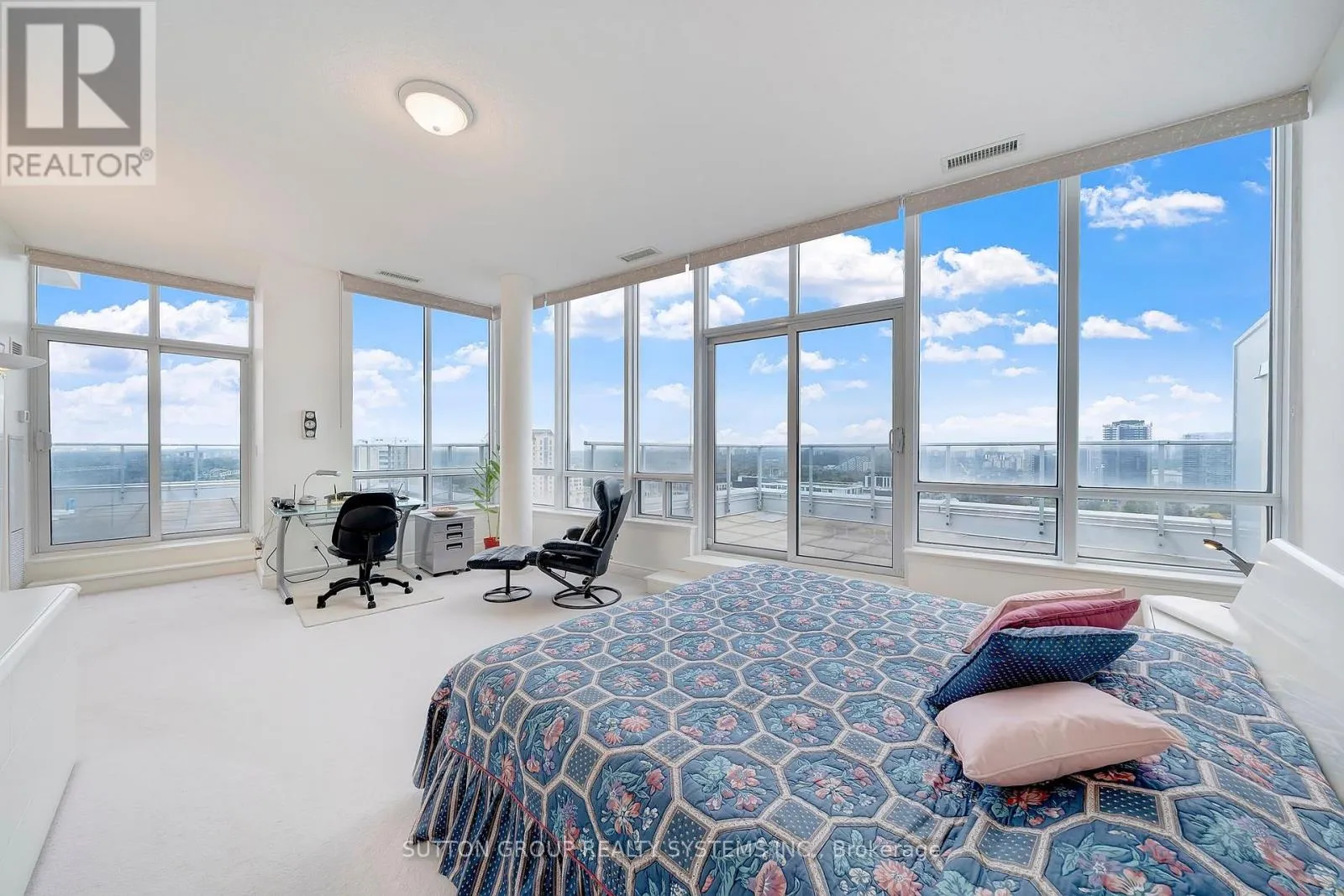 Cross Streets: Bayview Ave & Sheppard Ave E. ** Directions: North on Bayview Ave. East on Sheppard Ave E. South on Rean Dr. Discover an elevated standard of living in this breathtaking nearly 1,900-square-foot corner penthouse atop the esteemed New York Towers. Reminiscent of a "bungalow in the sky," this expansive residence is defined by soaring ceilings and a sophisticated layout that includes two gracious bedrooms with ensuites, a refined sunroom, and a versatile large den perfect for use as a third bedroom. Large windows frame unparalleled panoramic vistas and flood the unit with natural sunlight, while two magnificent terraces offer over approx. 600 square feet of private outdoor sanctuary. Perfectly positioned steps from the gourmet boutiques of Bayview Village and the subway, this residence caters to an elite "lock-and-leave" lifestyle with 24-hour concierge service and **all-inclusive utilities**. Residents enjoy exclusive membership to the Liberty Club, featuring a sun-drenched indoor pool, fitness center, and virtual golf. Complete with two premium parking spaces and a private locker, this rare penthouse represents a seamless blend of immense scale, privacy, and world-class convenience for the discerning buyer. (id:27476)