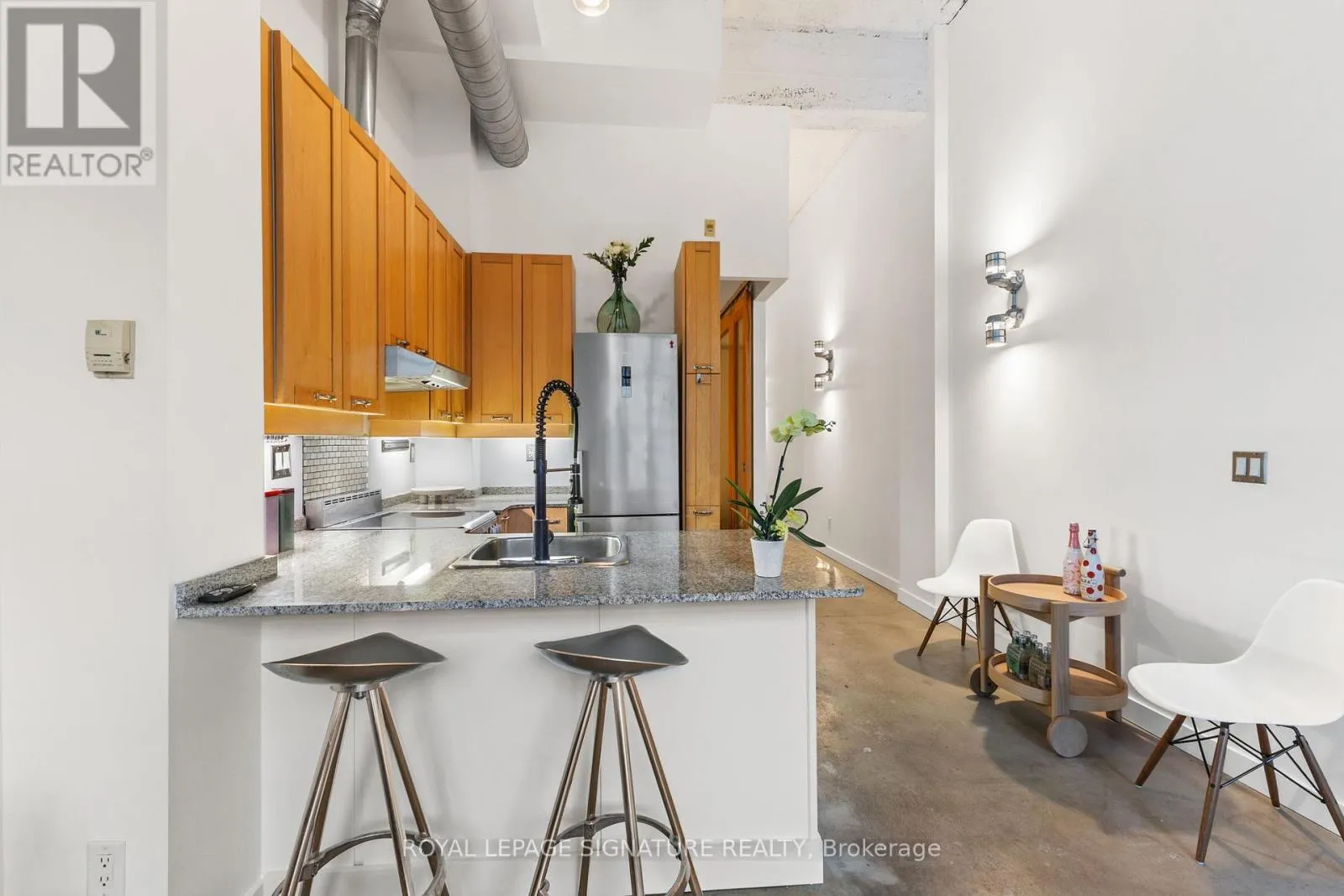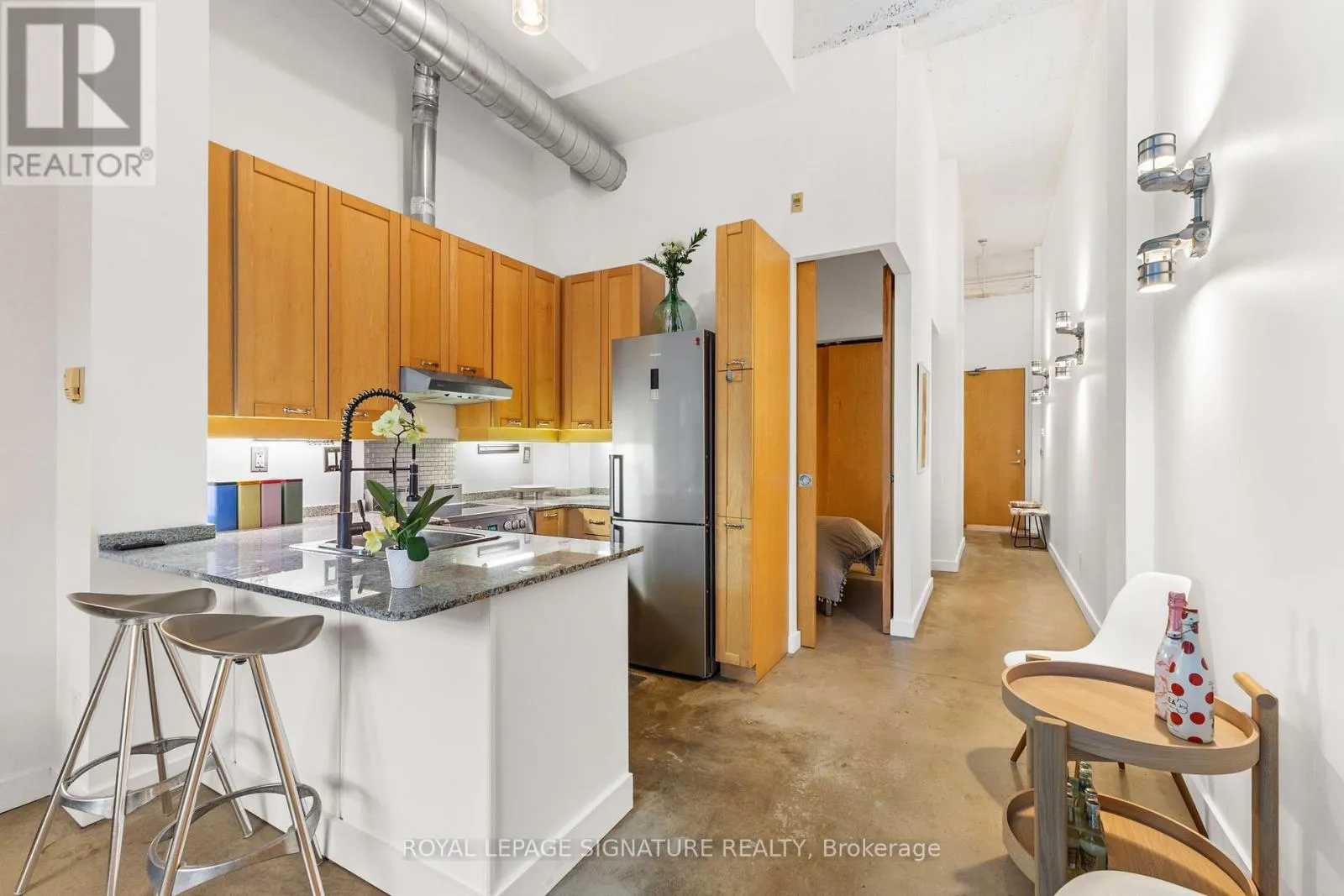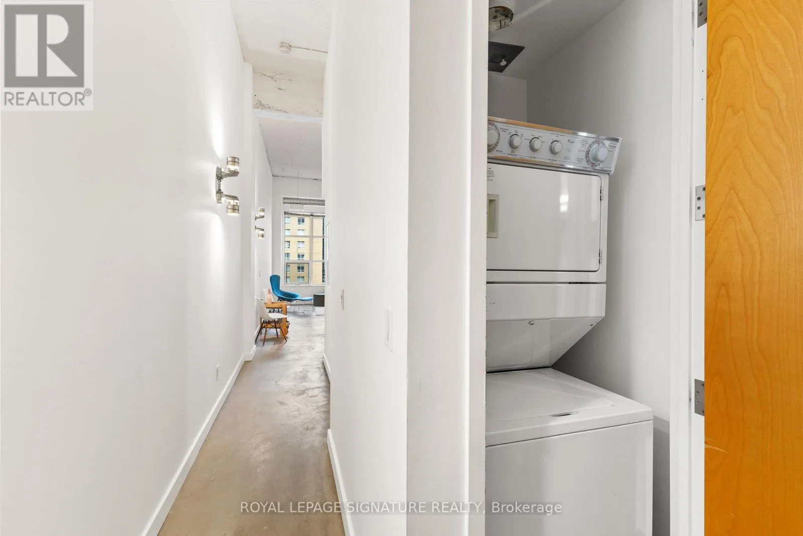 Church and Dundas Unit 404 at 135 Dalhousie Street, located in the iconic Merchandise Lofts, offers the perfect blend of industrial style and downtown Toronto living. This impressive 1-bedroom with open concept kitchen with soaring 14-foot ceilings, polished concrete floors, and a striking bank of south-facing windows that fill the space with natural light. The functional layout includes a spacious bedroom, a versatile den ideal for work or creative use, a modern 4-piece bathroom,ensuite laundry, and a dedicated locker for extra storage. Situated in the heart of the city,the Merchandise Lofts place you less than a 10-minute walk from Yonge-Dundas Square, TMU, the Financial District, Massey Hall, transit, shopping, and countless amenities. Residents enjoy world-class building features including a fully equipped gym, indoor pool, basketball court,games rooms, and an incredible rooftop patio complete with lounge areas, BBQs, and a dog-friendly play zone. Combining authentic loft character with unbeatable convenience, Unit404 delivers a true downtown lifestyle experience. (id:27476)