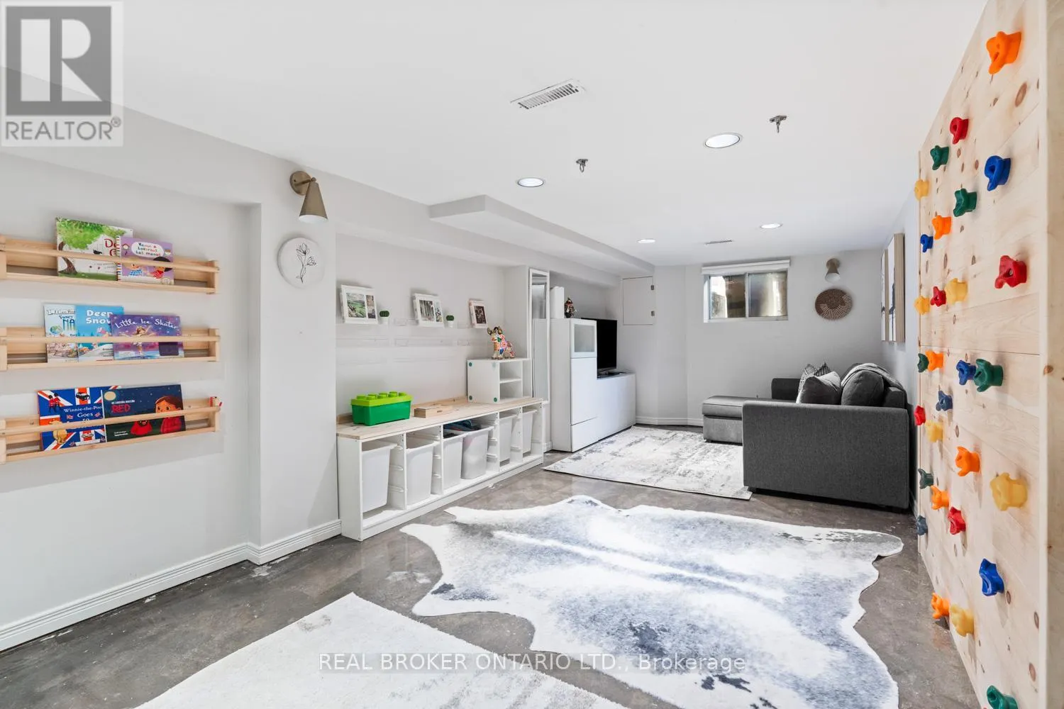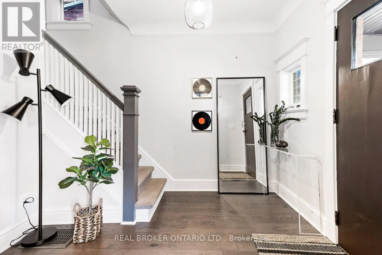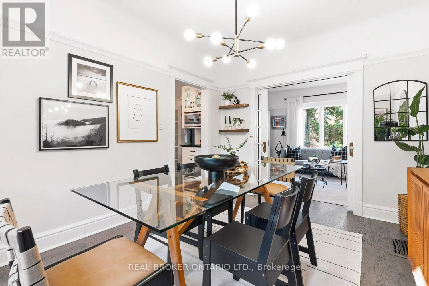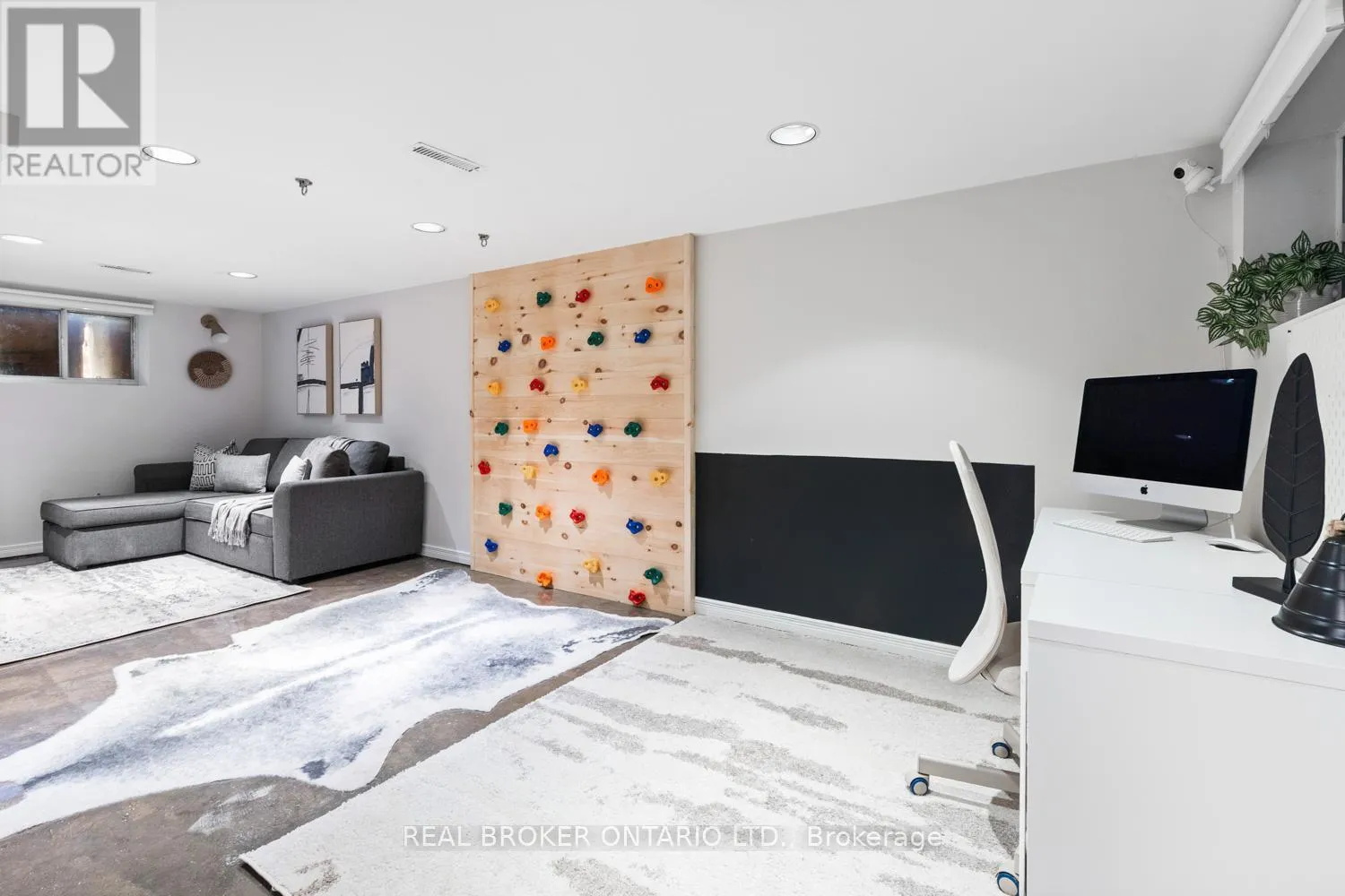 Cross Streets: Kington Rd & Lee Ave. ** Directions: 7JuniperAve is south west of Kingston Rd & Lee Ave, accessible off Lee Ave. A peaceful Beach home in a vibrant community. A rare blend of calm and energy, 7 Juniper sits quietly just minutes from the heart of the Beach. Pull into your parking pad, a luxury not every Beach address offers. Step up to an entryway that's more than a passage: this mudroom wrapped with floor-to-ceiling windows offers room to store your shoes and hang up your coats. To sit and pull off your boots, enjoy a moment beside some of your plant collection, or sift through today's mail. Inside, vintage details like ornate trim and glass knobs reflect the home's history. French and pocket doors on the main floor let you shift the layout: open for connection or closed to define each space. The living room's bright, anchored by a fireplace and built-ins, perfect for a nap, or another try at styling your shelves. The dining room fits a full table for gatherings, and when the weather's right, its doors open to a deck and tree-lined yard, functioning as an indoor-outdoor space. The kitchen leads to the basement, where you'll discover an unexpected climbing wall connected to a rec room, perfect for movie marathons, game nights, and the latest TikTok trend. There's storage, a laundry room, and a full washroom too. Upstairs are three bedrooms, with the primary featuring built-in closets and room for a king bed. Original bay windows in the front bedrooms flood the floor with light, and the bathroom features a clawfoot tub, ready for bubble baths, book balancing, or just admiring a piece of the home's past. Juniper sits within a sought-after school district with Malvern C.I. and Williamson Rd. P.S. for French immersion. Just a short walk down, the calm vibe gives way to the energy of Queen St., lined with cafés, restaurants, and shops. Kew Gardens for markets and concerts. The Jazz Fest every summer. And when you need a break from it all, the boardwalk's there for morning runs, laid-back beach days, or a quiet bench with a view. (id:27476)