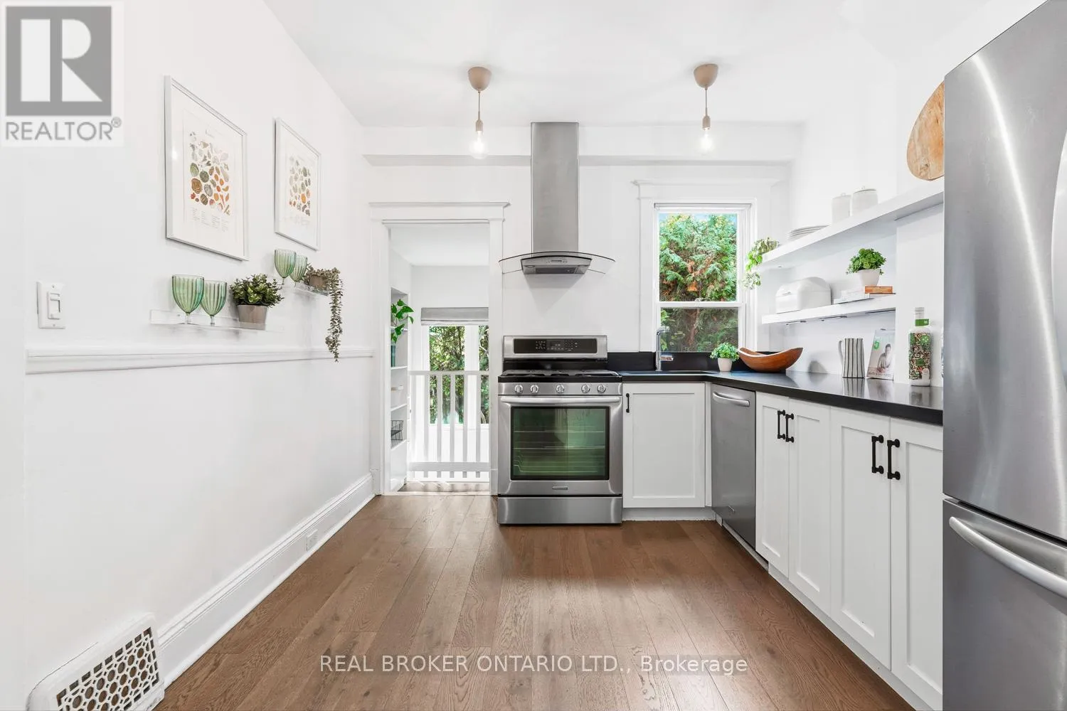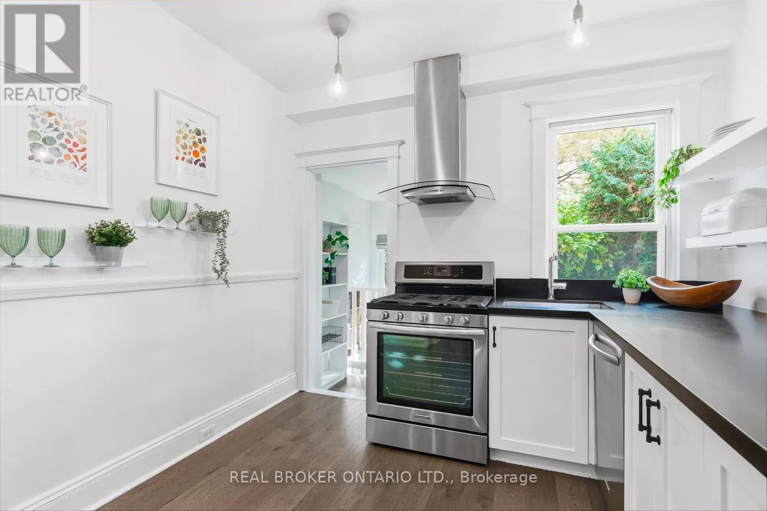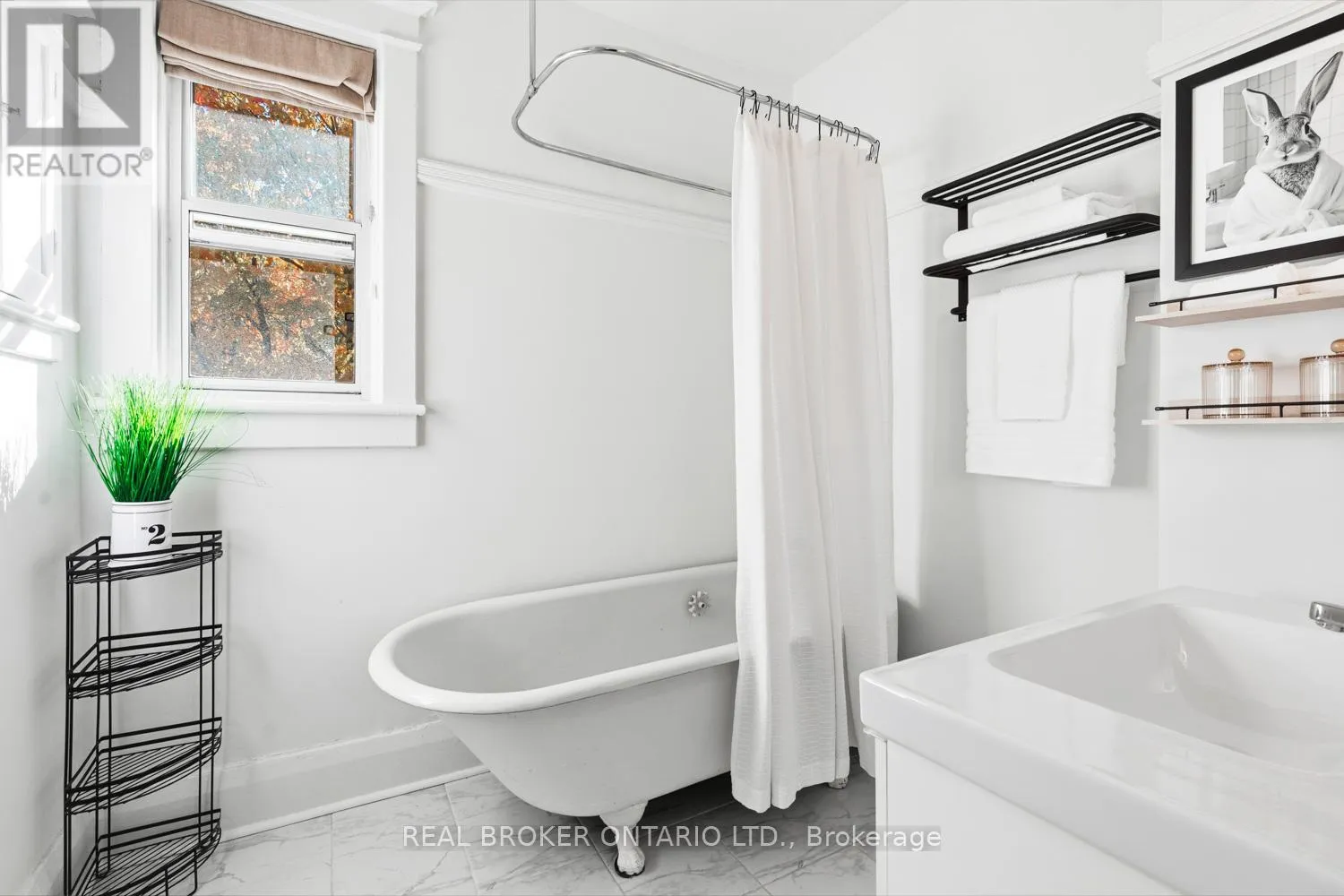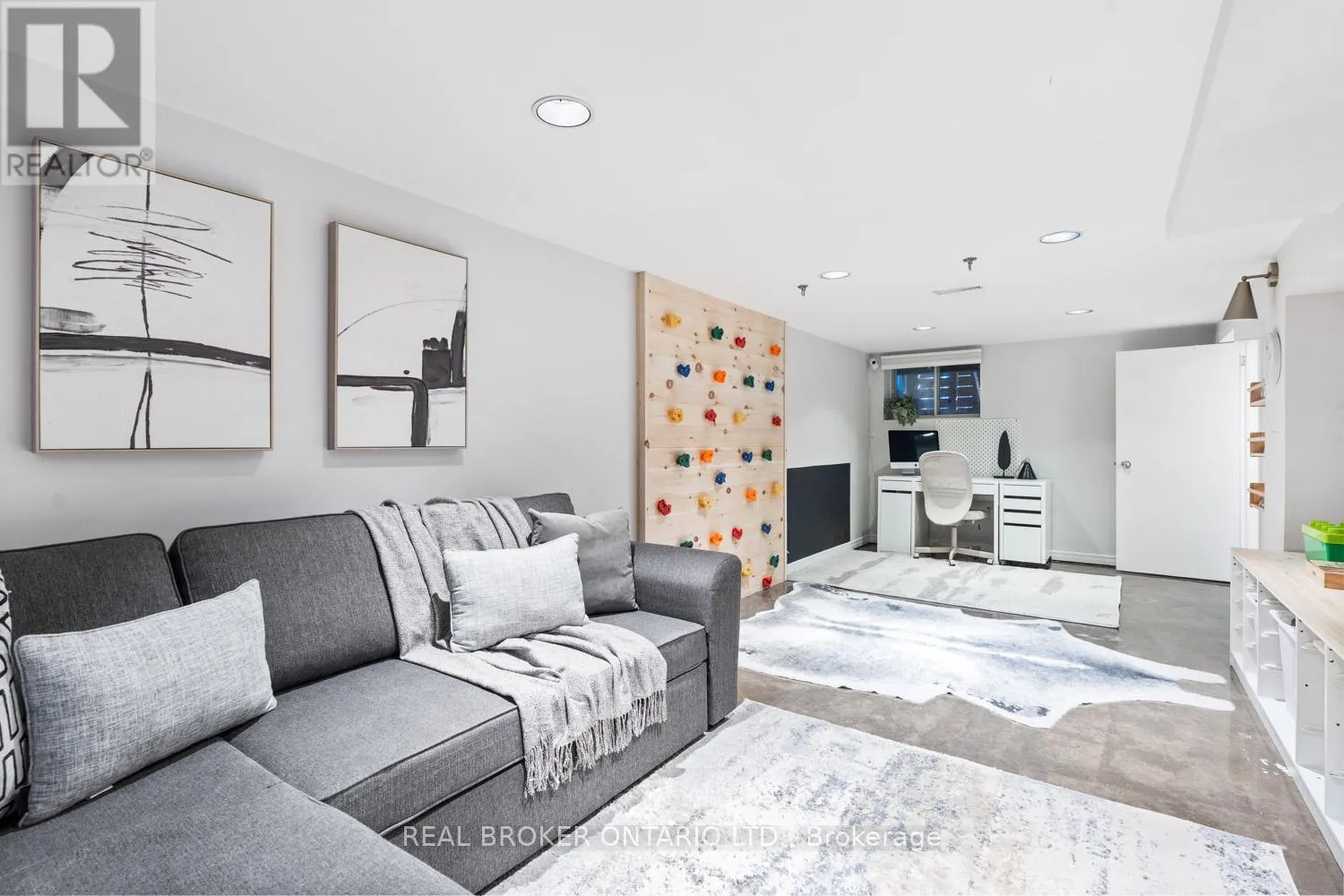 Cross Streets: Kington Rd & Lee Ave. ** Directions: 7JuniperAve is south west of Kingston Rd & Lee Ave, accessible off Lee Ave. A peaceful Beach home in a vibrant community. A rare blend of calm and energy, 7 Juniper sits quietly just minutes from the heart of the Beach. Pull into your parking pad, a luxury not every Beach address offers. Step up to an entryway that's more than a passage: this mudroom wrapped with floor-to-ceiling windows offers room to store your shoes and hang up your coats. To sit and pull off your boots, enjoy a moment beside some of your plant collection, or sift through today's mail. Inside, vintage details like ornate trim and glass knobs reflect the home's history. French and pocket doors on the main floor let you shift the layout: open for connection or closed to define each space. The living room's bright, anchored by a fireplace and built-ins, perfect for a nap, or another try at styling your shelves. The dining room fits a full table for gatherings, and when the weather's right, its doors open to a deck and tree-lined yard, functioning as an indoor-outdoor space. The kitchen leads to the basement, where you'll discover an unexpected climbing wall connected to a rec room, perfect for movie marathons, game nights, and the latest TikTok trend. There's storage, a laundry room, and a full washroom too. Upstairs are three bedrooms, with the primary featuring built-in closets and room for a king bed. Original bay windows in the front bedrooms flood the floor with light, and the bathroom features a clawfoot tub, ready for bubble baths, book balancing, or just admiring a piece of the home's past. Juniper sits within a sought-after school district with Malvern C.I. and Williamson Rd. P.S. for French immersion. Just a short walk down, the calm vibe gives way to the energy of Queen St., lined with cafés, restaurants, and shops. Kew Gardens for markets and concerts. The Jazz Fest every summer. And when you need a break from it all, the boardwalk's there for morning runs, laid-back beach days, or a quiet bench with a view. (id:27476)