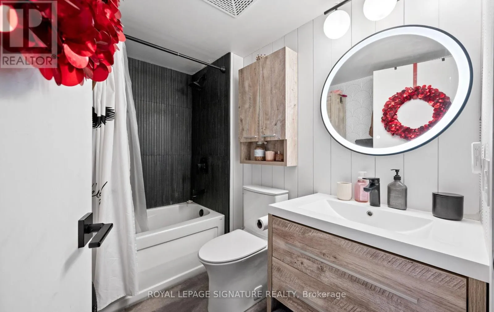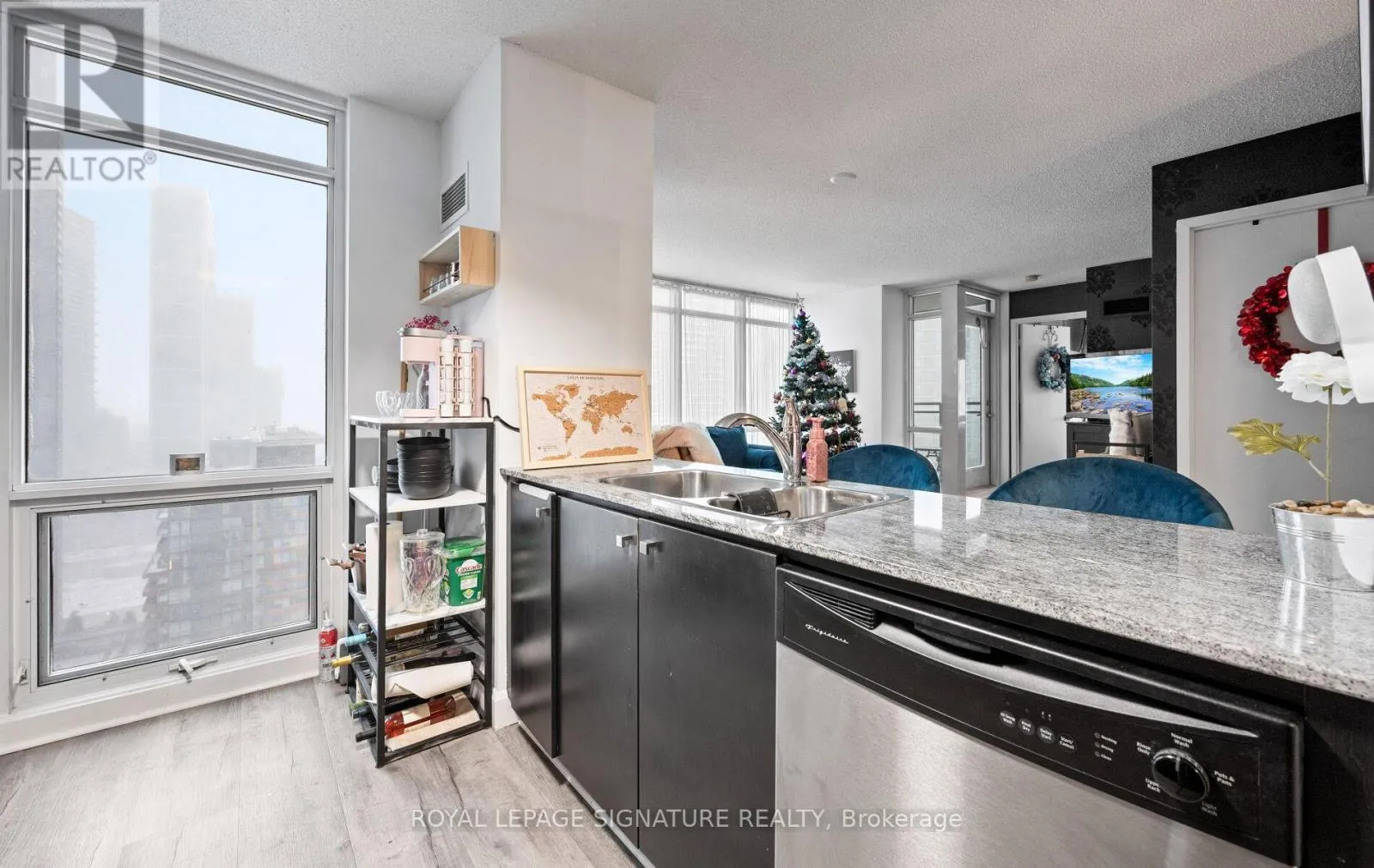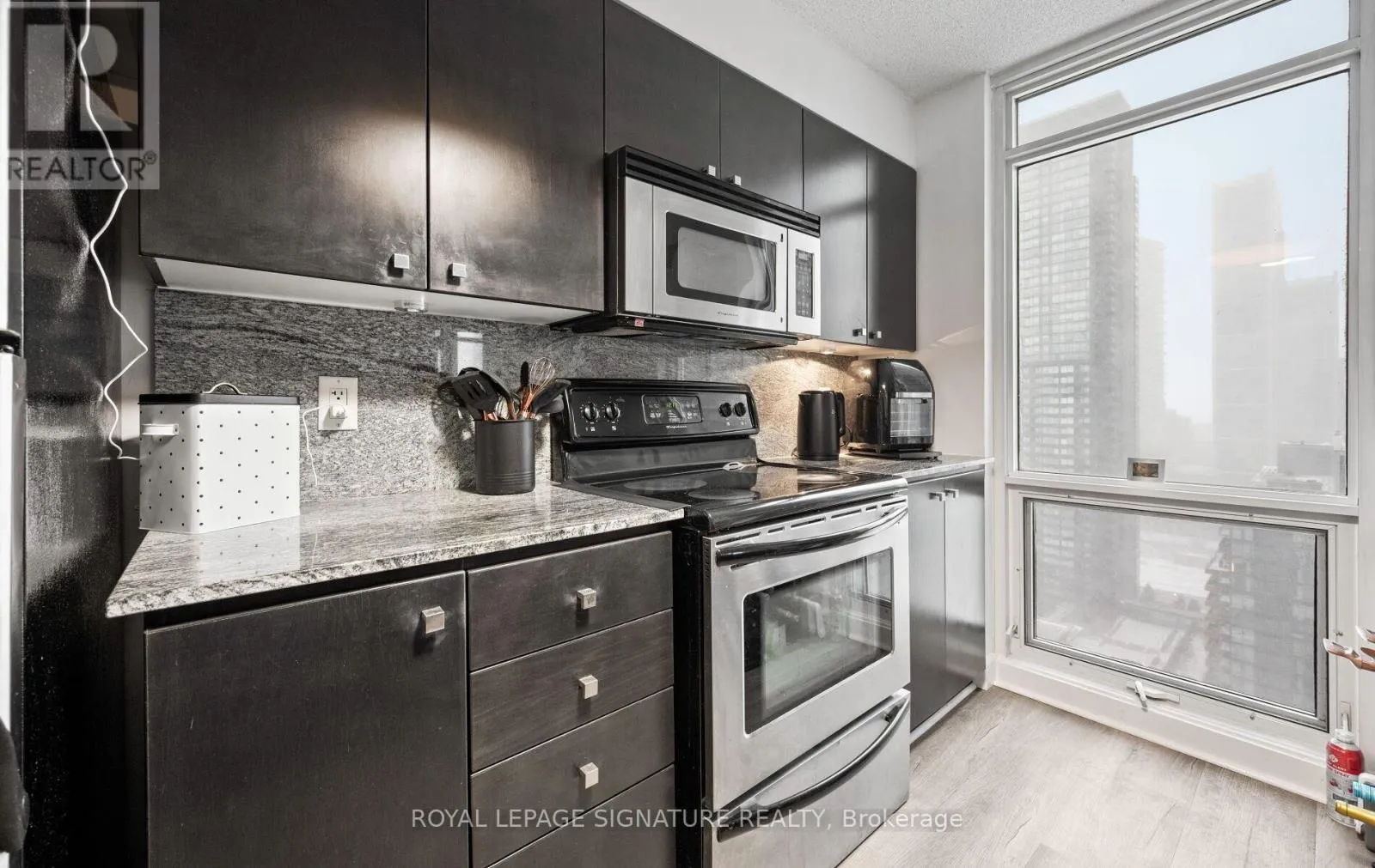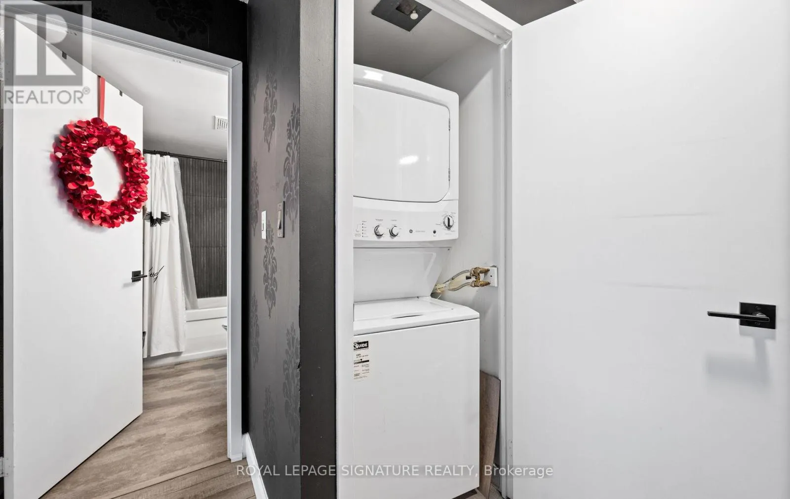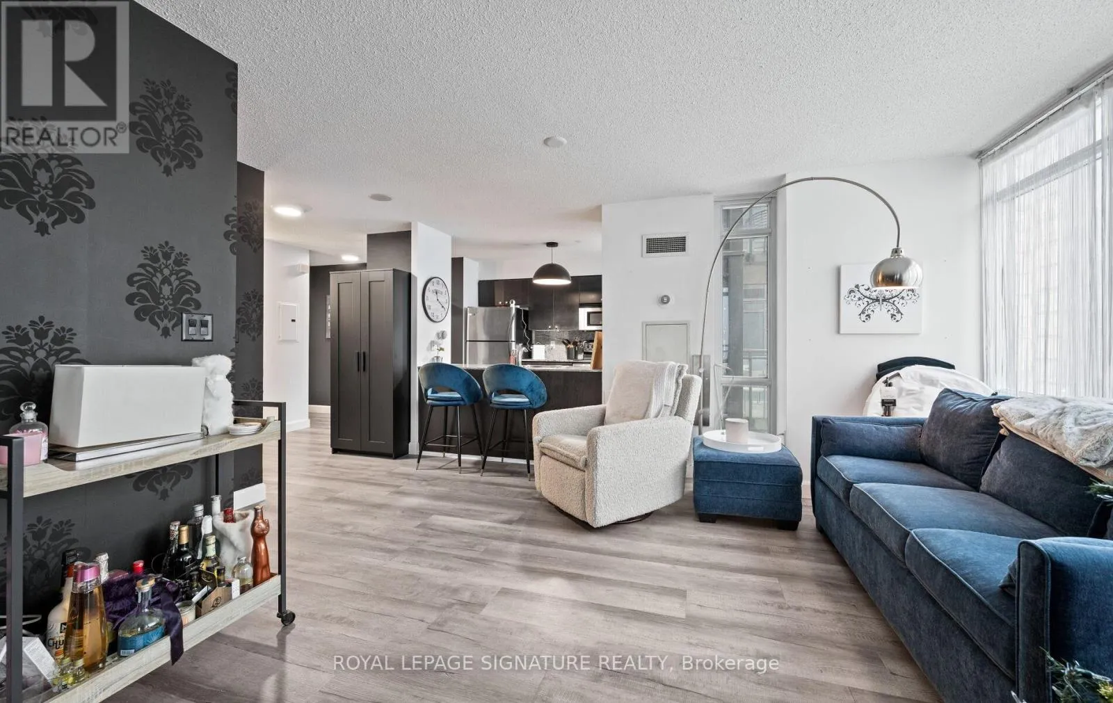Spadina & Fort York Indulge in this bright and tastefully updated corner suite in the heart of downtown Toronto, featuring stunning CN Tower views. This spacious one-bedroom plus den condo offers an open-concept layout designed for both comfort and functionality, with expansive windows that flood the space with natural light and showcase the city skyline. The versatile den is ideal for a home office or additional living space. Modern finishes are featured throughout, complemented by new contemporary lighting and fresh paint/wallpaper. The renovated bathroom boasts stylish, modern upgrades and quality finishes. Ideally located just steps from the waterfront, residents can enjoy easy access to the lake, scenic walking and biking trails, and some of the city's best restaurants, cafes, and nightlife. Surrounded by entertainment, cultural attractions, transit, and everyday conveniences, this home delivers the perfect blend of style, comfort & downtown living. (id:27476)
