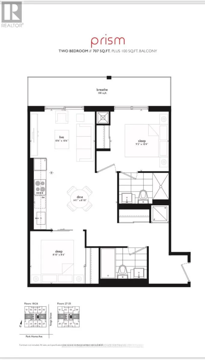 Cross Streets: Yonge St & Sheppard. ** Directions: Yonge St & Park Home Ave. In The Heart Of North York! Brand New Luxurious Beacon Condo Building. Unit With Great Unobstructed Views On 20th Floor With 2 Bedrooms And 2 Bathrooms (One 4Pc And One 3Pc ) In 707 Sqf Plus 100 Sqf Balcony With One Underground Parking Spot. Access To Subway, Great Location Surrounded By Shops, Movie Theatre, North York Library, Restaurants, Cafes & Bars. (id:27476)