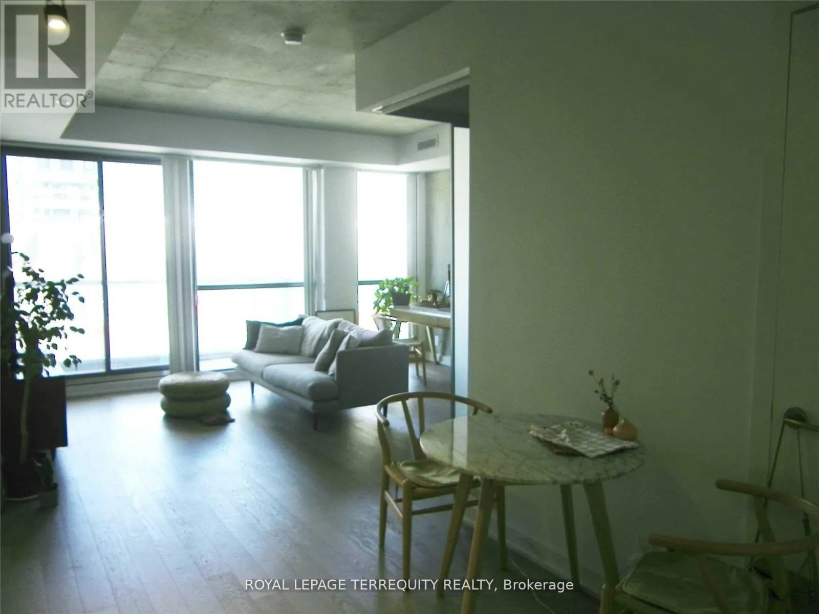 Adelaide W/ Brant St. A spacious modern luxury loft style rare corner unit in the Brant Park Condo. Soaring 9 ft concrete ceilings, freshly painted, new flooring, partial concrete walls. Full size cooks kitchen w/gas range, quartz counters, S/S Appliances. w/ ample room for breakfast table. Spacious living/dining. Floor to Ceiling windows, open balcony w/gas BBQ hook up. Deep Soaker Tub in Bathroom. 2 Front hall closets. Close to Entertainment, Fashion and Financial District. Directly across from the park. (id:27476)