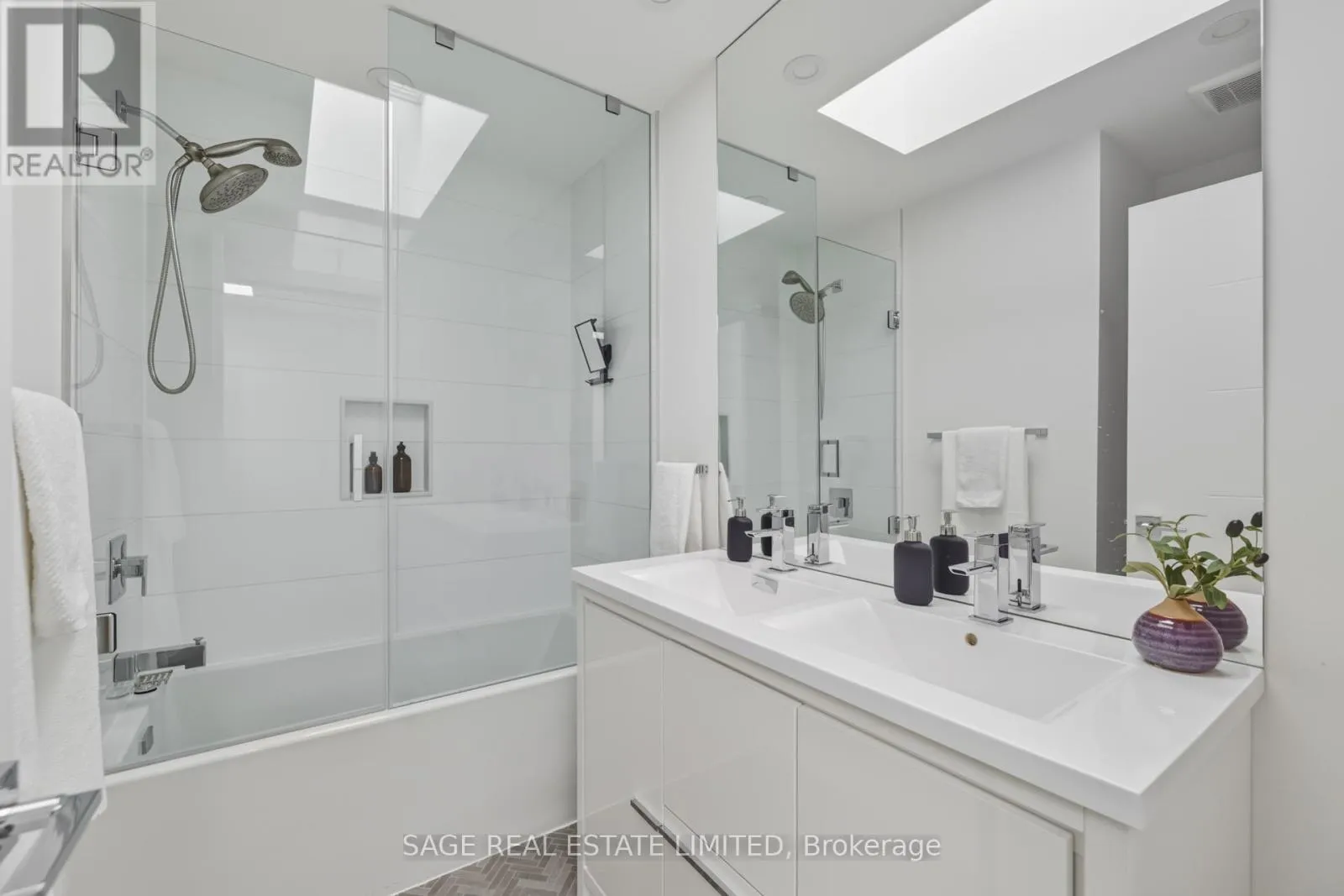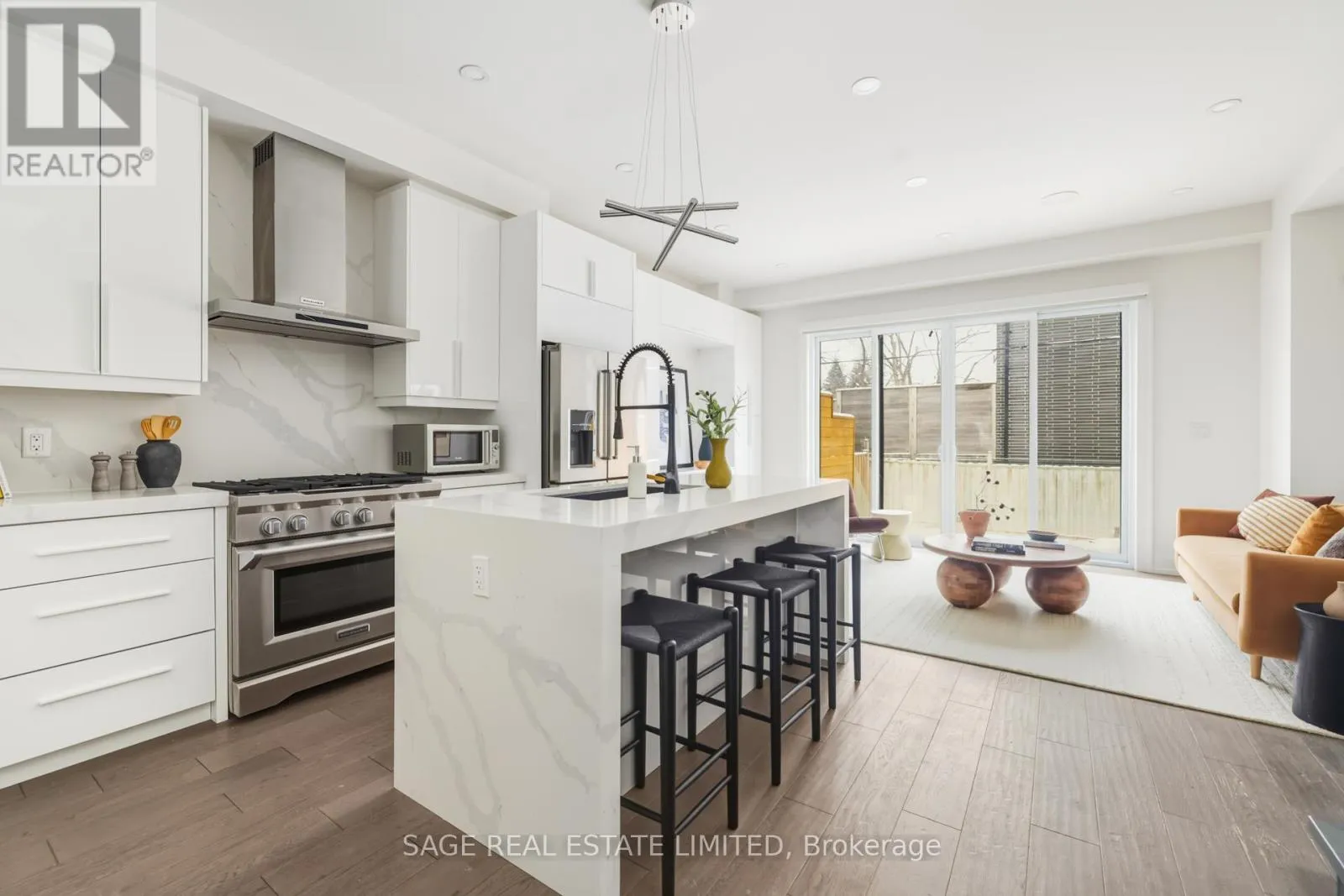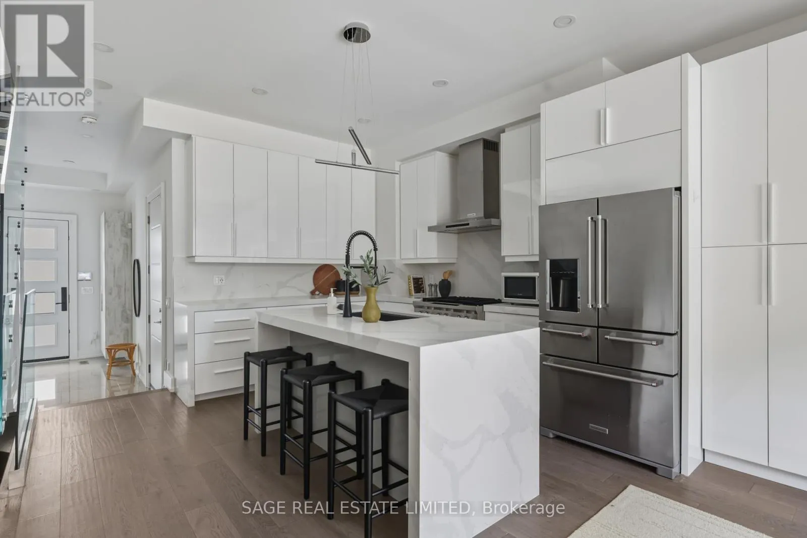 Greenwood and Danforth Not your average East York detached home. 99A Memorial Park is Where Modern Architecture MeetsSmart Living. Built in 2018, this 2-storey detached masterpiece spans over 2,200 square feet of meticulously designed living space where every detail serves a purpose. Step through the entrance and that solid open riser staircase with glass railings isn't just a statement piece, it's a preview of the home's commitment to light and flow. Those 3/4" white oak floors anchor10-foot main floor ceilings, while floor-to-ceiling walkout blurs the line between indoor elegance and your private outdoor sanctuary. Surround-sound speakers throughout mean your dinner playlist follows you seamlessly from the kitchen to the dining room. Your quartz counters and island, Custom cabinetry frames top-tier stainless steel appliances in an open concept layout that makes "entertaining" less event, more everyday. This isn't a kitchen that photographs well - it's one that lives better. The primary ensuite's curbless shower represents modern luxury done right - accessibility meets spa-worthy design. With four bathrooms across three floors, morning routines become parallel processing, not sequential bottlenecks. Here's where it gets interesting - one bedroom has been professionally transformed into a dream dressing room with custom shelving, drawers, and hanging systems, and an abundance of natural light from t skylight. Fashion lovers will swoon; traditionalists can easily restore it to bedroom three. Either way, you win. Memorial Park positions you perfectly between the Beaches' lakeside energy and Danforth's authentic urban pulse and ease of escaping the city via DVP. TTC access keeps your commute civilized while top-rated schools make this a long-term play, not a stepping stone. Your private yard isn't an afterthought - it's where summer actually happens.Gas line for your grill and evergreen turf make it an easy lot to maintain. (id:27476)