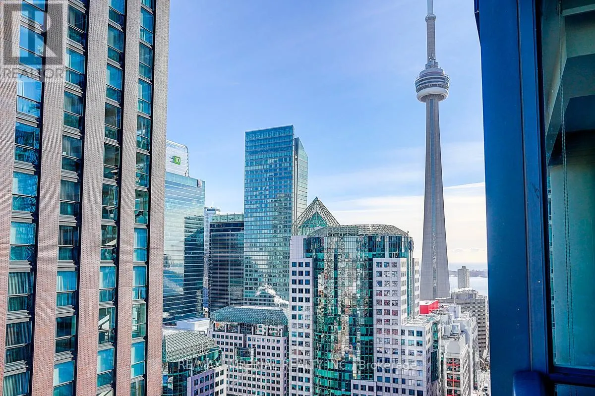 Cross Streets: Adelaide/John Street. ** Directions: SW of Adelaide/John Street. Newly painted with brand-new smooth ceilings, this bright south-east corner 2-bedroom is wrapped in floor-to-ceiling windows, filling the open-concept layout with natural light throughout the day. Enjoy unobstructed CN Tower views, panoramic city vistas, and partial Lake Ontario views from the main living areas. Fresh, clean, and move-in ready, the suite features a functional split-bedroom design and a spacious living/dining area ideal for everyday comfort. Located in the heart of downtown, steps to transit, dining, entertainment, and the Financial District. A beautifully updated corner suite in a prime urban location. Amenities include: 24/7 Concierge, Gym, Yoga room, Meeting Room, Theater Room, Pool, Party room, Sauna and and Plenty of visitor parking. ONE parking space which is located so close to the entrance and TWO lockers. (id:27476)