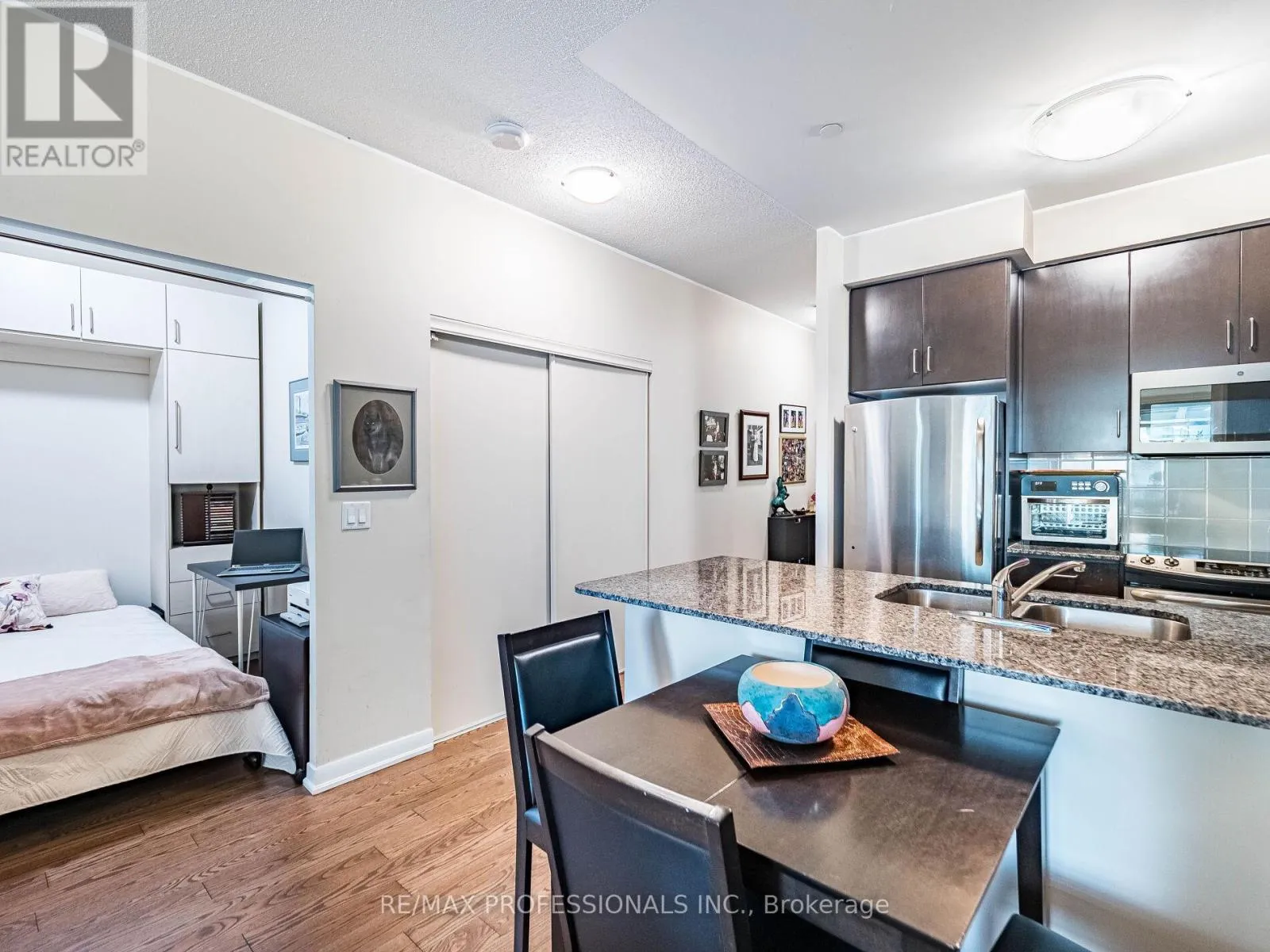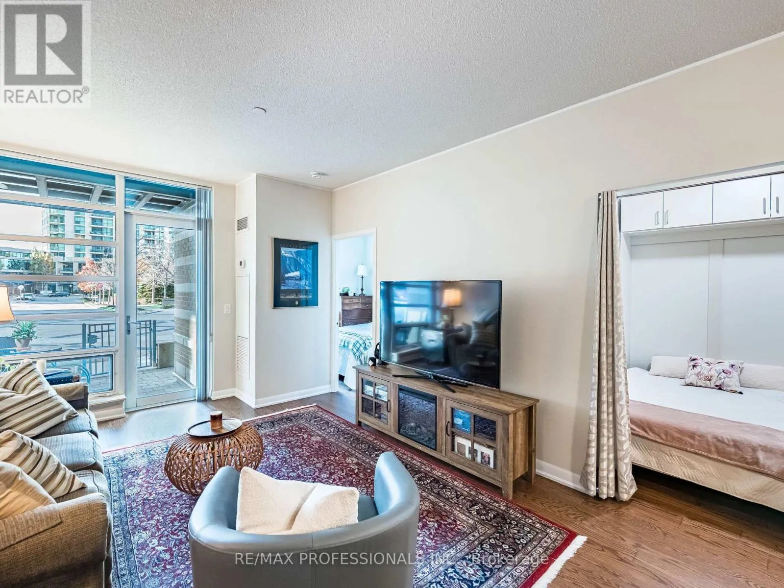 Sherway Gdns. & The West Mall A rare find! This unique sunny west-facing unit is at ground floor level with a walk-out to a private terrace, front driveway & manicured Parkette with lush landscaping and relaxing fountains, bright sunny west exposure. Recently renovated with luxury vinyl plank flooring throughout. Offers 719 sq.ft. of inviting open plan in main living areas, combined with fully equipped kitchen, ample storage & stone counter space. Primary bedroom offers a 3-pc. ensuite w/double shower, large main den includes a custom wall unit with Murphy bed & built-in cupboards, practically tucked away when not in use & combines perfectly as a home office enclave! Additional owned large double storage locker & parking spot is conveniently located a few steps to elevator. This well managed building has many desirable amenities, including 24-hr. concierge, guest suites, outdoor patio/gardens, indoor pool, hot tub, sauna, gym, recreation room & more Conveniently located across from Sherway Gdns Mall with superb dining & shops. Easy access to all major routes, QEW, 427, Gardiner Exp. & Pearson Airport. Simplify your life, come and make this "sweet" suite yours! (id:27476)