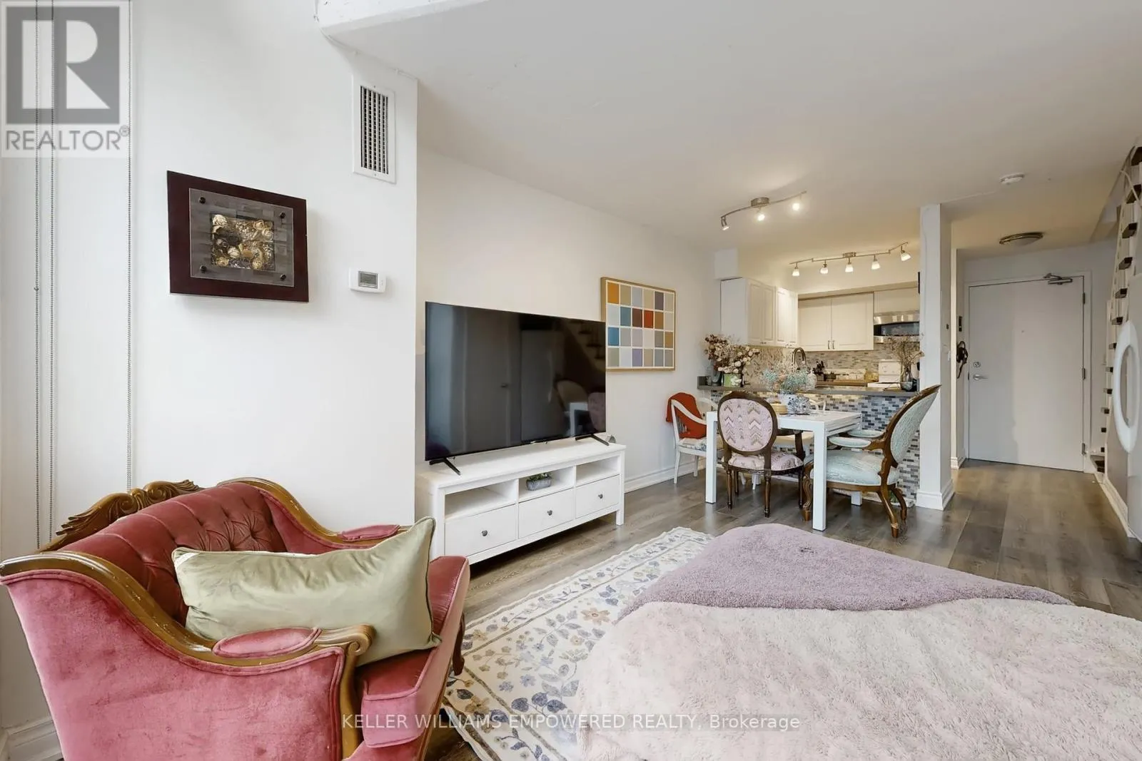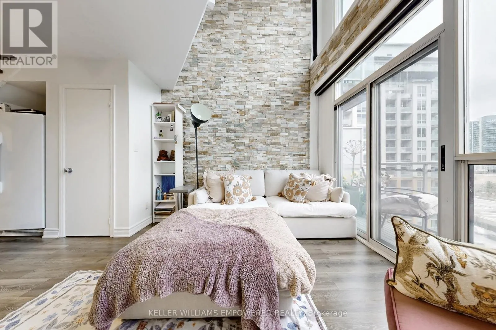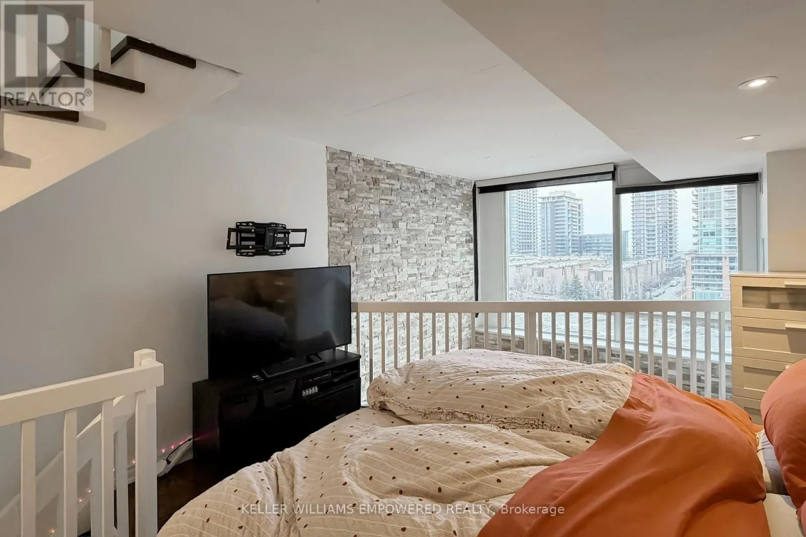 King/Shaw For all of the loft lovers-your search ends here. Discover this truly rare, two-storey penthouse terrace suite at Electra Lofts in the heart of King West. South-facing and sun-drenched, this bright, spacious, and airy residence has been impeccably maintained and showcases striking, design-forward upgrades throughout. Highlights include a dramatic 17-foot custom rock feature wall, sleek quartz countertops, new hardwood staircase with integrated LED lighting, an LG refrigerator with water and ice maker, and stylish updated lighting. Enjoy exceptional outdoor living with two private spaces-a main-floor balcony and an expansive rooftop terrace offering unmatched lake and city skyline views, perfect for entertaining or unwinding above the city. The primary bedroom is a true retreat, featuring hardwood floors, a large walk-in closet with custom built-ins, and pot lighting for a warm, refined ambiance. This suite also includes an oversized parking space and locker, conveniently located across from a quiet, discreet elevator. All of this in an unbeatable location-steps to transit, parks, and the best of Toronto's west end. Walk to Stanley Park, Trinity Bellwoods, the vibrant Ossington Strip, Queen West boutiques and shops, and the renowned restaurants, cafés, and nightlife of King West. Perfect for young professionals seeking the ultimate loft lifestyle-style, space, and city living at its finest. (id:27476)