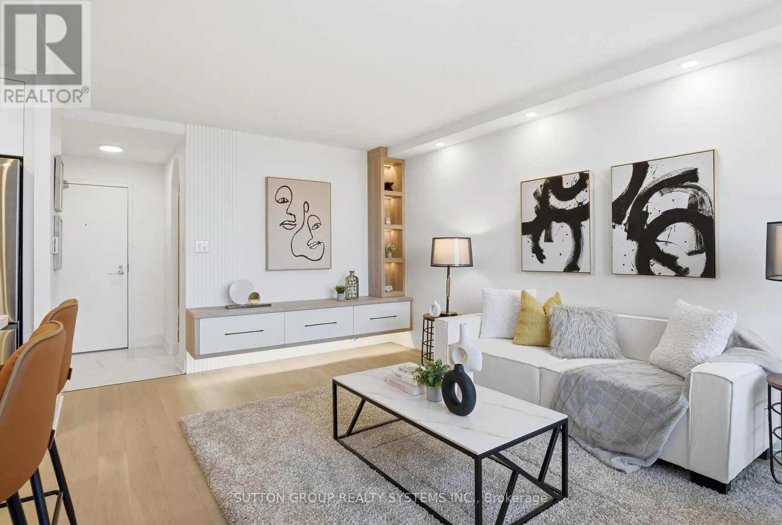 Cross Streets: The Queensway/Southport. ** Directions: Windermere/Queensway. Nestled in Toronto's coveted High Park-Swansea neighborhood, this stunning penthouse unit offers the perfect blend of urban sophistication and serene natural beauty. Enjoy breathtaking, unobstructed views over lush treetops-a tranquil treetop canopy that brings a sense of peace and privacy to your everyday life, just steps from the city's vibrant west-end amenities. Spanning over 1,100 sq ft, this fully renovated two-storey condo has been meticulously redesigned and never lived in since its transformation. Every detail exudes modern luxury: custom built-ins throughout, a gourmet kitchen with sleek quartz countertops and matching backsplash, high-end engineered oak flooring, smooth ceilings, new trims and doors, and a striking built-in media wall. The spacious layout features 2 bedrooms plus a versatile den (ideal as a home office), 1.5 spa-like bathrooms with premium finishes, and ample storage solutions. Ascend the newly updated stairs with contemporary railing to discover bright, open living spaces flooded with natural light. Step out onto the large walk-out balcony, finished with elegant patio tiles-perfect for al fresco dining, with BBQs allowed for effortless entertaining. Residents enjoy endless resort-style amenities, including an indoor pool, sauna, party room, gym, games room, library, and outdoor tennis court. All-inclusive maintenance fees cover utilities, cable, and internet for worry-free living. Experience elevated condo living where nature meets luxury in one of Toronto's most desirable enclaves. **Must Be Seen In Person to be Appreciated** (id:27476)