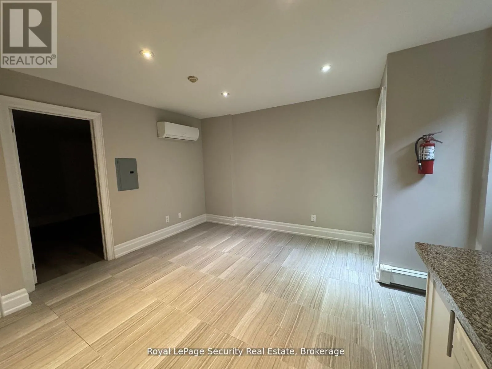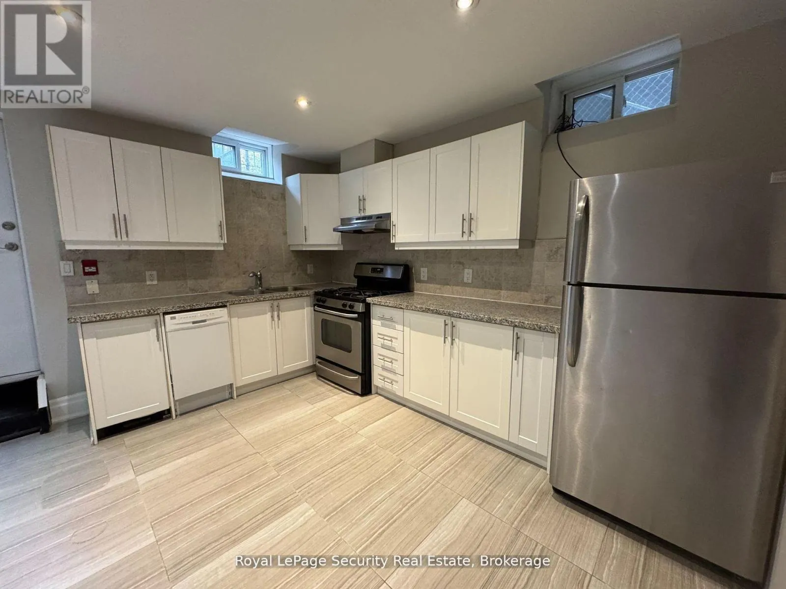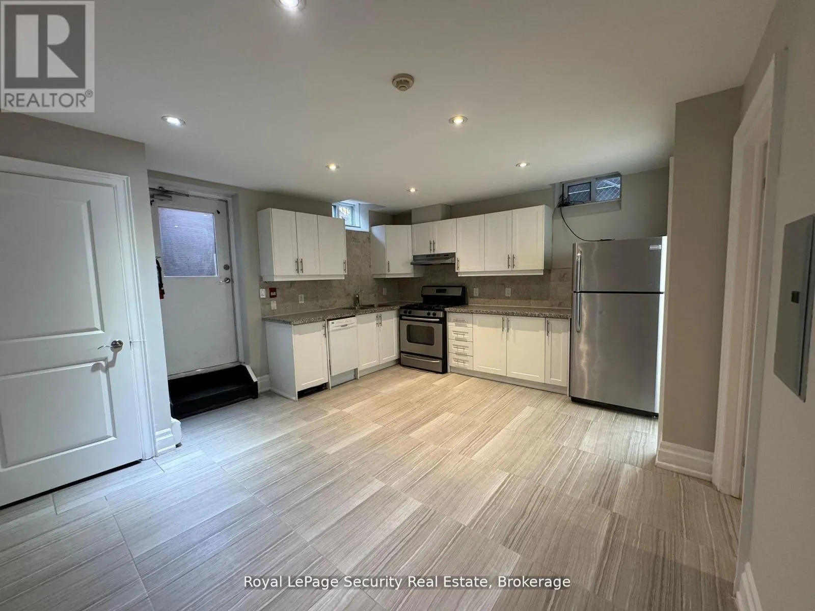 College St & Bathurst St Welcome to this well-maintained 1-bedroom, 1-bathroom basement unit in a charming triplex. The apartment features a bright, open-concept layout that combines the kitchen and living area. Located just steps from Kensington Market, with Kensington Community School directly across the street and Toronto Western Hospital just south on Lippincott, this unit offers unbeatable convenience. Surrounded by shops, restaurants, schools, and everyday amenities, the location is ideal for students, young professionals, or couples. The unit includes all electric light fixtures and appliances, including a fridge, stove, and dishwasher. Shared, coin-operated laundry is available on-site. Please note that parking is not included; however, street parking is available by permit. Hydro and Enbridge utilities are extra. (id:27476)