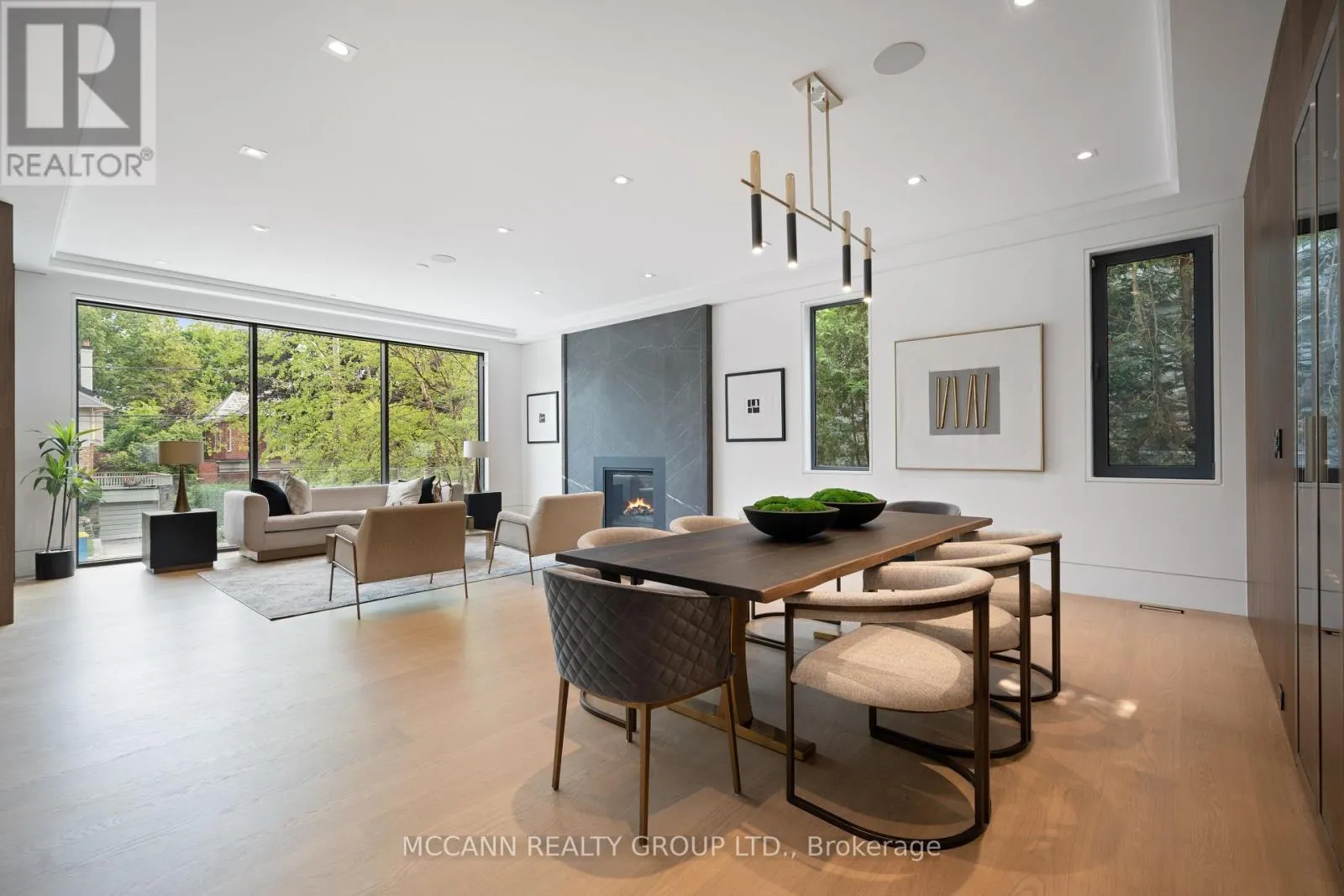 Cross Streets: Lawrence & Mt Pleasant. ** Directions: S. Lawrence & E. Mt Pleasant. Welcome to this exquisite custom-built 4+2 Bedrm 6 Bathrm home, perfectly situated in the heart of Lawrence Park. Soaring 10ft ceilings, sleek pot lights, and White Oak hardwood flrs throughout. Open Concept living and dining rm creates a spacious environment ideal for entertaining with natural light through the floor to ceiling windows. Living rm boasts a gas fireplace. Dining rm features a wine cellar. Main flr office, complete with smart frosting film on glass offers option for privacy. Grand foyer showcases a walk-in closet with sliding doors, powder rm impresses with designer sink and heated floors. Mudroom off of side entrance with custom closets and bench. Gourmet kitchen is a chefs dream, with built-in Miele appliances, refrigerator, freezer, 6-burner gas range, coffee system, transitional speed oven, and dishwasher. Custom-built center island adorned with luxurious quartzite countertops. Open-concept family room, featuring another fireplace with walk out to deck. Natural light floods the contemporary staircase with skylights overhead. Primary suite offers a serene retreat, complete with a 6-piece ensuite, walk-in closet, gas fireplace, bar with beverage cooler, and speaker system, all overlooking the tranquil backyard. 2nd Bedroom with 4pc ensuite features custom built in closets. 4pc ensuite has caesar stone counter top, tub and heated floors. 3rd & 4th Bedrms offer south facing large windows with shared 3pc ensuite with Custom Vanity w/ Caesar stone Countertop, heated flrs, shower. Mezzanine office with gas fireplace. Lower level offers an expansive rec room, two additional bedrooms (ideal for a gym), 2 3pc bathrms, laundry, and a home theatre. Federal Elevator system. iPort Home Automation System. Hot Tub & Pool. Heated Driveway & Stairs, Front Porch, Rear Deck & Rear Stairs. Camera Security System. Double Car Garage. Sprinkler System. Concrete Deck w/Glass Railing (id:27476)