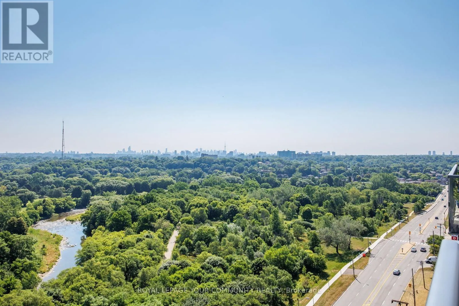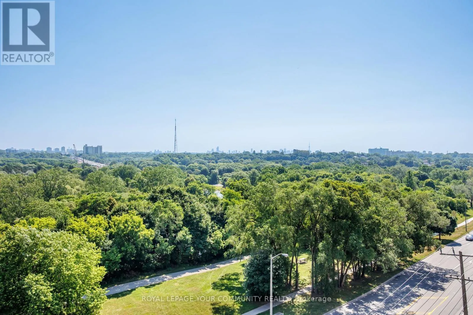 Eglinton Ave and Scarlett Rd Welcome to Perspective Condominiums in the heart of Etobicoke. This 2 bedroom + Den Penthouse suite features 10ft ceilings with upgraded pot lights throughout. Open concept living, kitchen, and dining room gives you all the space to decorate to your hearts desire. Large balcony with gas line for BBQ hookup overlooking the Humber River and CN Tower. Primary bedroom includes a walk-in closet and ensuite bath. Rarely available 2 side by side Parking Spots adjacent to the elevator and 1 spacious storage locker. The building offers 24 hour security/concierge, an all year round indoor pool with steam rooms, 2 Party Rooms, Theater Room, Golf Simulator, Exercise Room, Pet Spa and 6th floor roof top terrace with BBQs. Guest suites are available year round for visiting family and friends. This location can't be beat. Walk to nearby James Gardens or Enjoy a bike/walk through the lush Humber River Trails. Easy access to the upcoming Eglinton LRT, TTC, HWY 427, HWY 400, and a short commute to downtown Toronto, Bloor West Village, and the Junction. Shops at ground level include a cafe, pharmacy, dental office, and optometrist for your convenience. (id:27476)