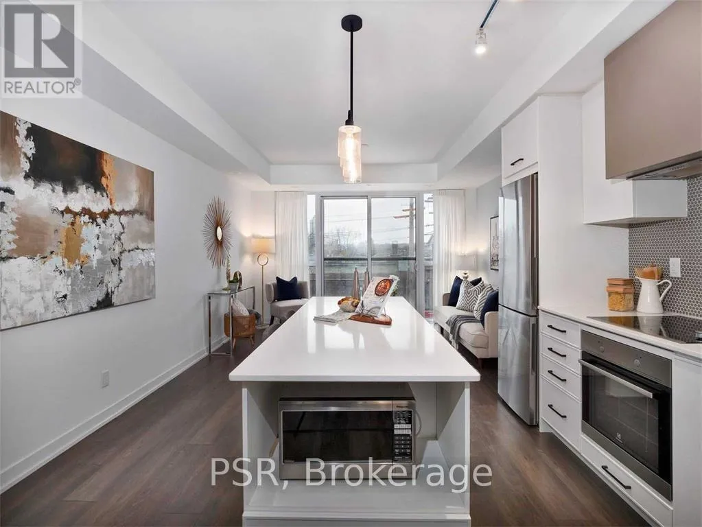 QUEEN & LOGAN Welcome to The Logan -- a modern boutique residence in the heart of Leslieville. This bright and thoughtfully designed 680 sq ft 1+Den offers a smart open-concept layout with floor-to-ceiling windows, filling the space with natural light and extending seamlessly to a private Juliet balcony. The contemporary kitchen features European-style appliances, sleek cabinetry and a quartz island, ideal for both everyday living and entertaining. The versatile den provides the perfect space for a home office, study area or guest zone. Residents enjoy access to a beautifully curated rooftop terrace with BBQs, lounge seating and skyline views, as well as a fully equipped fitness centre, party/meeting room, dog wash station and secure bike storage. Set on one of Toronto's most vibrant strips, steps to cafes, restaurants, boutiques, transit and parks, this is urban living at its finest -- perfect for professionals looking for a prime Leslieville address. (id:27476)