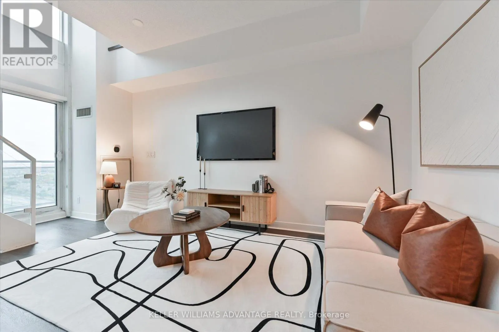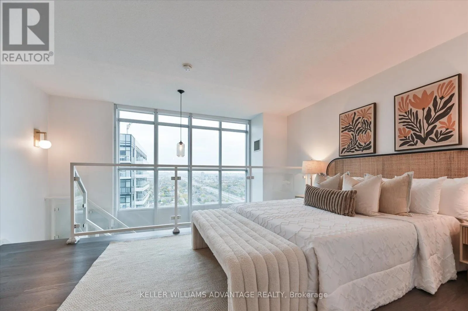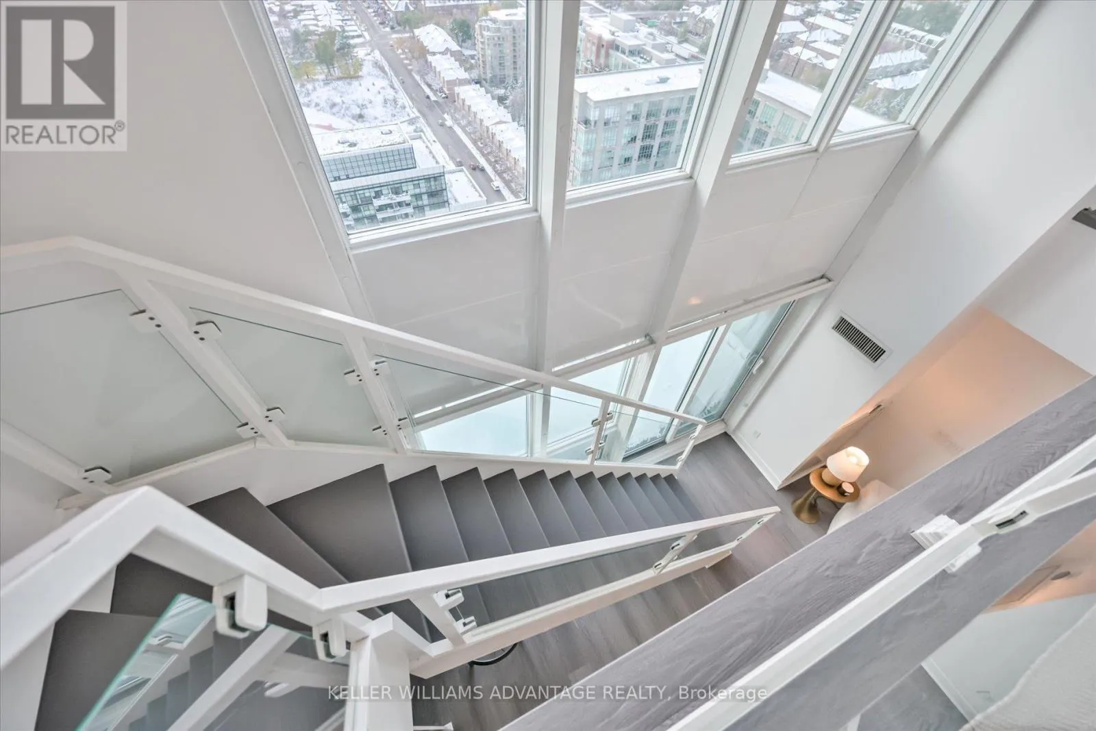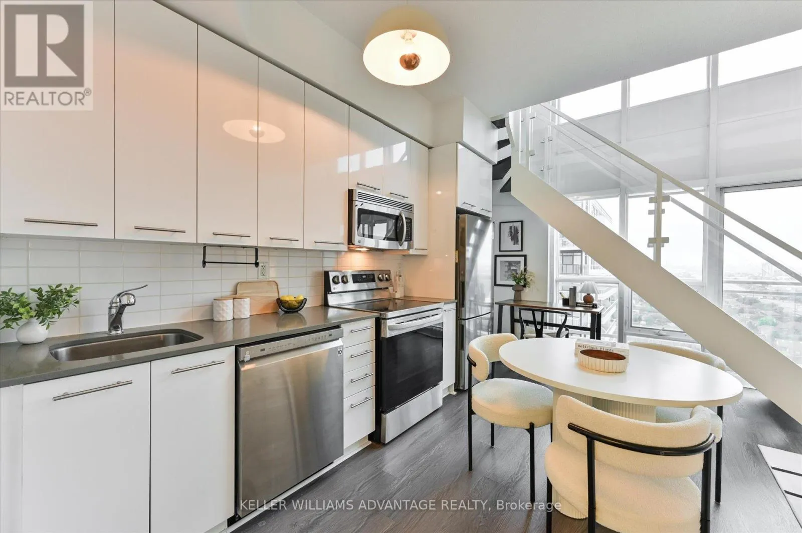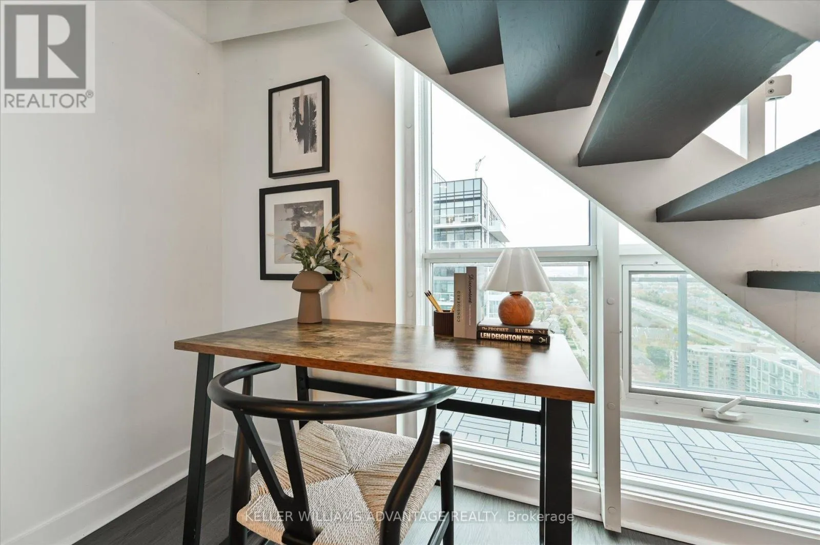 Cross Streets: Lakeshore/Parklawn. ** Directions: Ask Siri. *See Broker Remarks. Experience elevated urban living in this sun-filled, west-facing Penthouse showcasing sweeping views through soaring 17ft floor-to-ceiling windows. This impressive two-storey loft spans 720 sq. ft. of well-planned, open-concept space designed for both comfort and style. The main level features a spacious living and dining area, an open modern kitchen with premium built-in stainless steel appliances, a convenient two-piece powder room, and a private balcony that spans the width of the unit and offers expansive city and lake vistas. A clever under-stair nook provides flexible use as a home office, storage, or pantry. Upstairs, the serene primary suite serves as a private retreat with convenient his-and-hers closets and built-in organizers, plus a spa-inspired ensuite complete with a soaker tub and separate shower. The layout is ideally suited for a single professional or couple seeking generous living space and a flexible work-from-home environment. Enjoy an exceptional selection of resort-style amenities, including 24-hour concierge, a fully equipped fitness centre, party room, outdoor pool, rooftop deck with BBQs, games and media rooms, sauna, squash courts, bike storage, and guest suites. Located in the heart of Mimico, this prime address offers unbeatable convenience-minutes to the Gardiner Expressway, Mimico GO Station, waterfront trails, shops, groceries, public transit, and more. One parking space is included. A virtual tour is attached for your viewing. (id:27476)