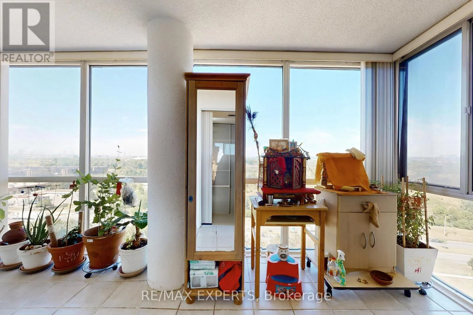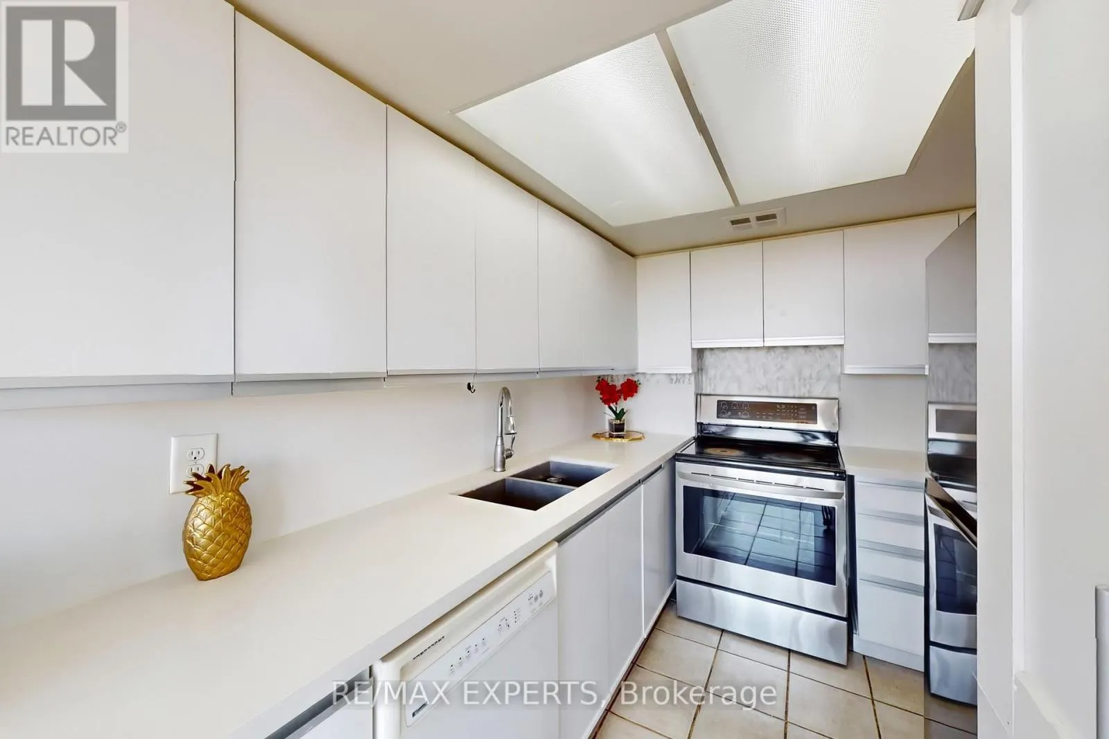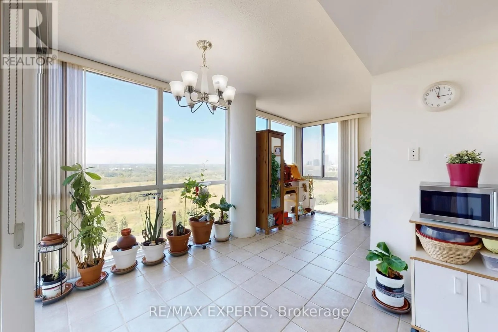 Kipling Ave And Steels Welcome Home! Ideal for first-time buyers, downsizers, or astute investors, this beautifully maintained 2-bedroom + den condo with a bright solarium offers an exceptional balance of space, comfort, and everyday convenience. Top 6 Reasons You'll Love This Home:1. Spacious & Well-Designed Layout: Approximately 1,150 sq. ft. of thoughtfully planned living space featuring two generous bedrooms, two full bathrooms, and a sun-filled solarium-perfect for a home office, dining area, or relaxing reading nook. 2. Modern, Stylish Kitchen: A well-appointed kitchen showcasing sleek quartz countertops, efficient workspace, and timeless finishes-ideal for both daily living and entertaining.3. Comfort & Practicality. The primary bedroom boasts his & hers closets and a 4-piece ensuite. Enjoy the added convenience of in-suite laundry and ample storage throughout.4. Serene City ViewsUnwind with peaceful north-facing views of the city skyline and surrounding greenery-your own private retreat above it all.5. Exceptional Building AmenitiesExperience resort-style living with access to an indoor pool, fully equipped gym, party room, games room, sauna, and more.6. True All-Inclusive ValueA rare and valuable offering-heat, hydro, water, air conditioning, and parking are all included in the monthly maintenance fees, providing peace of mind and predictable expenses. Prime Location: Conveniently located just steps from TTC transit, shopping, groceries, banks, and top-rated schools-everything you need is right at your doorstep. Bright, spacious, and truly move-in ready, this home checks all the boxes. Book your private showing today and experience it for yourself. (id:27476)