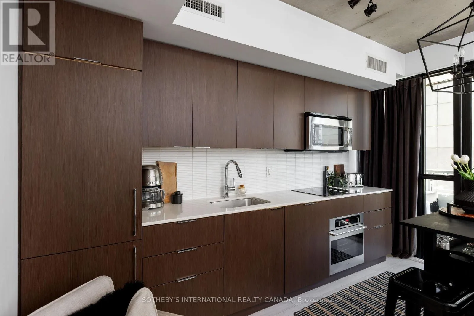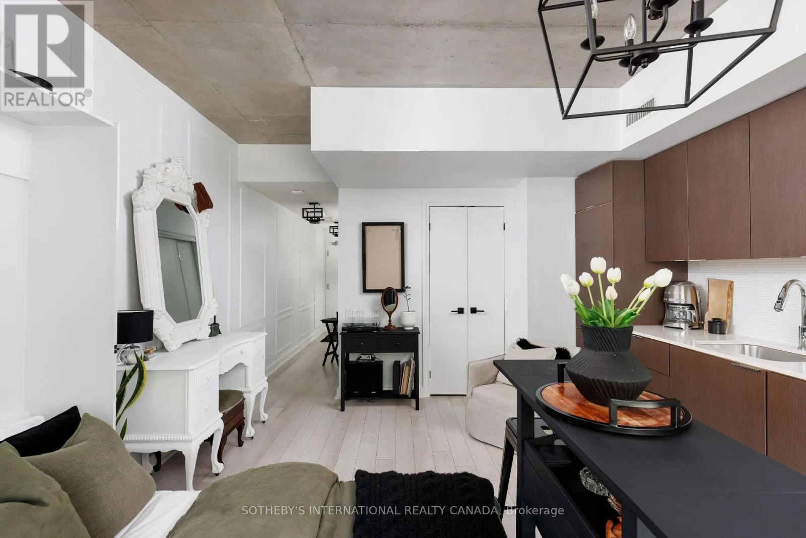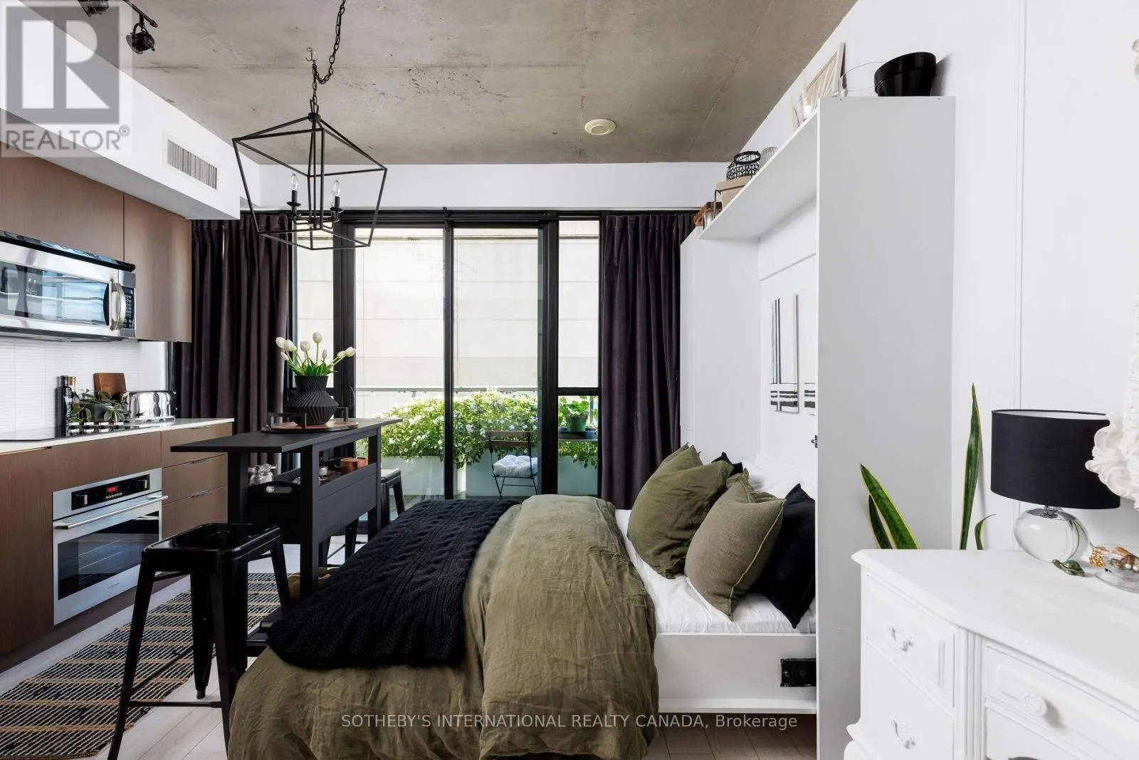 Cross Streets: Hanna Ave & East Liberty St. ** Directions: Travelling West on East Liberty, Turn left on Hanna Ave, head South and parking in visitor parking in laneway at front of building or East of building. Find happiness on Hanna Ave in this stylish studio apartment at the ever popular Liberty Market Lofts! Suite 223 has been designed with function and flare, featuring upgraded lighting, custom trim work in hallway & exposed 9ft concrete ceilings give it that lofty vibe. Making the most of the open concept space, you'll find unique pieces & smart storage solutions throughout. The modern kitchen boasts quartz counters, integrated & stainless steel appliances & ample cabinet space. Your balcony, being the full width of the unit is an extension of the living space, equipped with furniture, lighting and planters where you can grow your own flowers! Love living in Liberty Village just steps to parks, grocery stores, shops, restaurants, bars, fitness clubs, the TTC, the Exhibition GO Train (& the Future Ontario Line!), Budweiser Stage, Lake Ontario & so much more! Amenities at the Liberty Market Lofts include; 24 hour concierge, visitor parking, two guest suites, party room with Billiards area, multiple meeting rooms, dog wash, communal large sized washing machine & dryer, a private courtyard, a gym with Peloton Bike, squat rack, free weights and cardio equipment and a yoga room + a half court basketball court! Rental parking is available in the building. (id:27476)