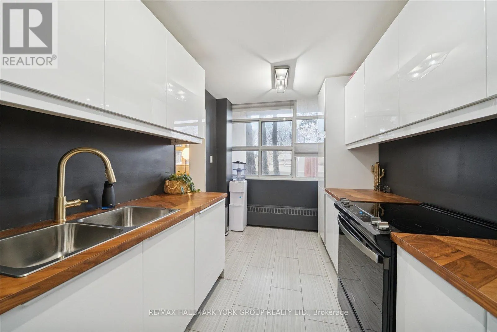 Don Mills/Eglinton Step Into Homeownership With This Completely Remodelled, Bright & Stylish 770SqFt Corner Suite at Glen Valley Condos. This 2-Bedroom Home Delivers Rare Space, Sunlight With Both South and West Exposure. Fully Updated Top to Bottom, It Offers Modern Design, Premium Finishes, and a True Move-In Ready Lifestyle.The Open-Concept Living Area Features Luxury Vinyl Plank Flooring, Sound-Absorbing Panels, Updated Trim, New Doors, Modern Fixtures, and a Striking Accent Wall. The All-New Kitchen Impresses With Push-Open Cabinetry, Herringbone Wood Countertops, Integrated Fridge/Freezer and Dishwasher, Plus Ample Storage and Counter Space. Appliances Include a Stainless Steel Stack Washer/Dryer (2023) and Black Stove, with Integrated Fridge and Dishwasher (All 2024!). Step Into The Spa Like Bathroom That Has Been Thoughtfully Rebuilt With a Modern Vanity, Quartz Countertop, Luxury Vinyl Tile, Limewash Paint, Heated/Defogging Mirror, Elegant Bowl Sink, and New Fixtures Throughout. Premium Top-Down/Bottom-Up Roller Blinds Offer Ideal Light and Privacy Control. Parking and Locker Are Also Included, and the Monthly Fee Covers Everything! - Hydro, Heat, Water, Cable TV, and Second Parking Spot Available For $50/month, Ample Visitor Parking Available.. Amenities Are a Major Highlight: Dive Into the Massive Indoor Pool, Unwind in the Saunas, Work Out in the Full Gym, or Host in the Stylish Party/Games Room. An Unbeatable Location in One of Toronto's Fastest-Growing Pockets. Located Minutes to the Shops at DonMills, DVP, TTC, Parks, and Schools, This Is a Lifestyle Upgrade From Every Angle. Move-in Ready, Extensively Renovated, and Offering Exceptional Value for the Area. This is The One You've Been Waiting For! (id:27476)