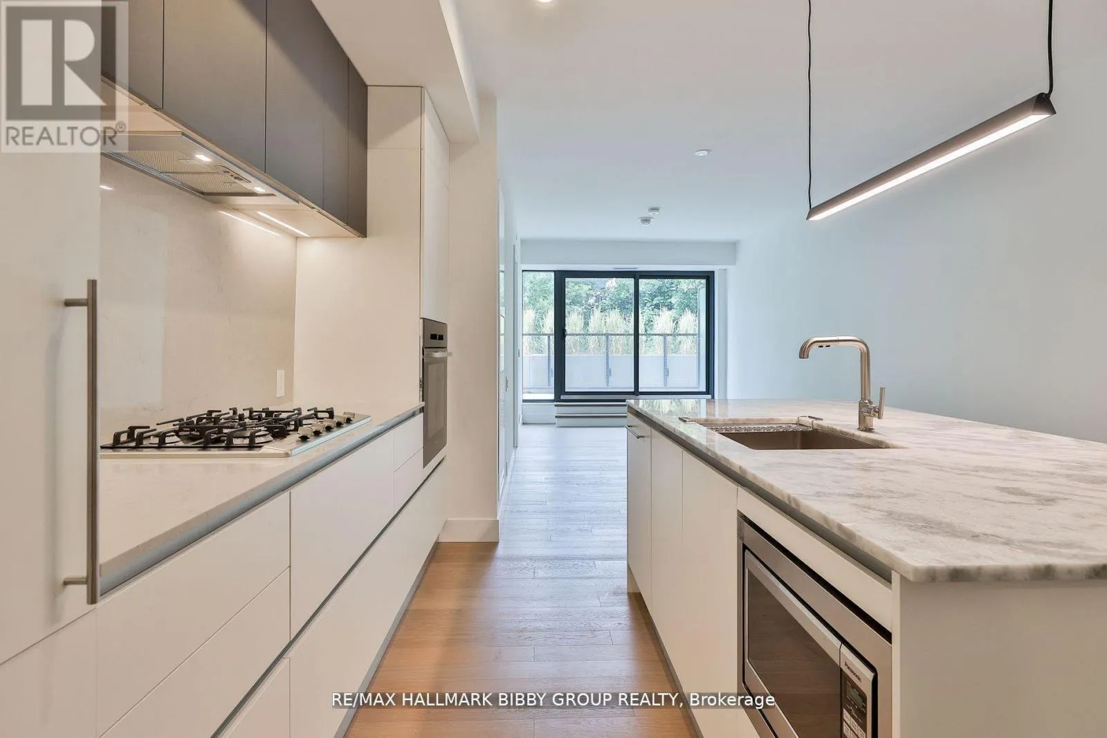 Bayview Avenue & Merton Street A Grand & Tranquil Living Experience. This Two-Bedroom, Two-Bathroom Unit In 1414 Bayview Provides An Abundance Of Living Space And An Unmatched Outdoor Experience Complemented By A 115 Square Foot Private Terrace Oasis, Integrating Into A Majestic Garden Which Features Pre-Cast, Concrete Built-In Planters And Exceptional Tree Coverage In The Distance. Every Inch Of This Residence Reflects Superior Craftsmanship And Attention To Detail With Refined Modern Finishes Throughout. Floor To Ceiling Windows Provide An Abundance Of Natural Light And The Expansive, Sun-Drenched Principal Rooms Are An Entertainers Dream With Soaring Ceilings. The Breathtaking Modern Italian Kitchen Features Integrated Miele Appliances, Caesarstone Countertops And Ample Storage. The Primary Bedroom Retreat Boasts A Large Walk-In Closet And Three-Piece Spa Like En-Suite Bathroom. The Large, Private Second Bedroom Is Perfect For Guests And Includes An Adjacent Four-Piece Bathroom Immediately Outside. World Class Amenities Designed By Sixteen Degree Studio Include Residents Library Lounge, Co-Working Space And A Private Garden Courtyard. Unbeatable Location As You Are Steps From The Best That Leaside Has To Offer. Acclaimed Shopping And Dining Of Bayview, Upscale Grocers, Easy Access To Public Transit, Toronto's Best Running, Biking Trails And Ravine Systems. (id:27476)