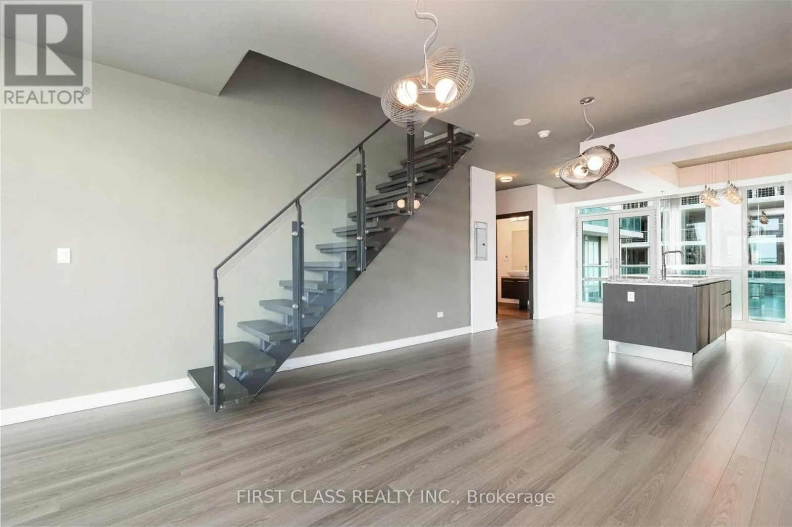 George St/Dundas St Rarely Offered Sun-Filled Loft-Style Residence Offering Approximately 1,360 Sq Ft Of Thoughtfully Designed Living Space In The Heart Of Downtown Toronto. Just A Short Walk To The Financial District, Eaton Centre, Massey Hall, Theatres, Restaurants, Dundas Square, TTC/Subway, And Toronto Metropolitan University.This Unique Two-Level Suite Features Dramatic Double-Height Ceilings, Floor-To-Ceiling Windows, And A Striking Floating Glass Staircase That Anchors The Space. Open-Concept Living And Dining Areas Boasting Top-To-Bottom Upgrades Create An Ideal Layout For Both Everyday Living And Entertaining.The Modern Kitchen Is Equipped With Granite Countertops, A Large Centre Island, Built-In Appliances, Sleek Cabinetry, And Ample Storage. Spacious Bedrooms Offer Privacy And Comfort, Complemented By 2.5 Well-Appointed Bathrooms With Granite Counters And Modern Fixtures.Enjoy Outdoor Space With A North-West Facing Balcony Plus An East-Facing Juliette Balcony, Offering City And Neighbourhood Views With Abundant Natural Light Throughout The Day! (id:27476)