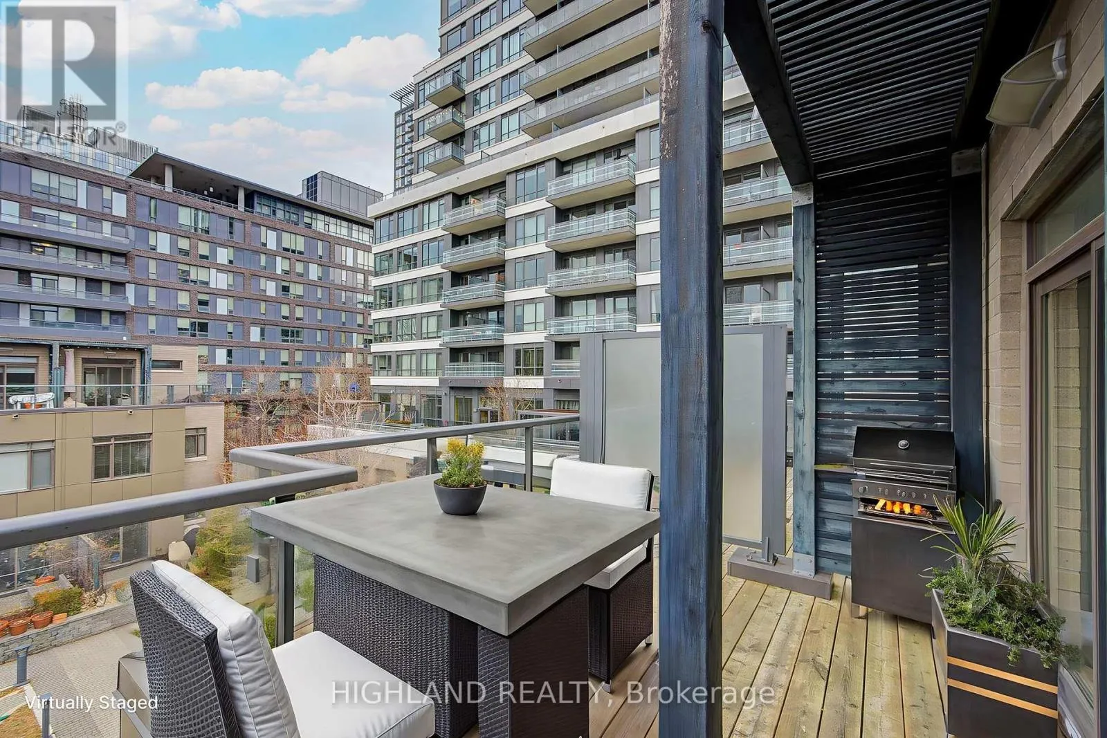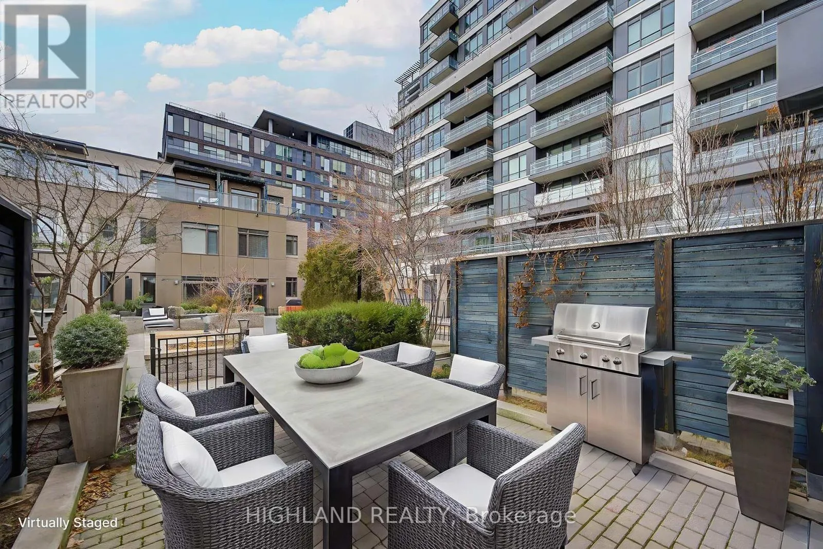 Cross Streets: Dundas St E & Parliament St. ** Directions: St David St & Sackville St. Welcome to this stunning townhome built by Daniel, featuring 3-bedroom, 2.5-bathroom, a media area, 1 parking & 1 locker, located in the prestigious Regent Park community. This home offers approx. 1,285 sq. ft. of bright, modern living space with high ceilings, abundant natural light, and quality laminate flooring throughout. Upgraded open-concept kitchen features custom cabinetry, quartz countertops, backsplash, a large centre island, and the media area could be a breakfast area/home office area with a direct walk-out to the private patio. Second floor offers two spacious bedrooms with large windows and closets, sharing a 4-piece bathroom. Third-floor primary bedroom includes a 4-pc ensuite and walk-out to a south-facing private terrace. Enjoy premium amenities: fitness & yoga studios, media lounge, party room, outdoor terrace, and landscaped courtyard. Minutes to Eaton shopping center, downtown, parks, restaurants, and quick access to the DVP Hwy. (id:27476)