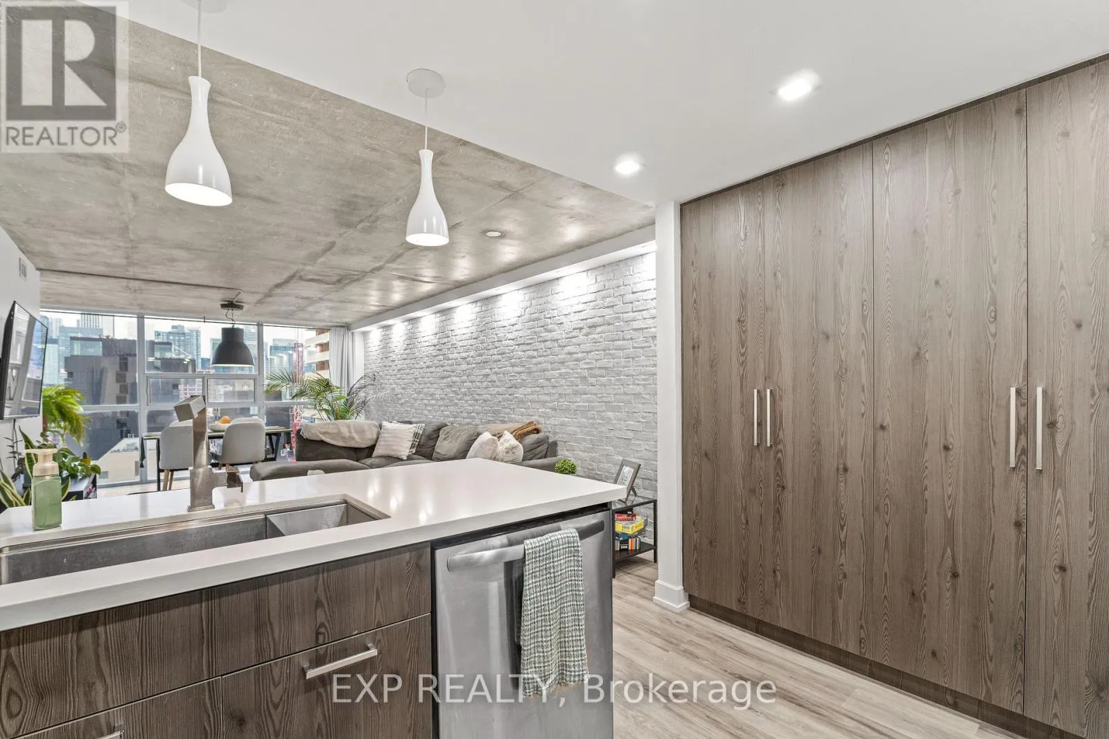 King St W/Bathurst St Spacious 1-bedroom plus den residence featuring fresh renovations, exposed brick wall, and exposed concrete ceilings for a modern, loft-inspired feel. Recently renovated bathroom and an energy-efficient heat pump (under 3 years old) add comfort and peace of mind. Floor-to-ceiling windows provide excellent natural light, complemented by generous in-unit storage. Located in the heart of vibrant King West, within the highly regarded Summit building community, offering an unmatched lifestyle and amenities including indoor and outdoor pools, fully equipped gym, private movie theatre and cinema room, in house library, boardroom, seminar room, study area, the Spa and four squash courts. A truly rare and unique feature is the expansive green outdoor space-complete with a four BBQ areas, and landscaped grounds-an oasis rarely found in downtown Toronto. Just steps to hundreds of restaurants, bars, theatres, streetcar access, and the future Ontario Line station. An exceptional opportunity to enjoy urban living with resort-style amenities in one of Toronto's most sought-after neighbourhoods. There are 2 washers and Dryers on each floor, which is coin operated, could save tons on Hydro bill. Maintenance fee includes internet and if the buyers don't need a parking they could opt out and save on the maintenance fee. (id:27476)