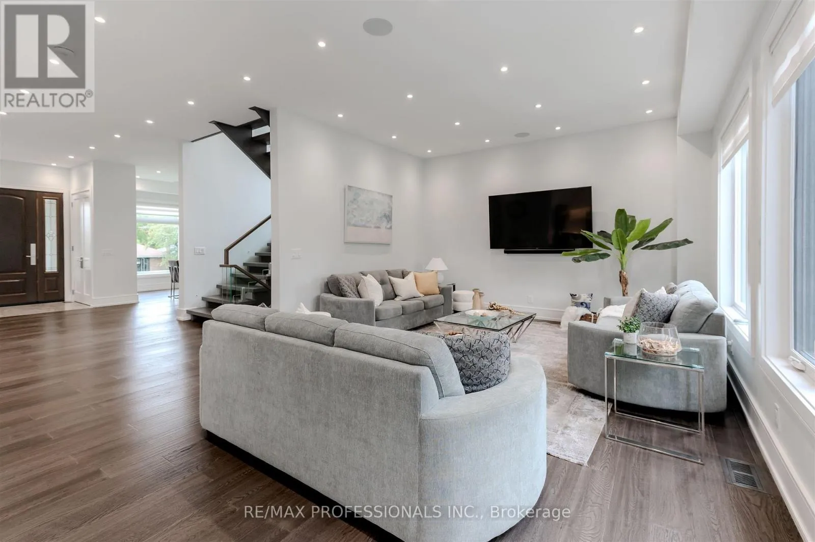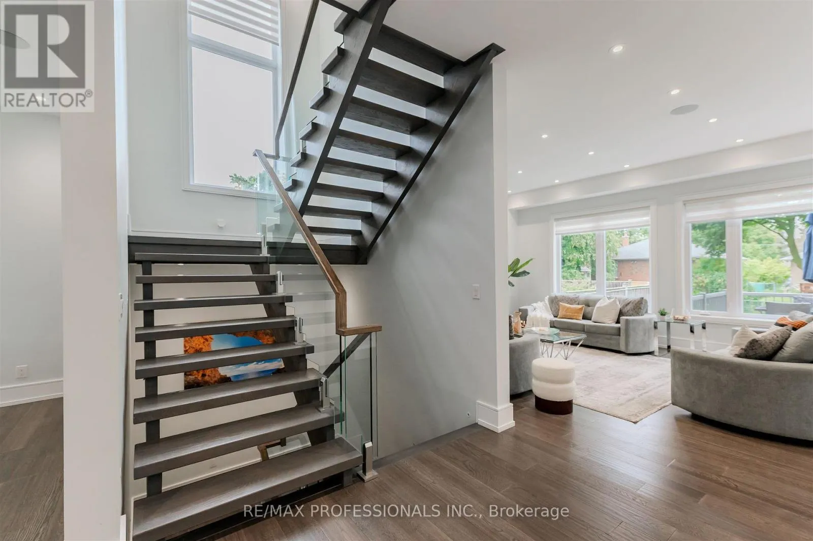 Kipling Ave/ Rathburn Rd Welcome home to the perfect blend of luxury and comfort. This stunning 4+2 bedroom, 6-bath custom-built residence combines timeless architecture and colors with modern design, making it truly feel like home! A grand foyer sets the tone for the rest of this elegant property, featuring beautiful hardwood floors throughout. The kitchen is a chefs dream with sleek stainless steel appliances, stunning quartz countertops with a waterfall design, and direct access to the walk-out deck perfect for cooking, entertaining, or enjoying the outdoors. Start your day with morning coffee on the charming front porch, and retreat to the luxurious primary suite featuring a spa-like 5-piece ensuite and a spacious walk-in closet. All four bedrooms upstairs offer their own private ensuite baths, ensuring comfort and privacy for every family member. The additional two bedrooms provide flexibility for guests, home offices, or hobbies. (id:27476)