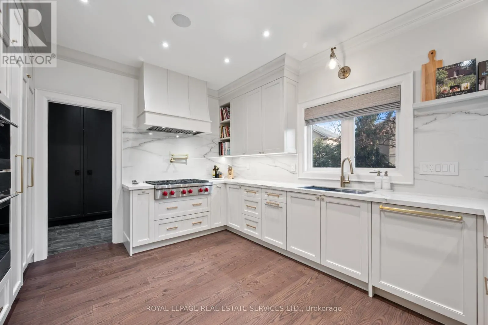 Government/The Kingsway An Exceptional Family Home on One of The Kingsway's Most Coveted Streets! Tucked away on prestigious Strath Avenue, this beautifully updated custom home offers the perfect balance of elegance, warmth, and everyday functionality. From the moment you step inside, the grand foyer with detailed wainscotting sets the tone for a home that has been thoughtfully curated and meticulously cared for. The main floor unfolds seamlessly, offering formal living and dining rooms, a private home office, and a show-stopping kitchen that truly anchors the home. The chef's kitchen features Porcelain countertops, premium Sub-Zero, Wolf, and Miele appliances, multiple pot fillers (including a dedicated pet station), and a generous breakfast bar - ideal for busy mornings and effortless entertaining. A custom mudroom with exceptional storage, direct garage access, and backyard walk-out is a game-changer for family living, while a stylish powder room completes the main level. Upstairs, 4 spacious bedrooms provide comfort and privacy for the entire family. The primary suite is a true retreat, featuring a walk-in closet, spa-inspired 6pc ensuite with double showers, and a charming Juliette balcony. A second bedroom enjoys its own ensuite, while the remaining two share a beautifully appointed bath. The fully finished lower level is designed for flexibility and fun, offering a large recreation room, gym/fifth bedroom, a stunning laundry room, and an impressive den with wet bar - perfect for movie nights, a teen hangout, or hosting friends. A walk-up adds direct access to the backyard. Outside, the private yard with patio and turf offers space to relax, entertain, and play, all with minimal maintenance. Steps to Lambton-Kingsway School and within walking distance to Bloor Street's shops, cafés, restaurants, and the subway - this is not just a home, it's a lifestyle. A rare opportunity to live on one of The Kingsway's most desirable streets! (id:27476)
