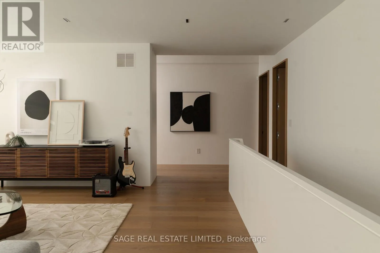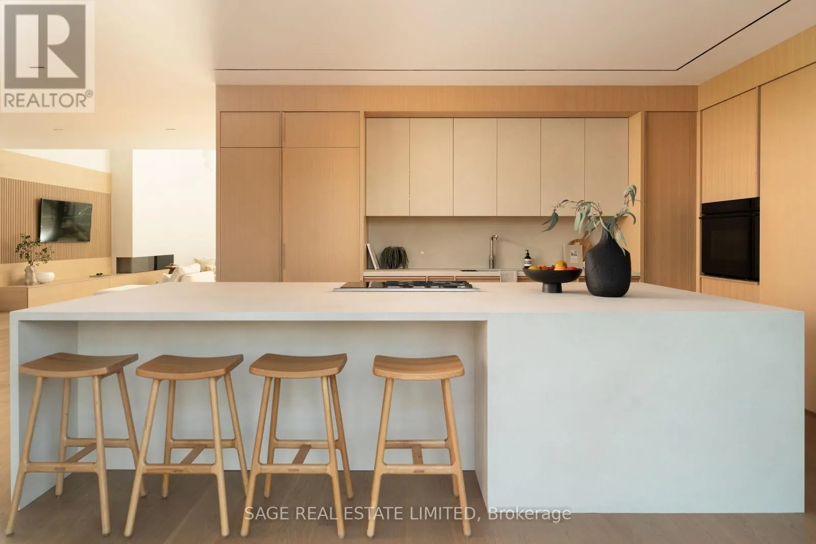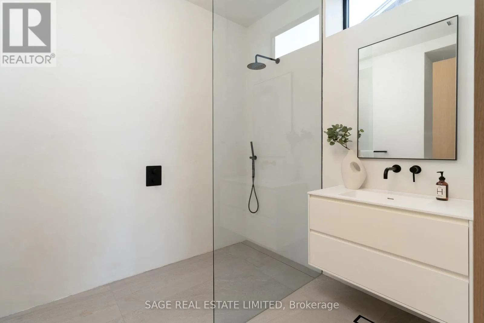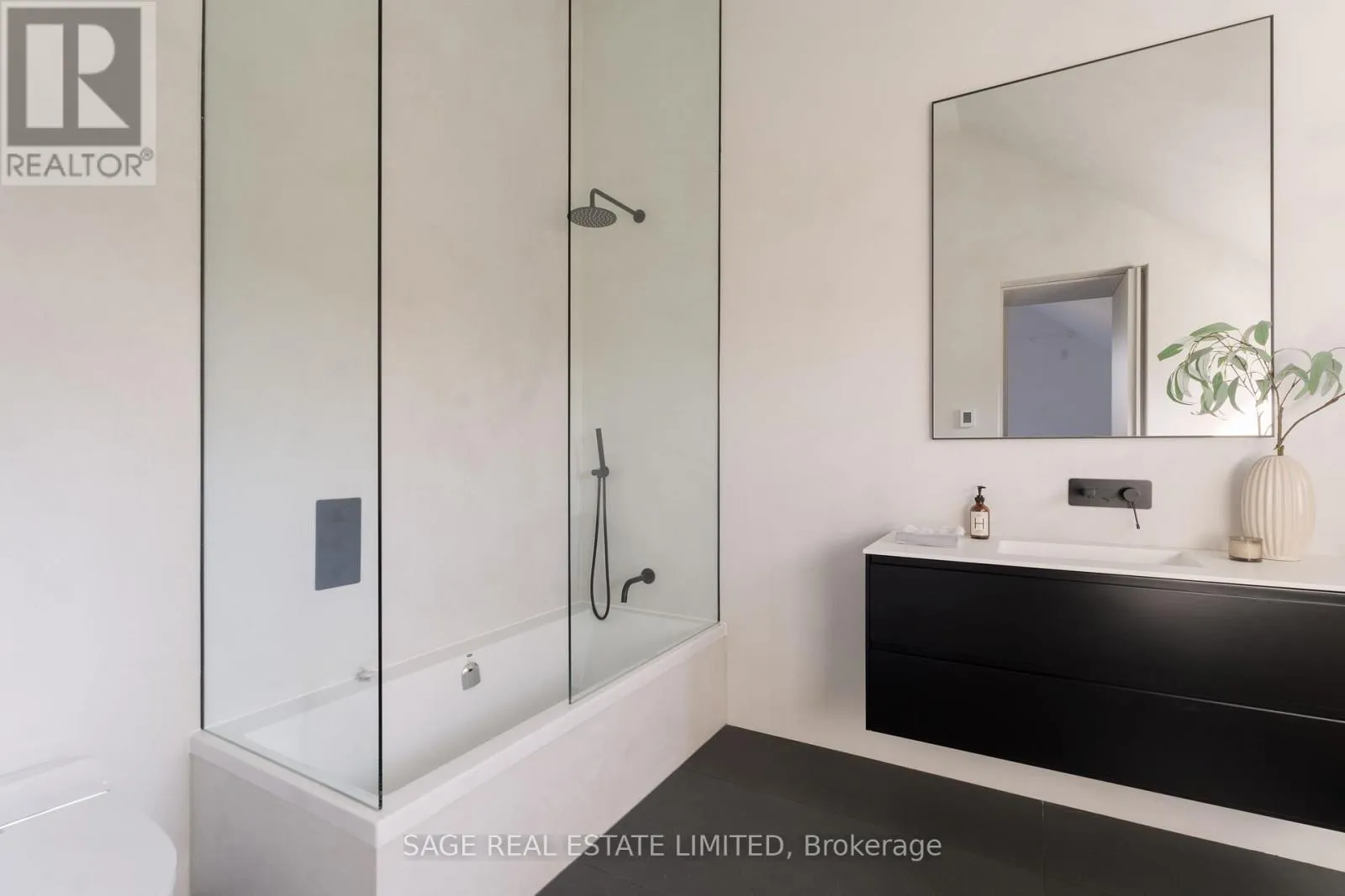 Princess Margaret & Islington UNDESERVINGLY OVERLOOKED - A gentle fusion of Scandinavian and Japanese design, The Emperor sits proudly in Toronto's charming Princess Anne Manor neighbourhood. This detached custom build is an architectural wonder of the west end with smooth finishes, oak floors and panelling, plunging sight lines and cascading sunlight. Hidden doors reveal themselves at your fingertips to unassuming ensuite bathrooms dressed in creams and stone or covert closets with abundant storage - its invisible lines maintain minimalism at the forefront of its demure design. Dramatic floor-to-ceiling windows rise 21 feet high in the main living, wide open to a generously sized dining room and bright kitchen with an exceptional breakfast island and concealed coffee nook. Fluting and custom millwork anchors the front entrance and frames the tv, complimenting the microcement finished gas fireplace. A constellation of soft lights quietly illuminates the home, a spectacle when the sun goes down, while its tobacco coloured facade stretches across the 76 foot wide lot and leads to an inground saltwater pool at the rear. Beneath century old canopy trees, around slow swooping roads, this one-of-a-kind modern build is two minutes from St George's Golf & Country Club & only ten minutes to Pearson Airport. Over 5000 total square feet, your choice of two primary bedrooms and multiple flex spaces on the top floor with the option to convert them to extra bedrooms - executives, creatives, gamers, podcasters, families and fitness enthusiasts will find limitless potential and a whole new meaning to going home at 38 Ravensbourne. (id:27476)