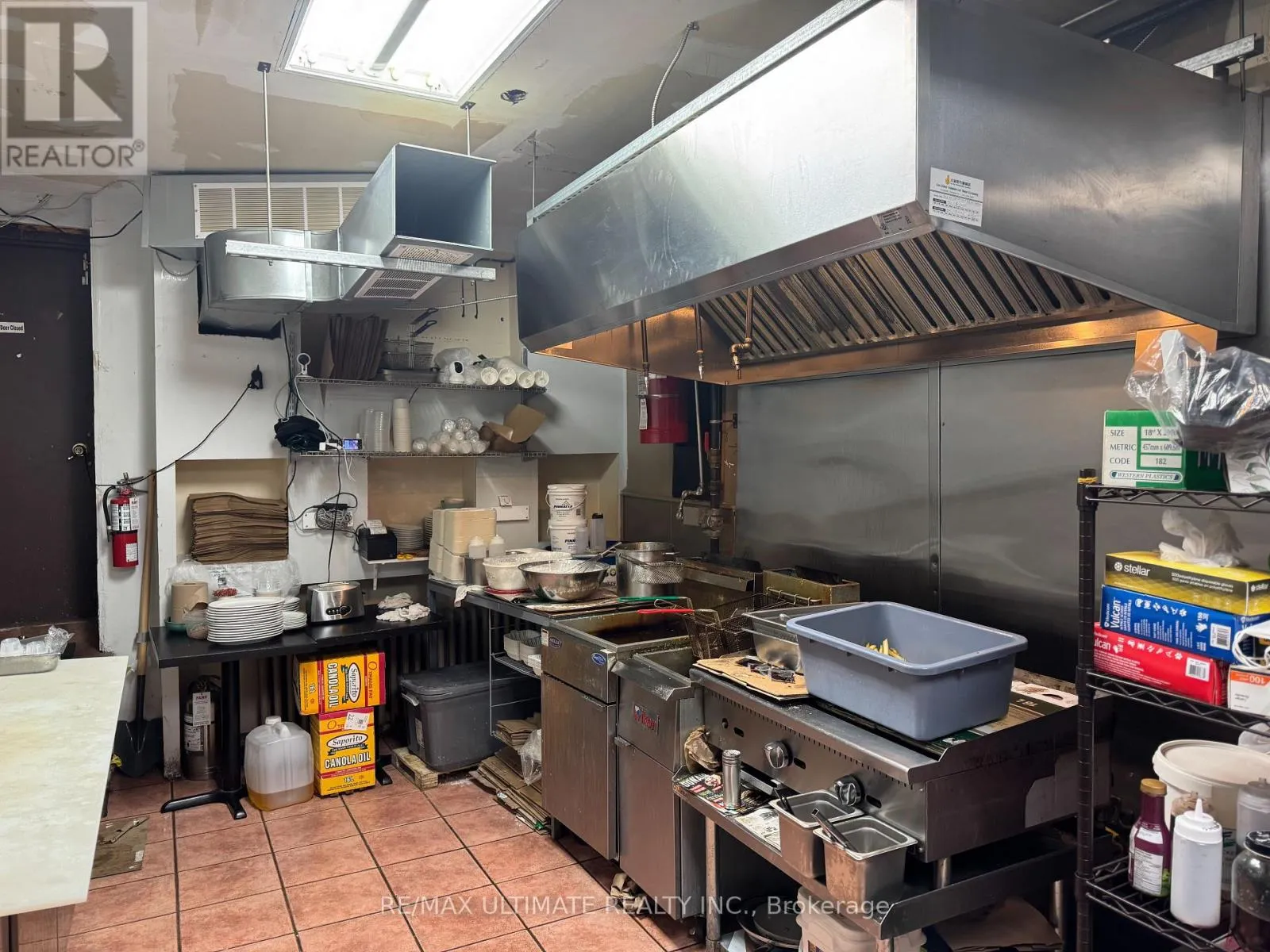Cross Streets: Lansdowne Ave. ** Directions: north side of St Clair Ave W, just east of Lansdowne Ave. BUSTLING CORSO ITALIA!! Currently operating as a fish & chips takeout with seating could also be converted to small dine in restaurant as well. Approx. 1,500sqft of well built restaurant space with full commercial kitchen. Good visibility, one building off the corner. Plenty of walking traffic and parking lots close by for clients driving. Ready for your entrepreneurial spirit and creativity to take advantage of this high traffic Toronto west location. (id:27476)