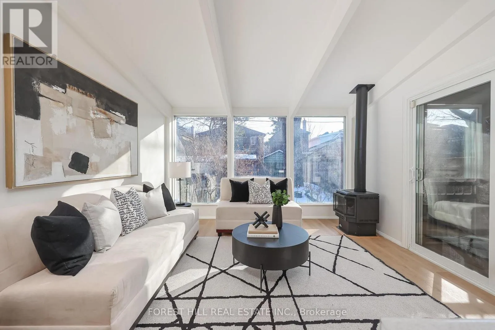 Yonge/Lawrence Welcome to 33 Glengarry Avenue, nestled in the exceptional enclave of Lawrence Park North.Located on a peaceful street with no direct traffic from Avenue Road or Yonge Street. Walk to excellent schools (John Wanless JS, Blessed Sacrament CS, Lawrence Park CI), TTC Subway, Woburn Park, Pusateri's, City Market, Metro and all the restaurants and shops that Yonge Street has to offer. This sun-filled, 3 bedroom move-in ready semi boasts an expansive open concept living and dining space with a large solarium window. The bright kitchen opens to a gorgeous family room featuring slanted ceiling with beams and great height, a cozy gas fireplace, a wall of glass overlooking the south facing landscaped rear garden and a walk out to the rear garden through a charming screened in porch. The second level features three roomy bedrooms, a storage/linen cabinet and a 3 piece bathroom with large walk-in shower. Upgraded beautifully with new floors throughout, fresh paint and modern lighting. The lower level features a large open space with tool bench, additional fridge, freezers, laundry with double sink and a two piece bathroom. The lower is ready for your finishing touches or use as is for recreation or storage. The covered front porch is perfect for morning coffee and the rear garden will delight with it's foliage, flowers and garden shed. This dreamy home comes complete with a rare two car tandem driveway. (id:27476)