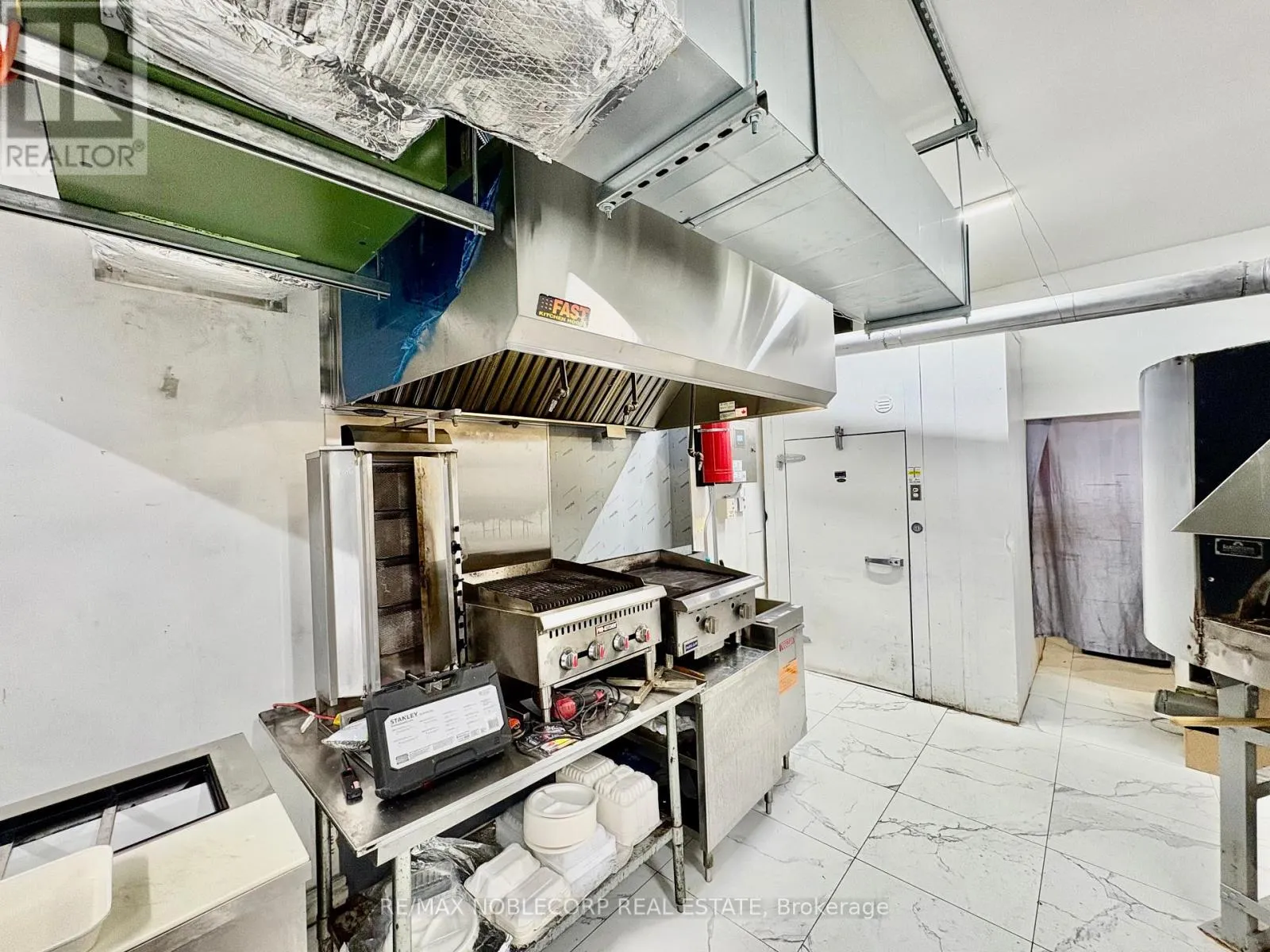 Lake Shore Blvd & Islington Ave Prime Butcher Shop Opportunity - Well-established butcher shop located in a high-traffic Lakeshore corridor near Islington Avenue. The business features a functional retail layout, a walk-in freezer, Hood vent, Pizza over, Shawarma Machines, cold storage Fridges, prep areas, and a loyal local clientele. Excellent visibility with strong pedestrian and vehicle traffic, surrounded by dense residential neighborhoods and complementary businesses. Ideal for an owner-operator or expansion of an existing food concept. Hot table and other restaurant uses available. Turnkey opportunity in a sought-after West Toronto location. Gross Rent $3,980.63 per month incld TMI/HST, w/ 5+5 lease term. * TAXES ARE N/A* (id:27476)