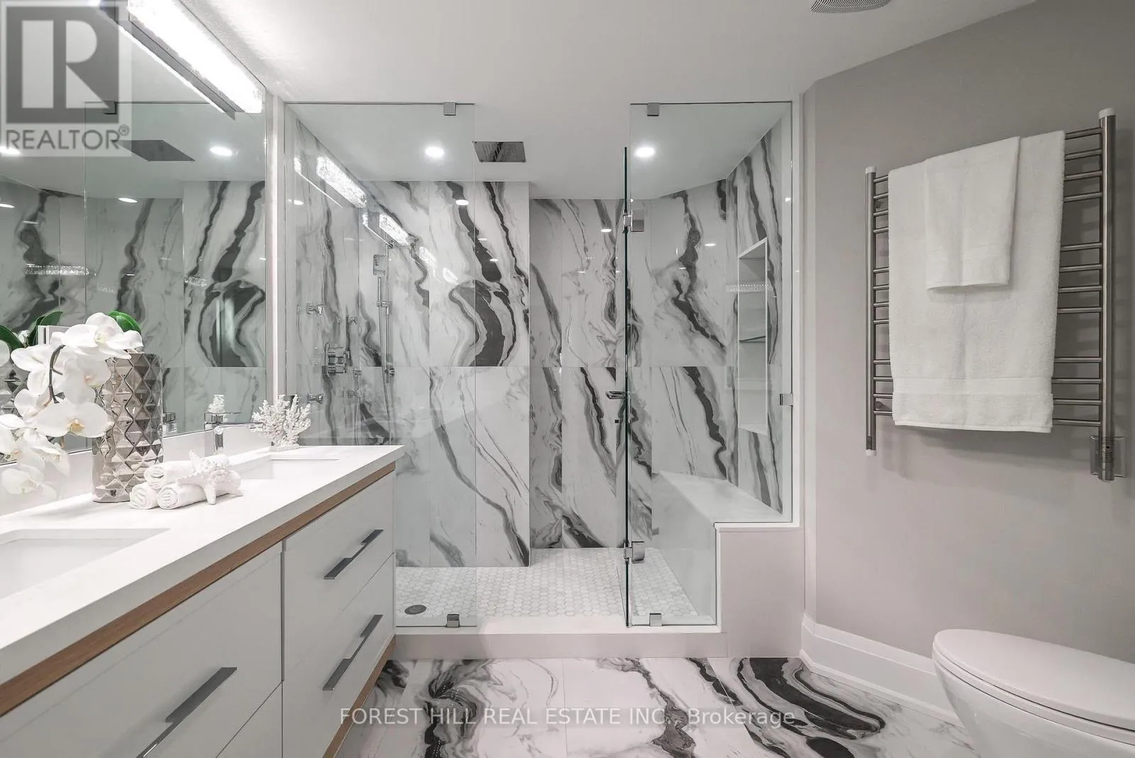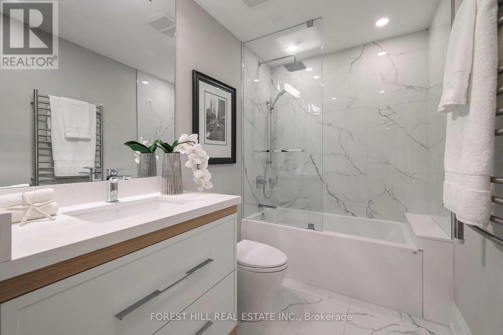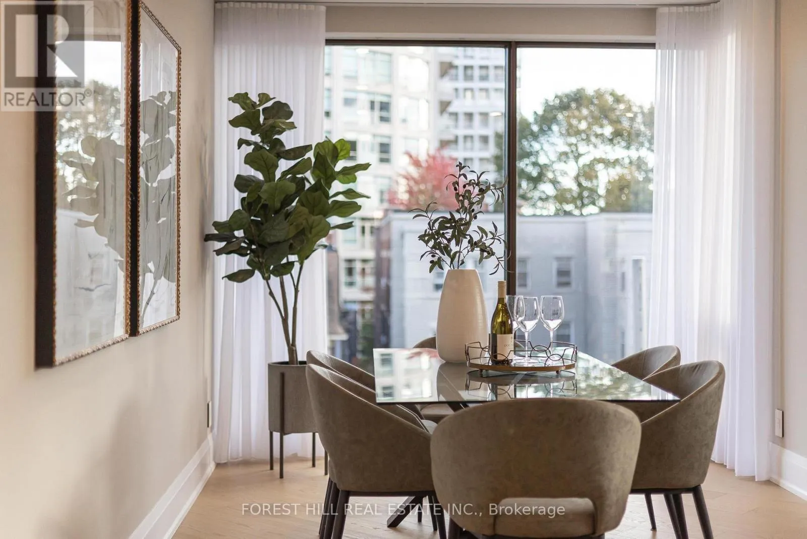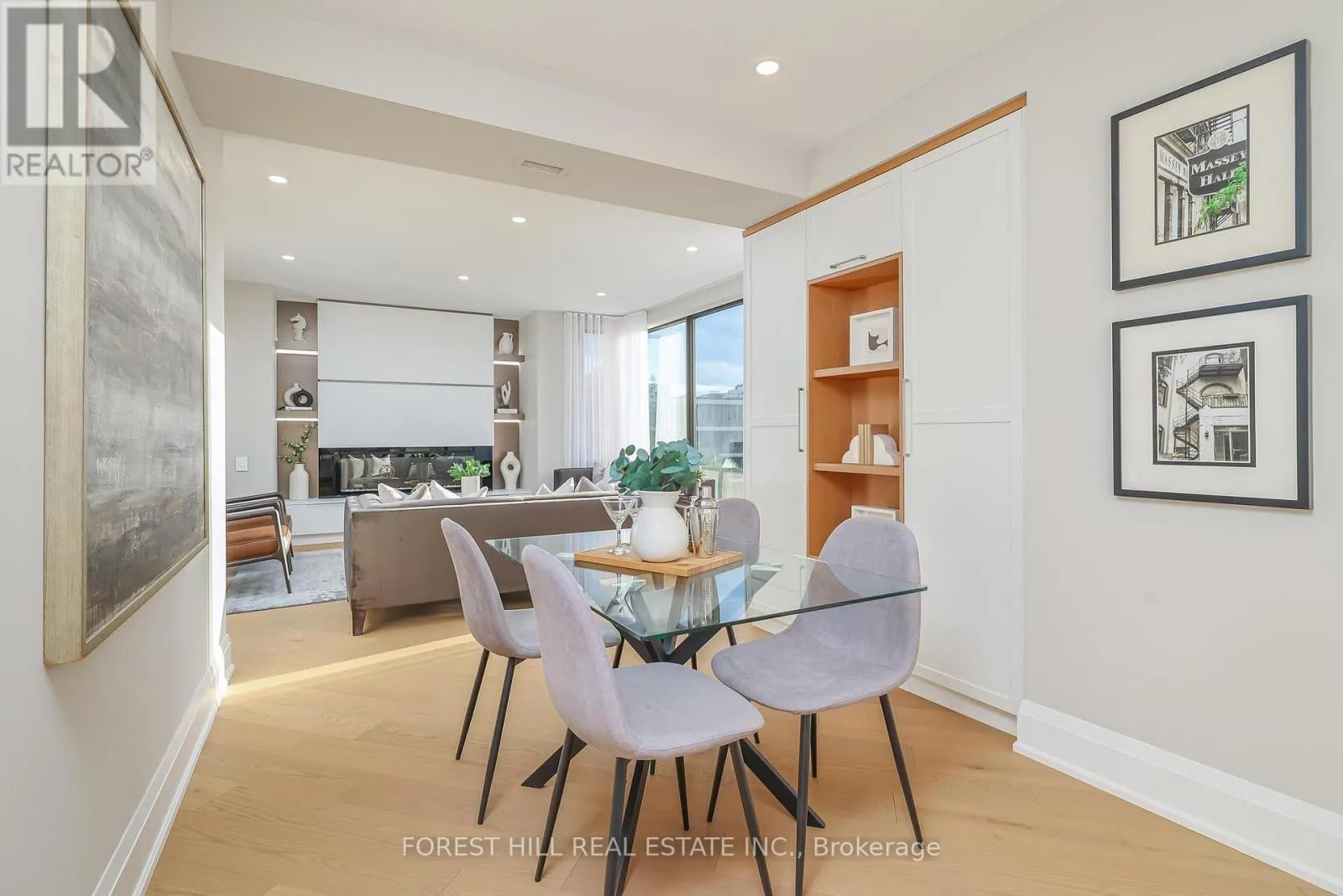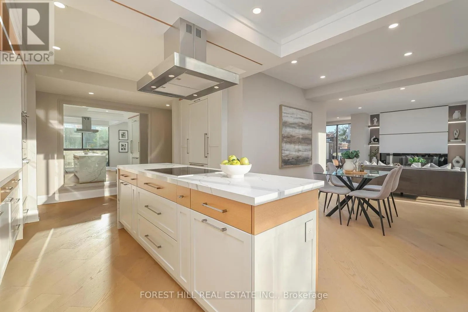 Spadina Rd / St. Clair Ave Nestled in a boutique residence of only 20 suites in prestigious Forest Hill Village in this meticulously renovated 1,750 SF corner suite. This turnkey residence showcases 2 spacious bedrooms & 2 bathrooms, boasting bespoke finishes that elevate everyday living. Bathed in natural light, the suite features floor-to-ceiling glass creating a bright and airy atmosphere. The sumptuous light wood floors add a sophisticated touch to every room. A striking fireplace with custom built-ins & integrated lighting, serves as the anchor of the main living space. The thoughtfully designed split floor plan offers a seamless flow ideal for entertaining. The chef's kitchen is equipped with high-end Miele appliances, a stunning quartz center island with overhead hood fan & ample cabinetry. Breathtaking views of the surrounding tree canopy. Retreat to the gracious primary suite, featuring custom built-in cabinetry & a spa-like ensuite, complete with double sinks, a spacious walk-in shower with bench, heated floors & heated towel rack & exquisite finishes that exude opulence. The generous second bedroom is the epitome of comfort & style, while the additional bathroom boasts a luxurious soaker tub, heated floors & towel rack. This impressive suite also includes a full laundry room with sink and extra storage. Completing the package are 2 parking spaces & large locker. Situated just steps away from The Village, Loblaws, boutique shops & fine dining options, as well as Winston Churchill Park & scenic ravines. Public transit is conveniently around the corner. This exceptional residence harmonizes exquisite design with an unbeatable location, setting the stage for an enviable lifestyle in one of Toronto's most sought-after neighbourhoods. (id:27476)