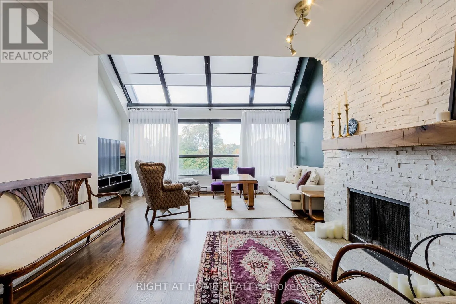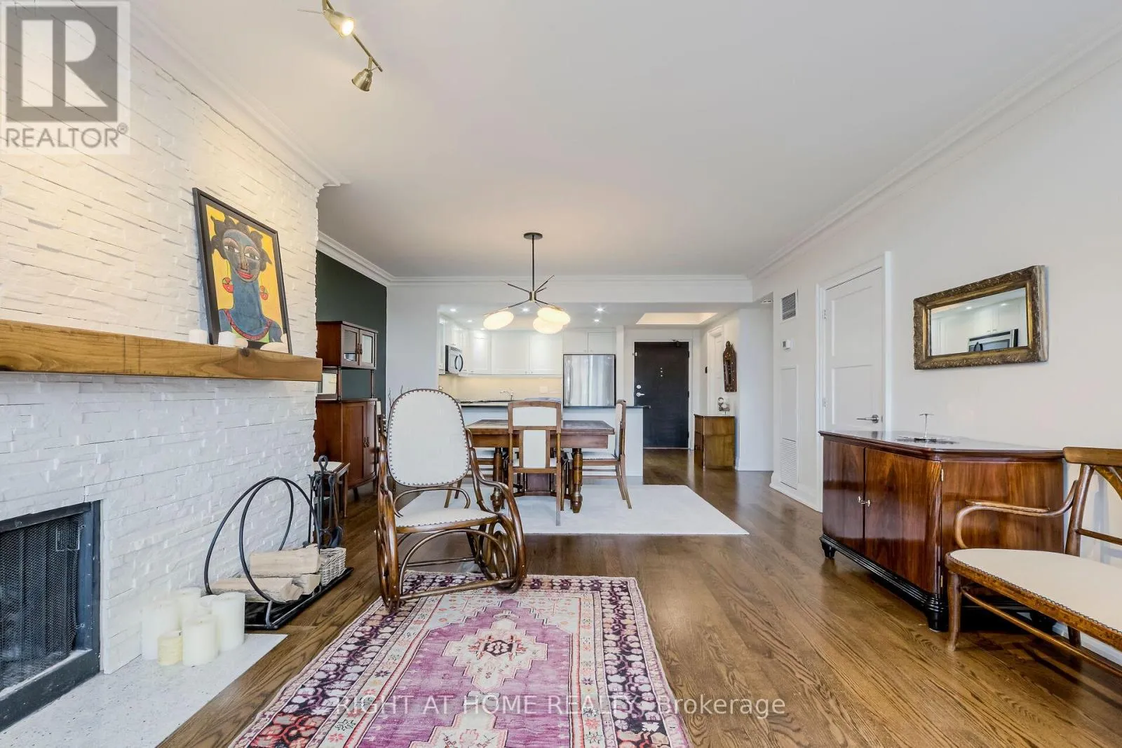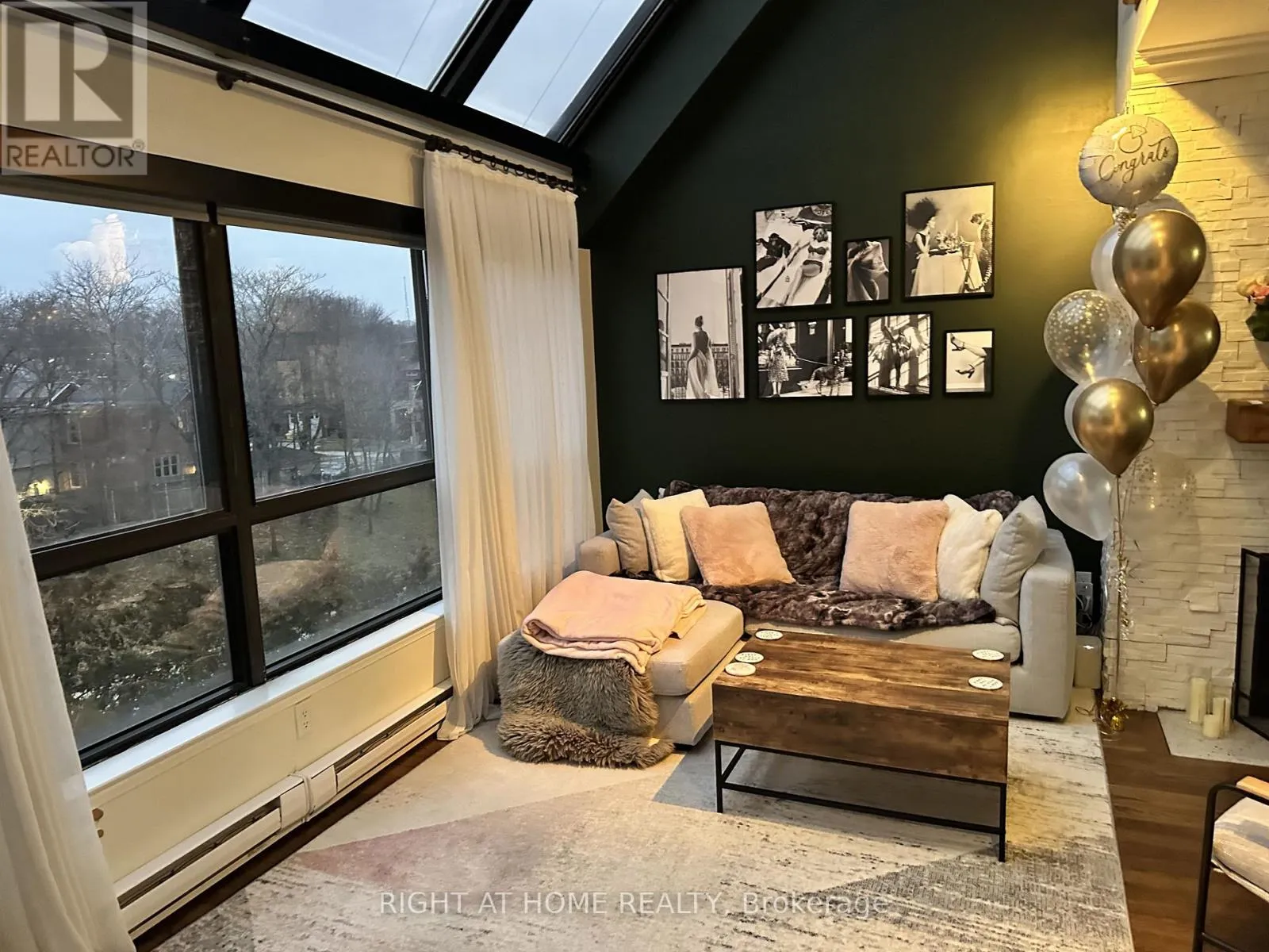 Cross Streets: Yonge & Davisville. ** Directions: Yonge and Davisville. Rarely Offered Davisville 2 Storey Loft Style Penthouse.Stunning Extensive Renovation In 3 Yrs. Completely Redesigned To An Open Concept Layout,Kitchen W/ Granite Counters Coffered Ceilings.Living Dining/Room Features Floor To Ceiling Windows Overlooking Unobstructed West Green View With Great Sunset Every Day.31/4 Inch Oak Hardwood Flrs Through Out, Custom Built-In Cabinetry Featuring A One Of A Kind Real Wood Burning Fire Place That Gives A Cottage Feelings. Low Maint Fee Over 1200 Sq Feet Unit. Neighbours Are Excellent. This boutique, low-rise, wheelchair-accessible building features a terrace with a BBQ on the ground floor. (id:27476)
