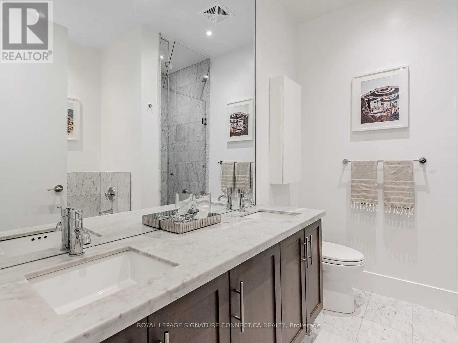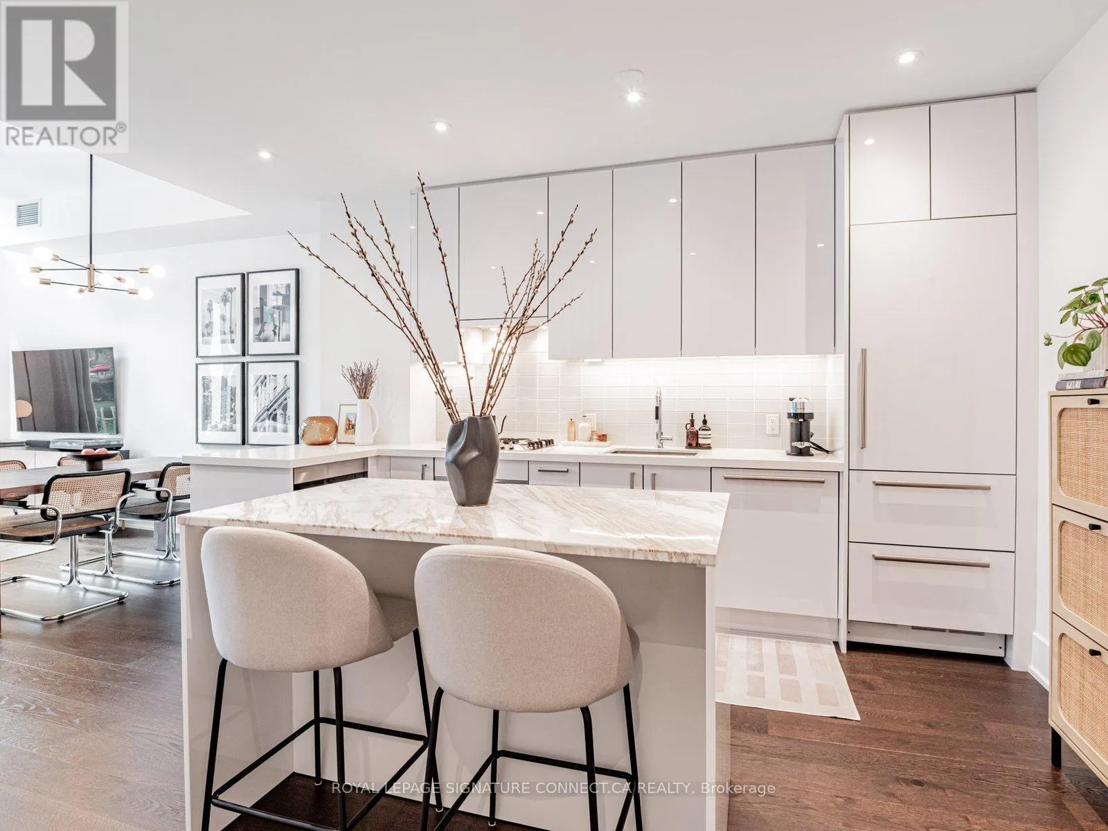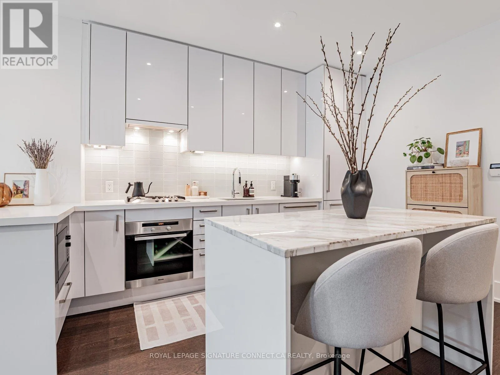 Queens Quay & Yonge St. Looking to live at Toronto's most coveted waterfront residence? Look no further than TH132 at Pier 27! This 1+Den, two bathroom townhouse features a thoughtful layout with a den that can effortlessly be used as a second bedroom, providing a flexible space that adapts to your needs. Love to host? This main floor is built for it. The expansive kitchen flows into a bright, open living area, creating the perfect setting for dinner parties or cozy, quiet nights in. The kitchen features premium Miele appliances and a Sub Zero fridge, paired with a large, custom built, white marble island that makes cooking a dream. In the warmer months, enjoy grilling on your private terrace that is equipped with a dedicated gas line. Two storeys of floor to ceiling windows overlooking green space in this quaint, private courtyard, provides a sense of tranquility and balance to the bustle of the city that awaits. There have been over $40,000 of recent upgrades done including lighting with pot lights throughout, custom built in closet units in both the primary bedroom and den, and automatic dual roller window coverings to name a few. See attached feature sheet for full list! Enter directly from street level into soaring 20 ft. ceilings that span the full height of the unit and enjoy 10ft ceilings in both the living room and the primary suite on the second floor. Step outside your unit, and into the best of luxury amenities. 39 Queens Quay boasts both an indoor and outdoor pool, fitness room with sauna and steam room, theatre room, lounge & party rooms, visitor parking, and guest suites. The location delivers unbeatable convenience. You are just minutes from Union Station and the Financial District. Never walk far for your groceries again with Loblaws, Farm Boy, and the flagship LCBO right across the street. Go for dinner at Simona along the waterfront or grab your morning coffee from Dark Horse Espresso Bar, both a short walk away. Experience waterfront living at it's finest. (id:27476)