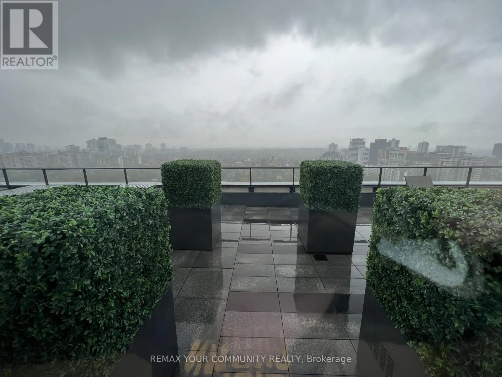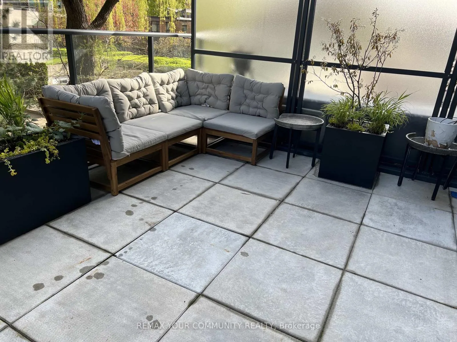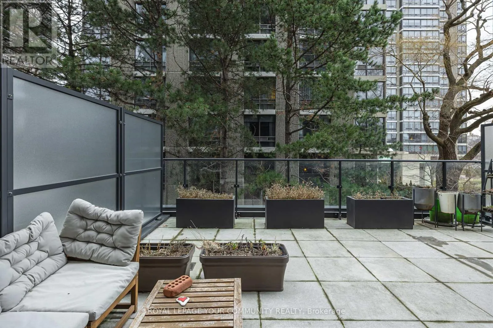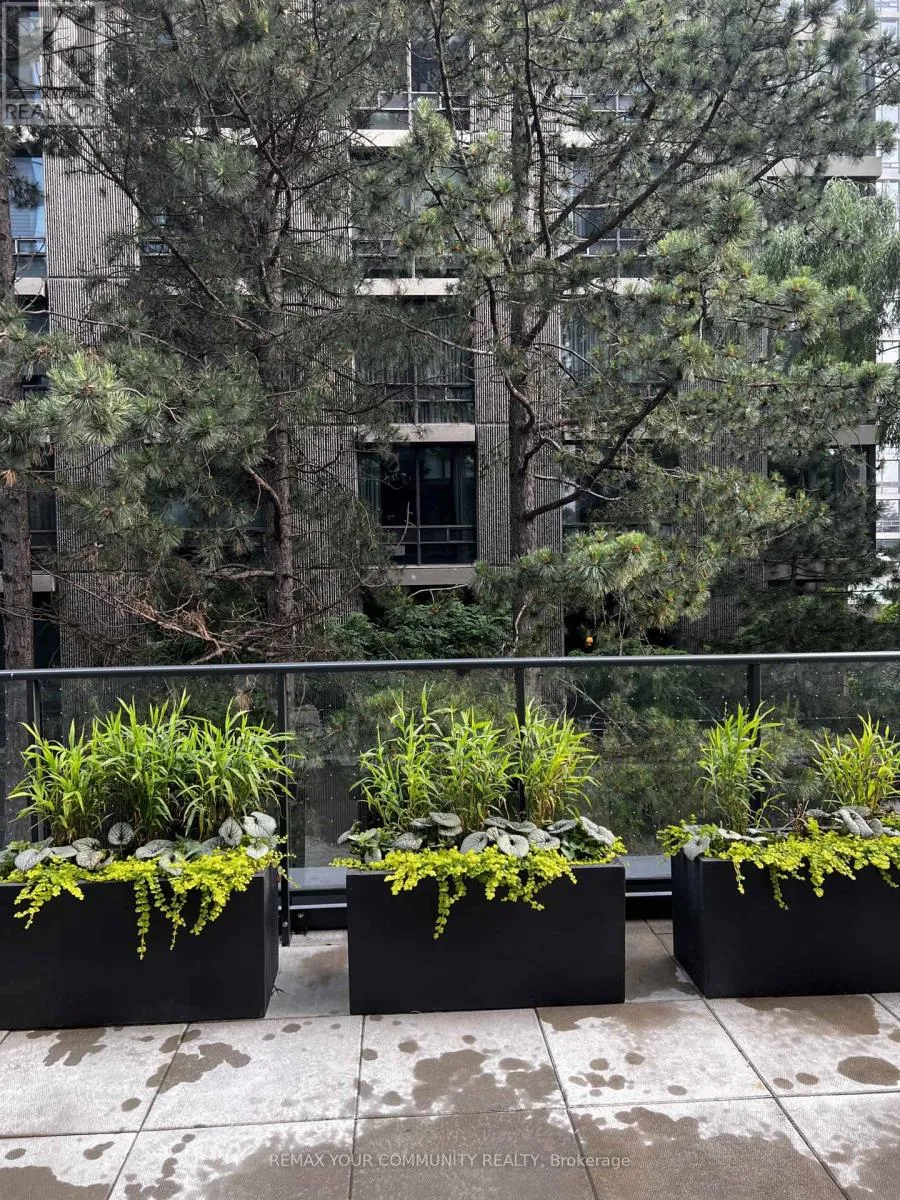Cross Streets: Avenue Road/ St Clair Ave West. ** Directions: Avenue Road/St Clair Ave West. Rarely offered 1 + den, 2 bath suite at 609 Avenue Rd. with an exceptional over 200 sq.ft professionally landscaped private terrace with hose connection, offering true indoor outdoor living. Condo offers 11-ft ceilings, throughout adding volume and light rarely found in midtown 1+1 layouts. Den has sliding doors making a separate room for more privacy. Quiet suite faces away from Avenue Road with well insulated windows for a calm living environment. Includes corner parking (easy access) and locker. Steps to Cedarvale Ravine and the Mount Pleasant Cemetery Arboretum, plus Balfour Park and Churchill Park with skyline views. Rooftop terrace with panoramic city skyline views. Walk to St. Clair/Yonge, Davisville/Yonge, St. Clair/Vaughan, Yonge/Eglinton, Summerhill, and South Forest Hill Village. Outstanding recreation nearby including tennis courts, hockey rinks, and swimming pools at Upper Canada College, Brown Junior Public School, and Ramsden Park. Excellent transit access (Yonge & University Subway lines, St. Clair Streetcar), 2 bike rooms, and 4 nearby Bike Share Stations. Building Amenities include rooftop, gym, party room, media room, dog wash. Pet-friendly, non-smoking building. Close to major grocery options including Farm Boy and Loblaws with free parking. (id:27476)
