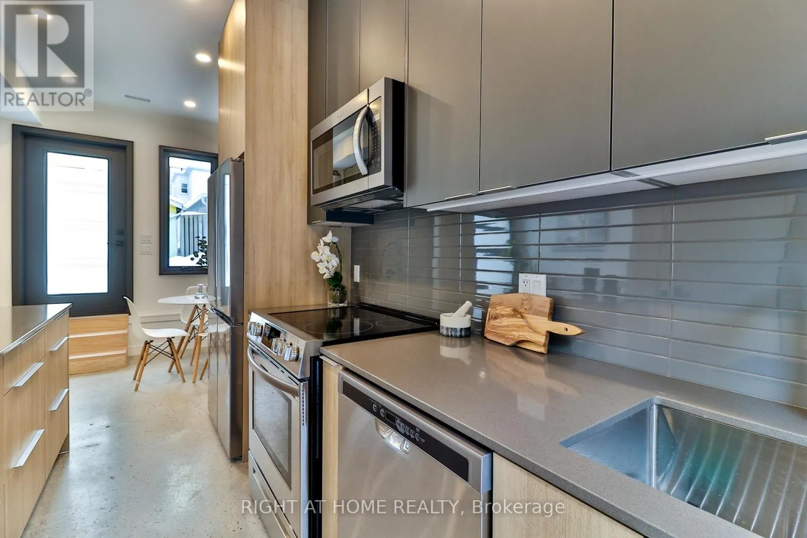 Cross Streets: Woodbine S. Of Danforth. ** Directions: Danforth/Coxwell/Woodbine. Rare opportunity on the Danforth! Completely rebuilt detached home featuring 3+1 bedrooms and 4 bathrooms, plus a two-bedroom + den laneway house. This property offers a perfect blend of modern design and warm interior finishes, with high-end craftsmanship throughout. Impeccable attention to detail is evident in the custom millwork, flooring, and quartz countertops. Floor-to-ceiling windows flood the home with natural light, creating a seamless flow between living spaces, while heated bathroom floors add everyday luxury. The lower level includes a self-contained legal 1-bedroom in-law/nanny or income suite with a separate entrance. The two-storey laneway house features 2 bedrooms plus a den, polished concrete radiant heated floors, and separate hydro and gas meters. The laneway living room can be converted back to parking if desired, and there is ample street parking available. The main house is currently tenanted at $4,926/month, the laneway house at $3,508/month, and the basement was previously rented at $2,100/month. Tenants pay their own gas and electricity. Ideally located within walking distance to Woodbine and Coxwell subway stations, as well as the restaurants and shops along the Danforth. This is an exceptional opportunity offering luxury urban living with the added benefit of meaningful rental income. (id:27476)