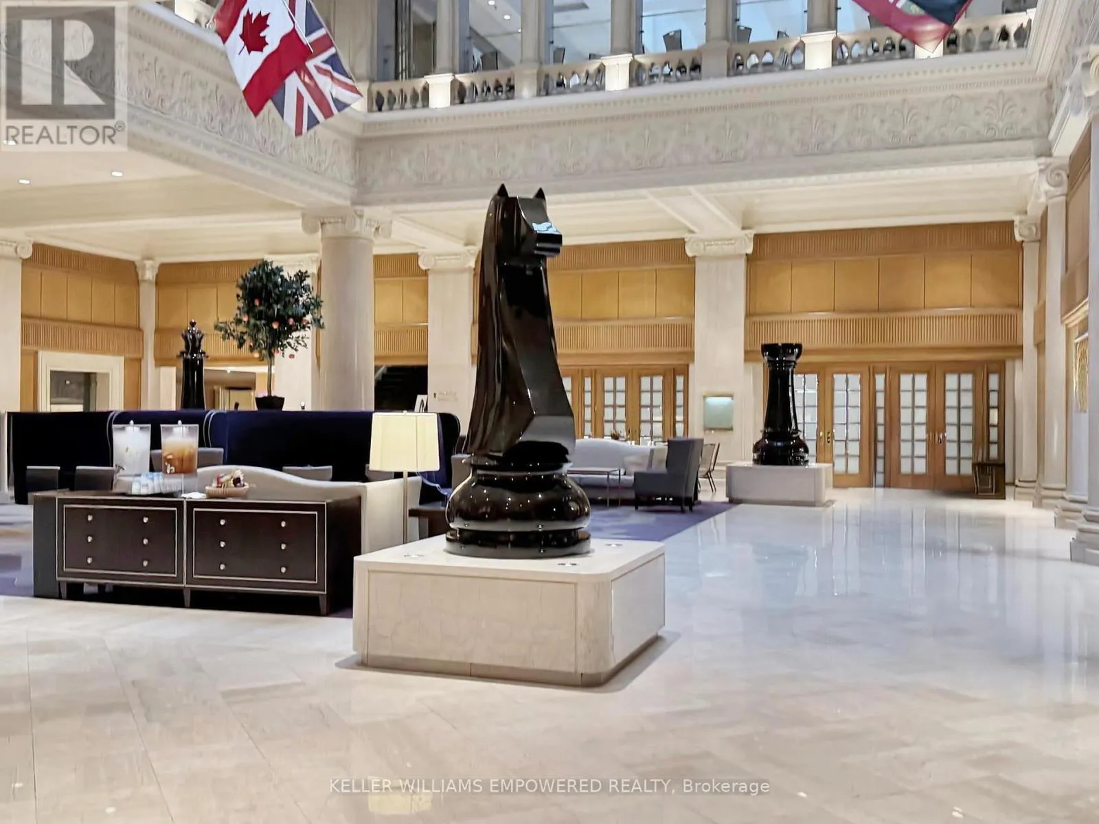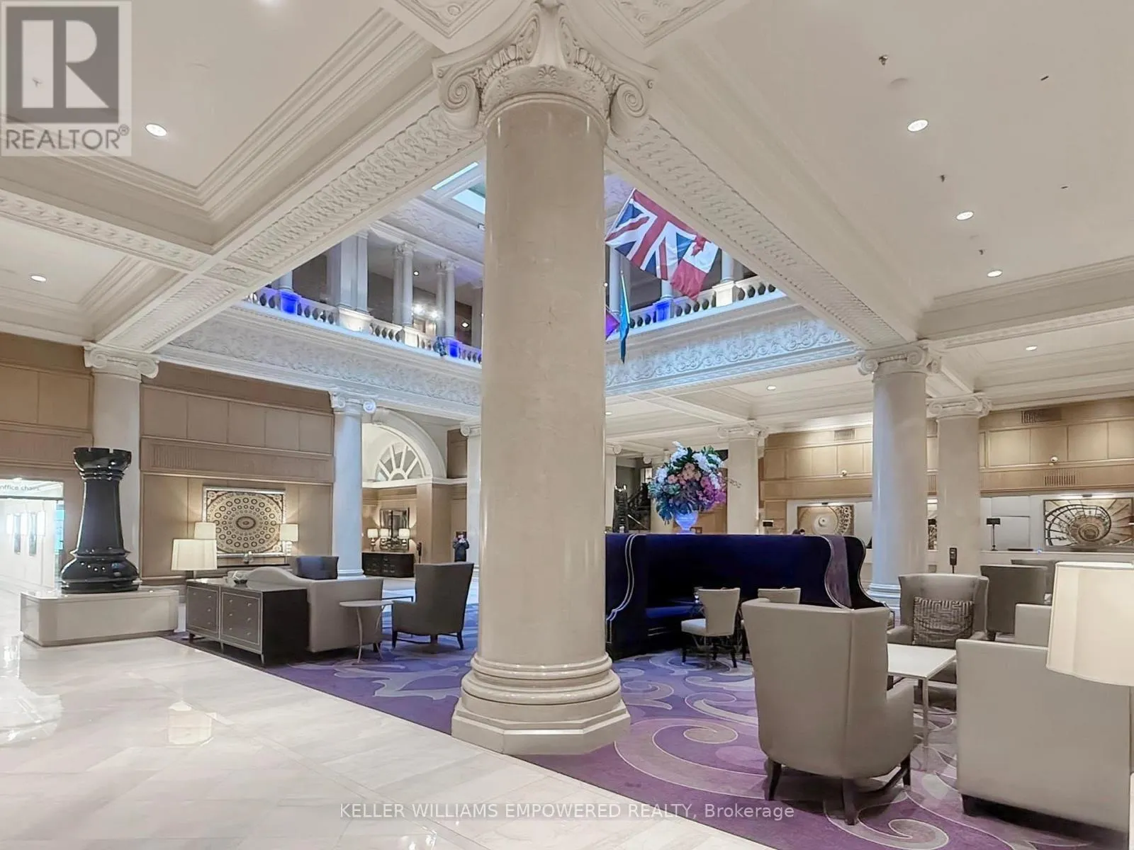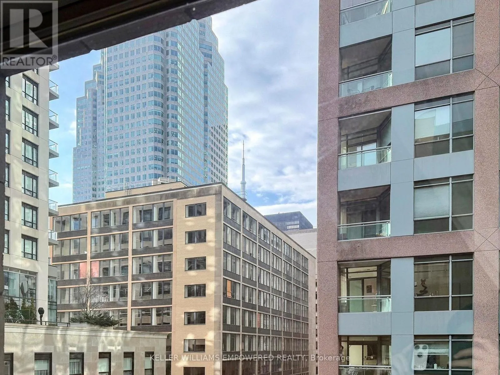Cross Streets: Yonge & King St E. ** Directions: East of Yonge St & South of King St E. Located within the iconic and historic Omni King Edward Hotel, this luxurious private residence offers exclusive access to hotel-quality, five-star amenities in one of downtown Toronto's most prestigious landmark buildings. Perfectly situated in the heart of the city, the location offers exceptional walkability within the Financial District - and is just steps away from St. Lawrence Market, the PATH, public transit, and endless dining, shopping, and entertainment destinations! This bright suite features southwest exposure, pot lights throughout (2024), fresh paint (2024), and soaring ceiling height just under 10 feet. The functional open-concept layout includes a kitchen with granite countertops, glass tile backsplash, floor-to-ceiling panelled cabinetry, high-end stainless steel appliances, and LED valance lighting (2024). Large windows in the living room and bedroom beautifully capture the city skyline and CN Tower views.The four-piece bathroom features a large glass-enclosed soaker tub/shower with waterfall shower-head, granite vanity with a brand new Kohler sink (2025), and updated lighting (2024). One large locker is included! Residents enjoy 24-hour concierge and security, fitness centre, business centre, Royal Club lounge access, meeting and lounge spaces, guest suites, spa access, and optional hotel room service through the Omni King Edward Hotel. (id:27476)