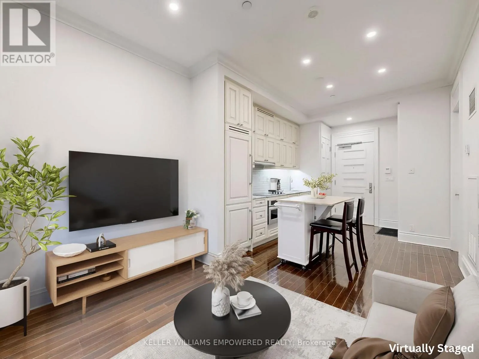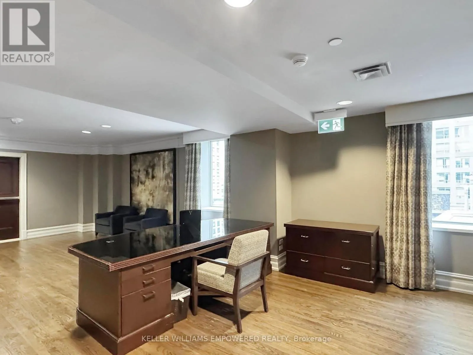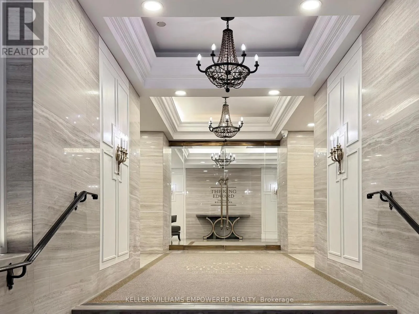 Cross Streets: Yonge & King St E. ** Directions: East of Yonge St & South of King St E. Located within the iconic and historic Omni King Edward Hotel, this luxurious private residence offers exclusive access to hotel-quality, five-star amenities in one of downtown Toronto's most prestigious landmark buildings. Perfectly situated in the heart of the city, the location offers exceptional walkability within the Financial District - and is just steps away from St. Lawrence Market, the PATH, public transit, and endless dining, shopping, and entertainment destinations! This bright suite features southwest exposure, pot lights throughout (2024), fresh paint (2024), and soaring ceiling height just under 10 feet. The functional open-concept layout includes a kitchen with granite countertops, glass tile backsplash, floor-to-ceiling panelled cabinetry, high-end stainless steel appliances, and LED valance lighting (2024). Large windows in the living room and bedroom beautifully capture the city skyline and CN Tower views.The four-piece bathroom features a large glass-enclosed soaker tub/shower with waterfall shower-head, granite vanity with a brand new Kohler sink (2025), and updated lighting (2024). One large locker is included! Residents enjoy 24-hour concierge and security, fitness centre, business centre, Royal Club lounge access, meeting and lounge spaces, guest suites, spa access, and optional hotel room service through the Omni King Edward Hotel. (id:27476)