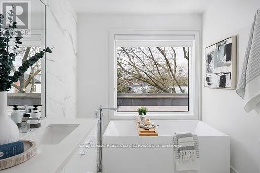 Cross Streets: Bathurst/Dundas. ** Directions: Follow your GPS. Welcome to your dream home in one of Toronto's most sought-after neighbourhoods: Trinity Bellwood's in vibrant Queen West. Perfectly positioned for convenience, this rare modern residence offers easy access to transit, trendy shopping, top-rated restaurants, and charming cafes, all just steps from your door. Offering nearly 3,200 square feet of thoughtfully designed living space, this home impresses with soaring ceilings and an open-concept main floor that is ideal for both everyday living and effortless entertaining. The stylish living room flows seamlessly into a large, eat-in kitchen and an expansive double-height family room that opens directly to the backyard perfect for indoor-outdoor gatherings. The second floor features two generously sized bedrooms, a small den area ideal for a home office or a study nook, and stylish finishes throughout. The third floor is dedicated to the luxurious primary retreat, complete with a spa-inspired ensuite, a walk-in closet, and a stunning rooftop terrace boasting panoramic views of Toronto's iconic skyline. With 3+1 bedrooms and 5 bathrooms, this home offers flexibility for families, guests, or your work-from-home needs. The oversized garage is a rare bonus, featuring a small gym and plenty of room for all your storage needs. Extras: automated blinds throughout, two gas fireplaces, east and west rooftop patios, alarm system, two furnaces, extra sound proofing btw party wall, architectural drawings for an additional third floor office, private backyard w/ easy (id:27476)